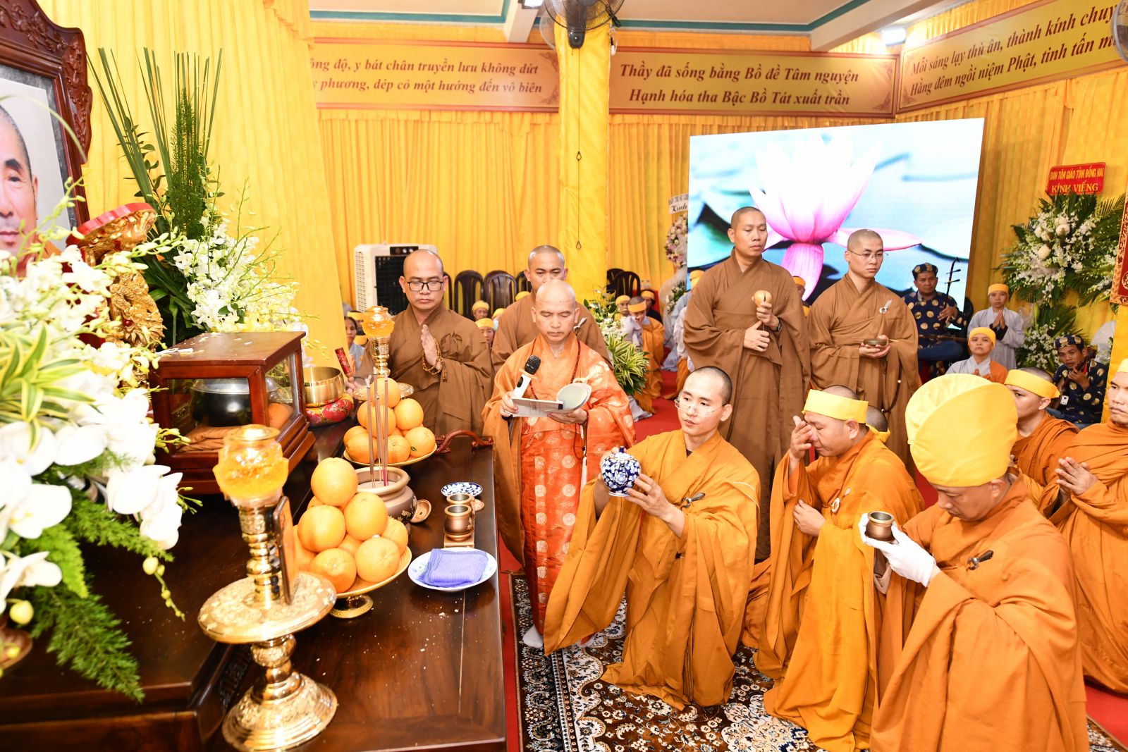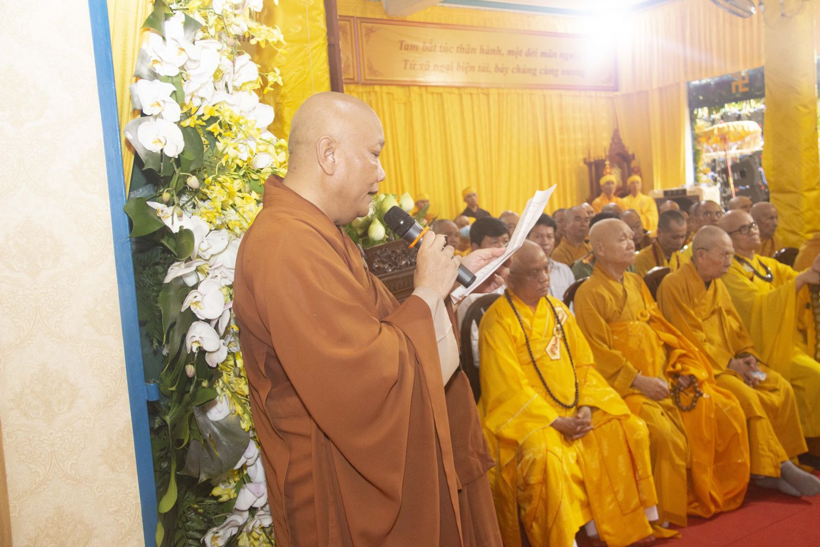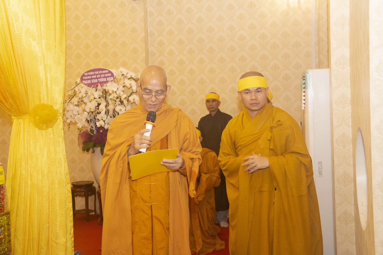 Tại buổi lễ HT. Thích Minh Ngạn – Phó Ban Trị sự, Trưởng ban Kiểm soát Ban Trị sự GHPGVN tỉnh Đồng Nai đã trang nghiêm cung tuyên tiểu sử cố Trưởng lão HT. Thích Giác Quang.