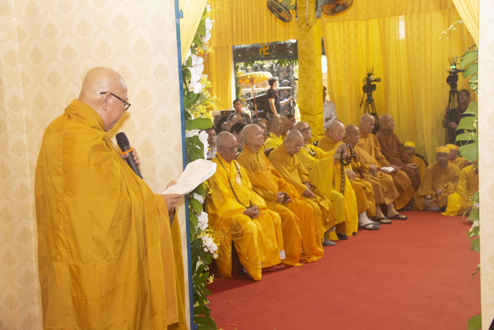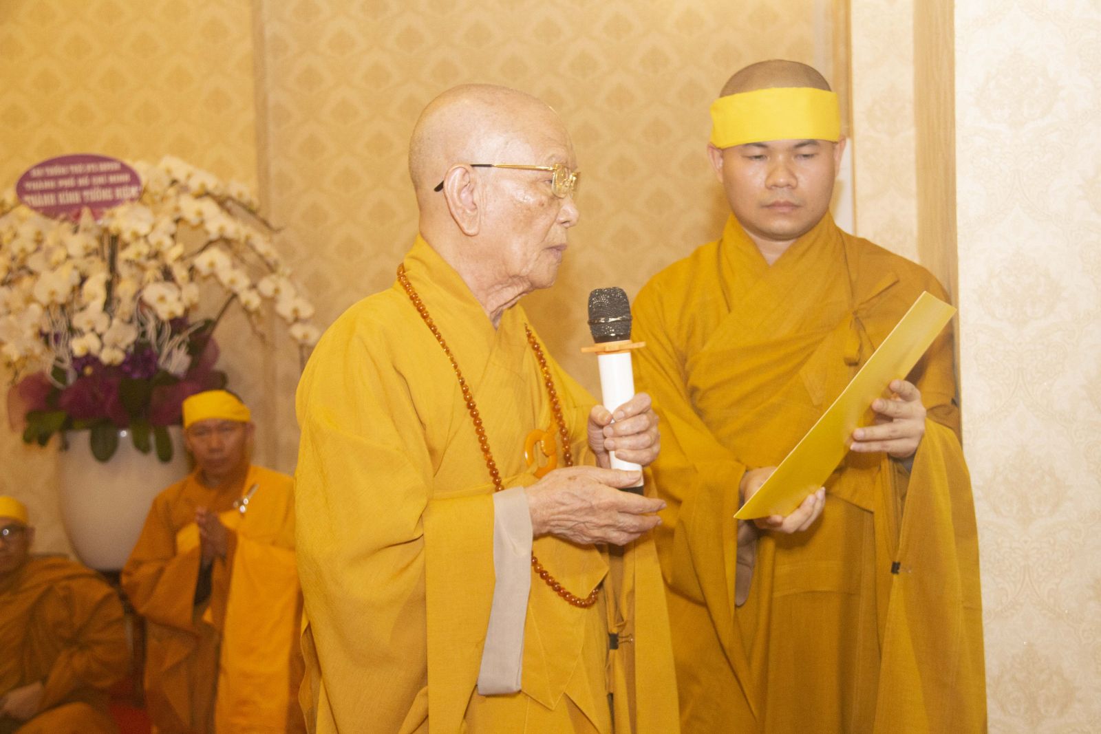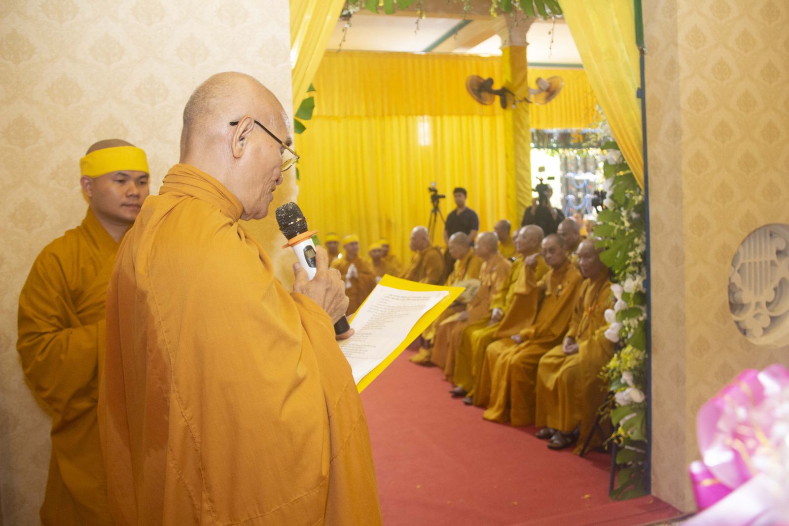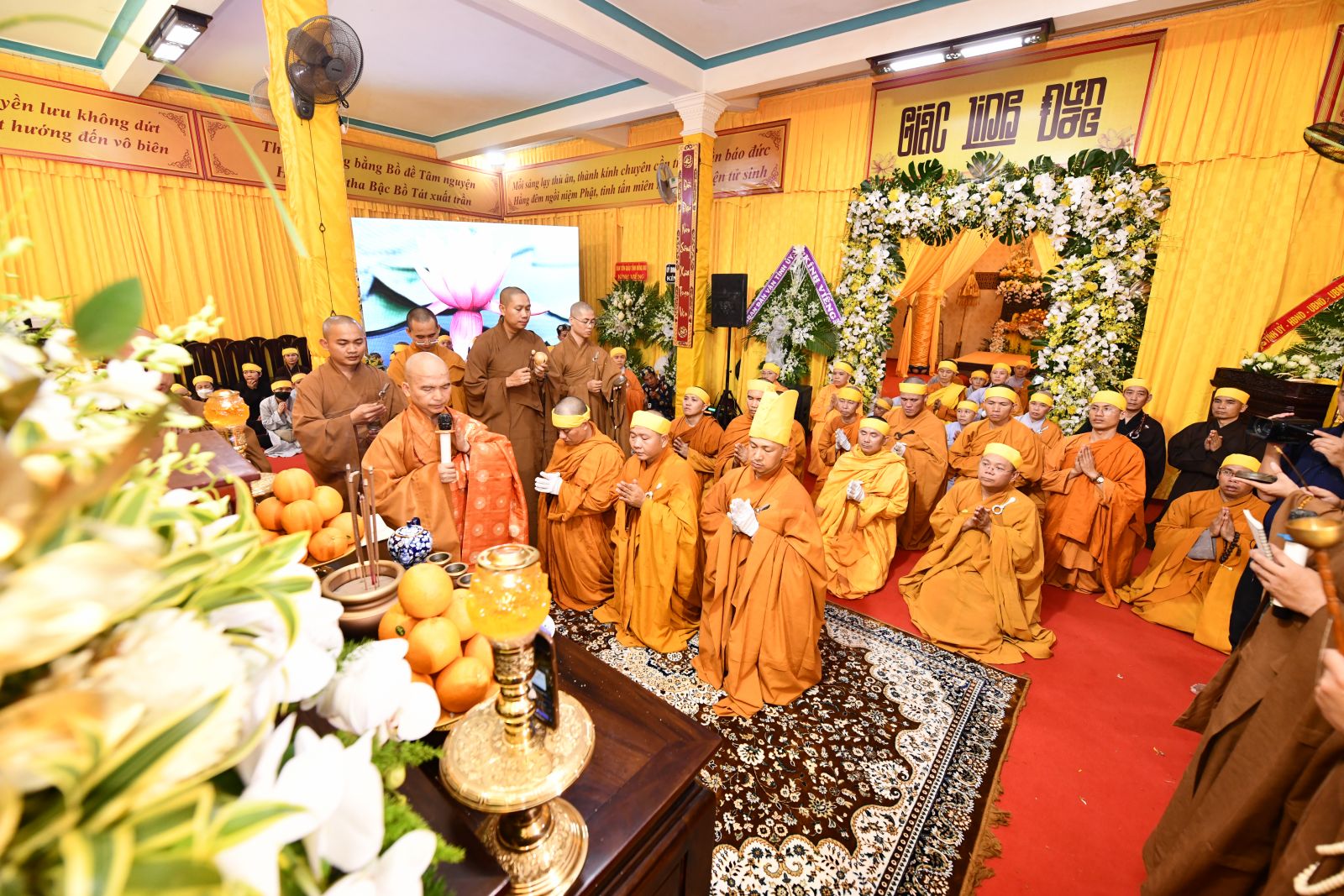 Tại buổi lễ HT. Thích Minh Ngạn – Phó Ban Trị sự, Trưởng ban Kiểm soát Ban Trị sự GHPGVN tỉnh Đồng Nai đã trang nghiêm cung tuyên tiểu sử cố Trưởng lão HT. Thích Giác Quang.