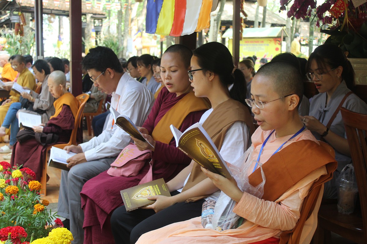 Theo sự điều phối, khóa sinh vân tập tại chánh điện, cùng chư Tăng tu nữ trang nghiêm tụng kinh chúc phúc lành, lắng nghe hòa thượng Thích Bửu Chánh thuyết giảng thông điệp nụ cười và hạnh phúc ngày xuân. Chiều cùng ngày, hòa thượng tiếp tục hướng dẫn đại chúng học hết phẩm I kinh Pháp Cú. Nhân dịp này, Ngài chia sẻ vài câu pháp ngữ ngắn gọn, truyền cảm hứng sống động tương quan về đời sống tu tập.