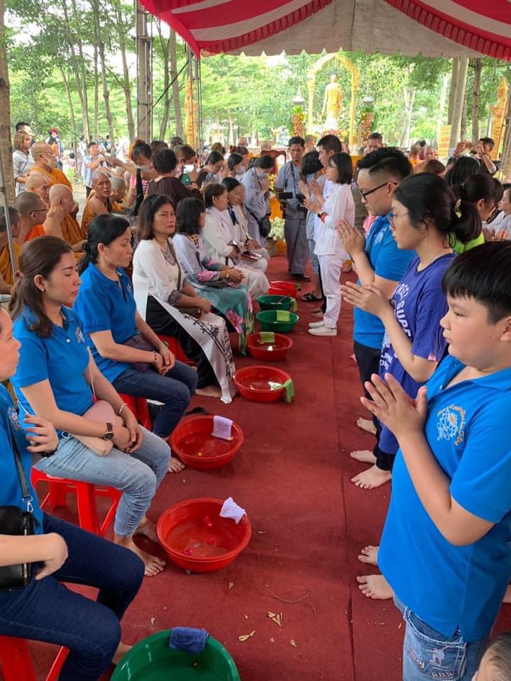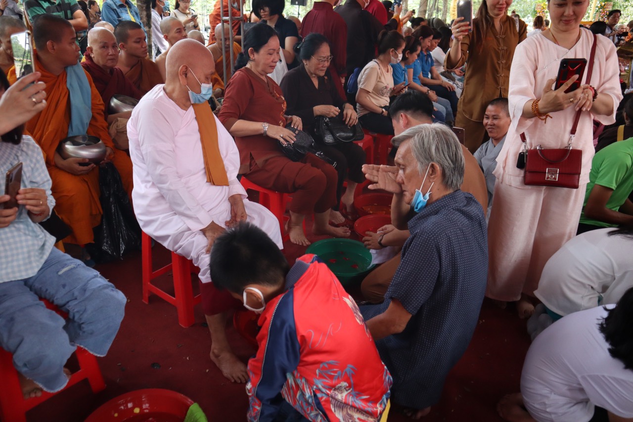 Ngay sau khi thực hiện Lễ dâng y, cài hoa hồng là nghi lễ rửa chân cho cha, mẹ. Đây vừa là dịp để những người con cảm nhận sâu sắc công ơn dưỡng dục của đấng sinh thành, vừa để những người cha, người mẹ nhìn nhận được sự hiếu thảo của con cái dành cho mình. Nhiều hàng phật tử đã không khỏi xúc động khi suy nghĩ về những vết chai sạn trên đôi tay cha mẹ bao năm qua.