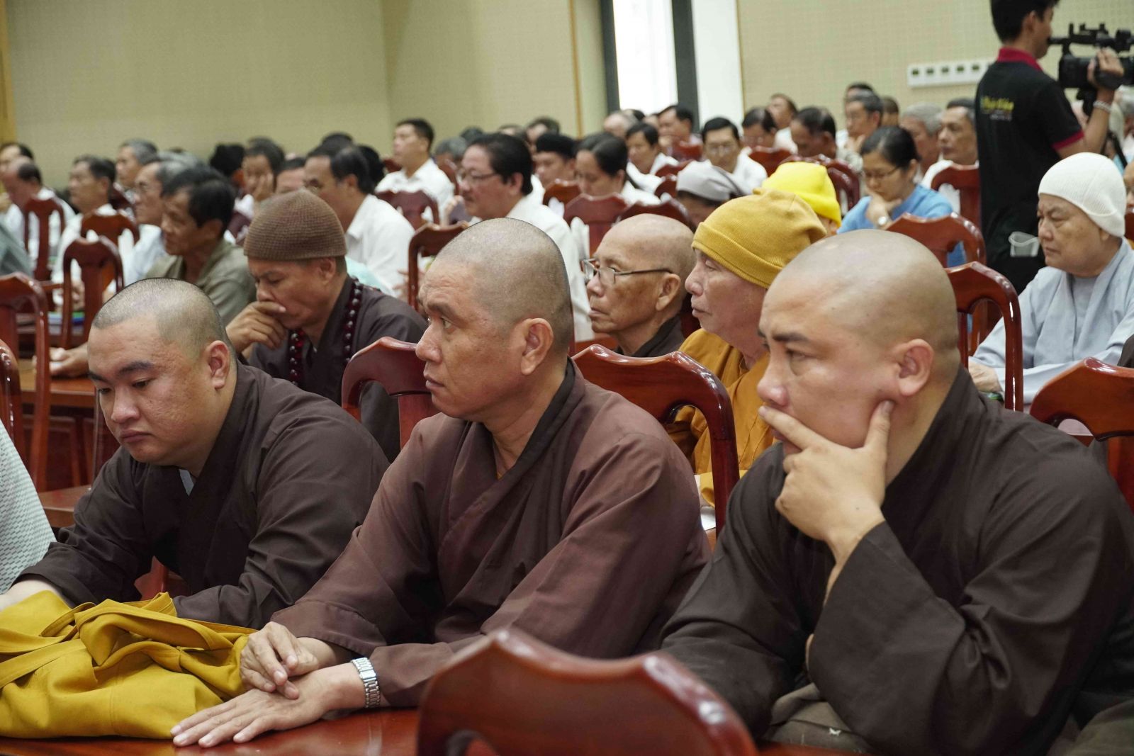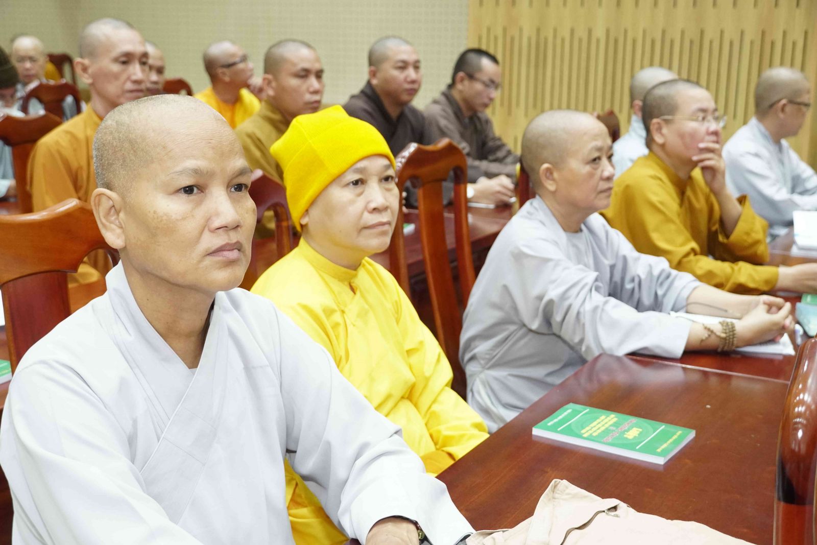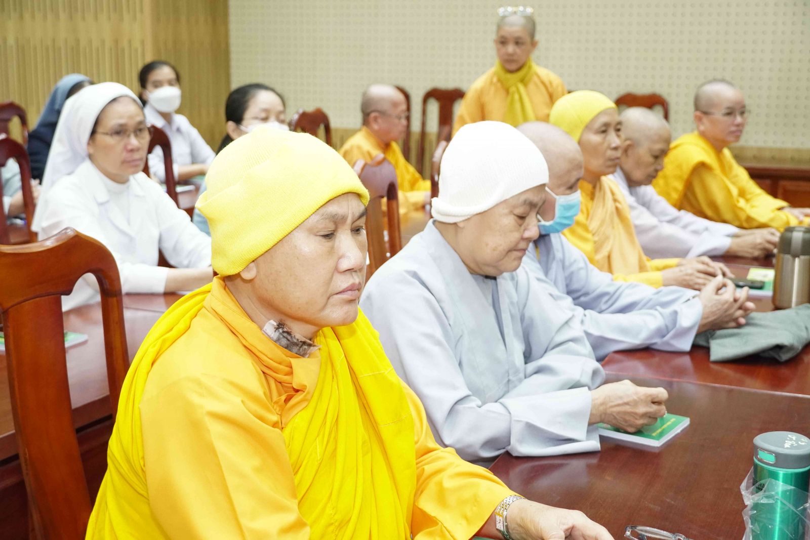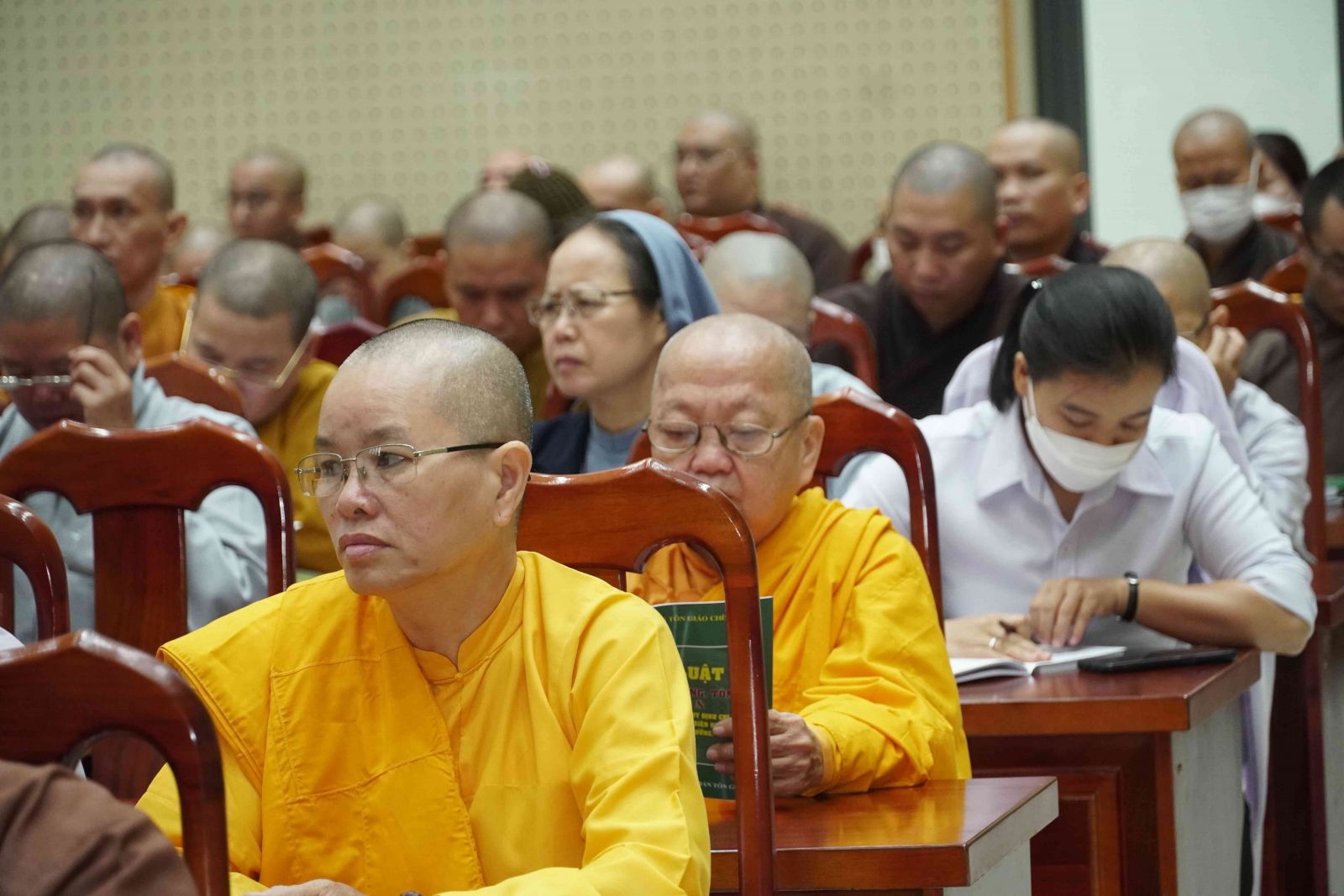 Tại phiên hội nghị chư Tôn đức đã lắng nghe bà Lê Thị Hoài – Phó trưởng ban Ban Tôn giáo tỉnh Đồng Nai thông báo một số nét chính về tình hình hoạt động tôn giáo trên địa bàn tỉnh Đồng Nai nói chung và Thành phố Biên Hòa nói riêng. Đồng thời được giới thiệu, cung cấp một số nội dung chính của Luật tín ngưỡng tôn giáo; Luật cư trú; Thông tư liên tịch hướng dẫn việc thực hiện nếp sống văn minh tại các cơ sở tín ngưỡng, tôn giáo; Một số điều của Luật Đất đai và các văn bản hướng dẫn liên quan; Quy trình quy hoạch, kế hoạch sử dụng đất, giao đất và cấp chứng nhận quyền sử dụng đất cho cơ sở tôn giáo. …Qua đó giúp cho chư Tôn đức nắm bắt các quy định của pháp luật, tuyên truyền hướng dẫn cho Phật tử tín đồ để cùng tuân thủ thực hiện nghiêm các quy định của pháp luật liên quan tới sinh hoạt tín ngưỡng, tôn giáo và đời sống.