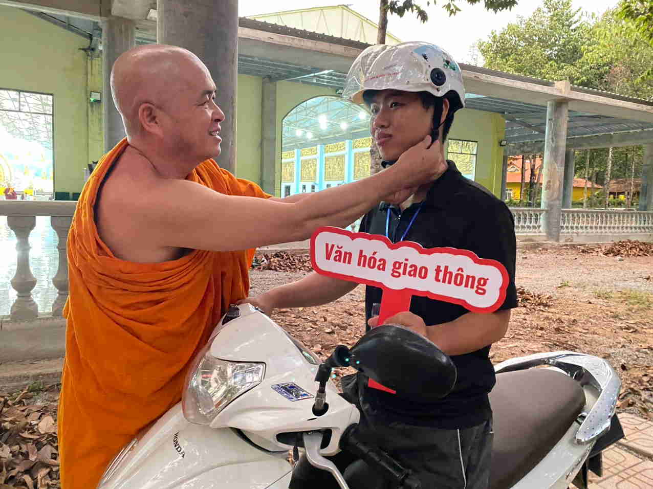 Đại đức Phước Khoa dặn dò các thiền sinh, khi chúng ta tu học trở về, thì nên lưu ý là tham gia giao thông phải an toàn, đi chậm và quan sát.