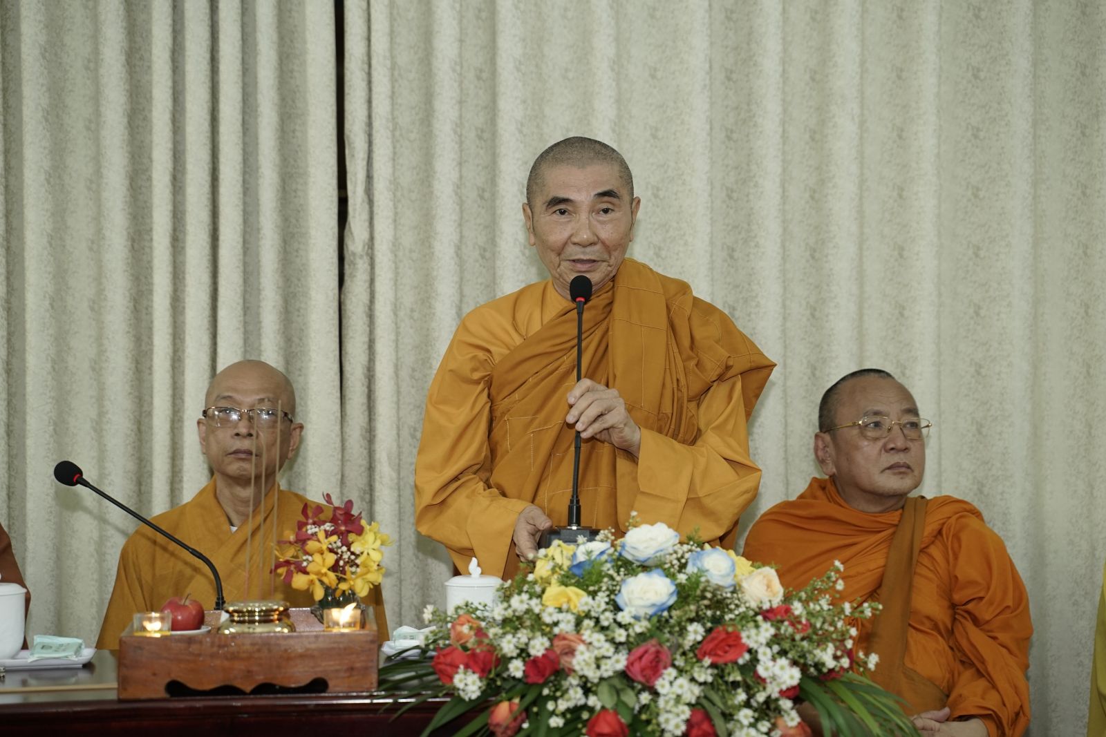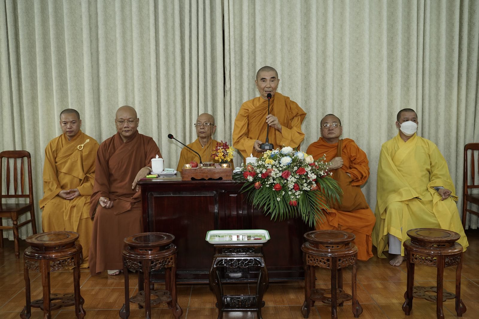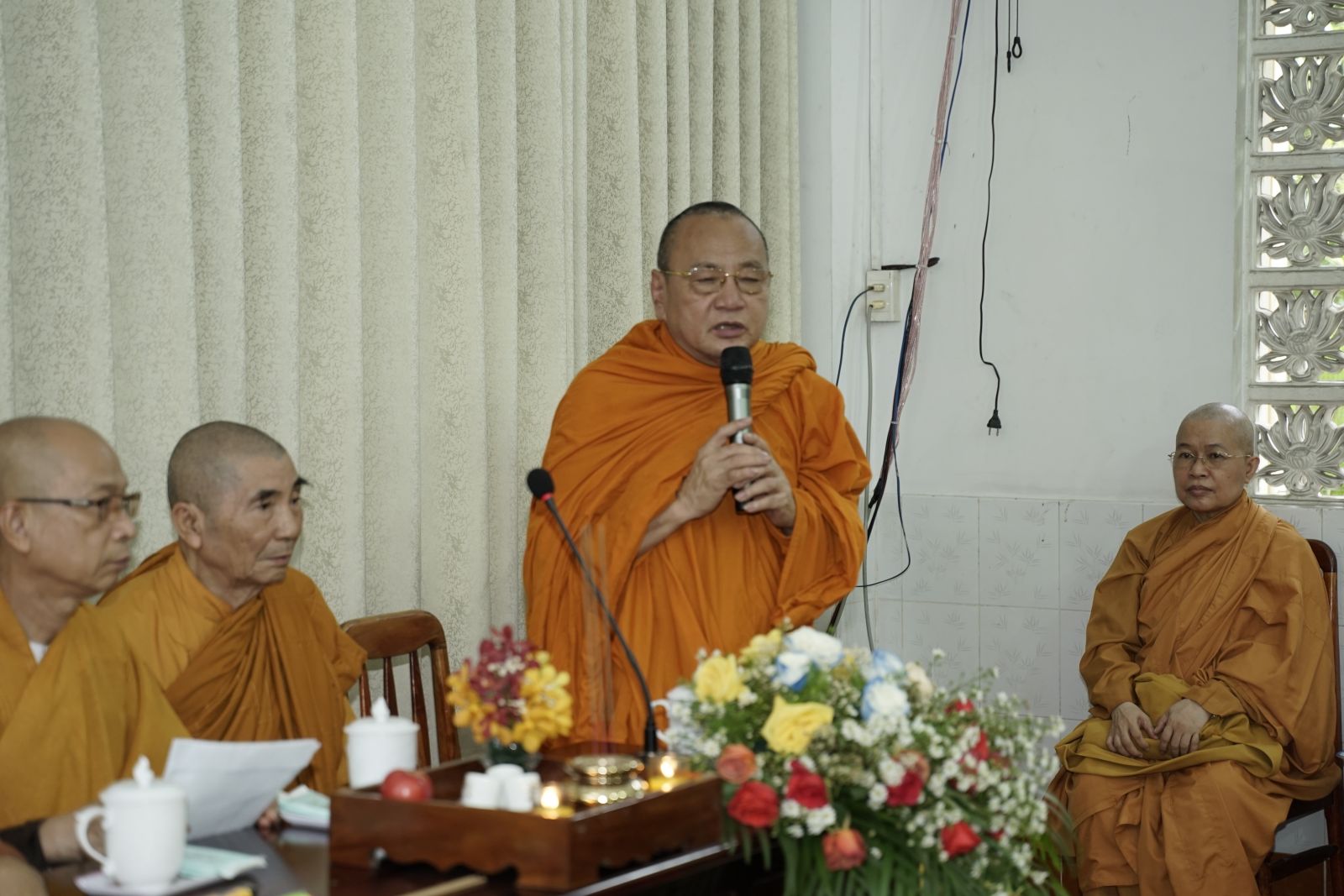 Đại diện thường trực BTS GHPGVN tỉnh, TT. Thích Huệ Khai – Uỷ viên HĐTS, Phó trưởng ban thường trực BTS GHPGVN tỉnh đã có lời sách tấn thăm hỏi và động viện chư hành giả an cư trong 3 tháng nương vào giới luật tu học thúc liễm thân tâm trau dồi giới đức, Thượng tọa cũng có lời tán thán công đức của Hòa thượng thiền chủ và ban chức sự hạ trường đã dày công và tạo điều kiện thuận lợi cho chư hành giả an cư cũng như tán thán sự nổ lực tinh tấn tu tập của Tăng Ni hành giả an cư kiết hạ tại tổ đình Quan Âm Tu Viện.