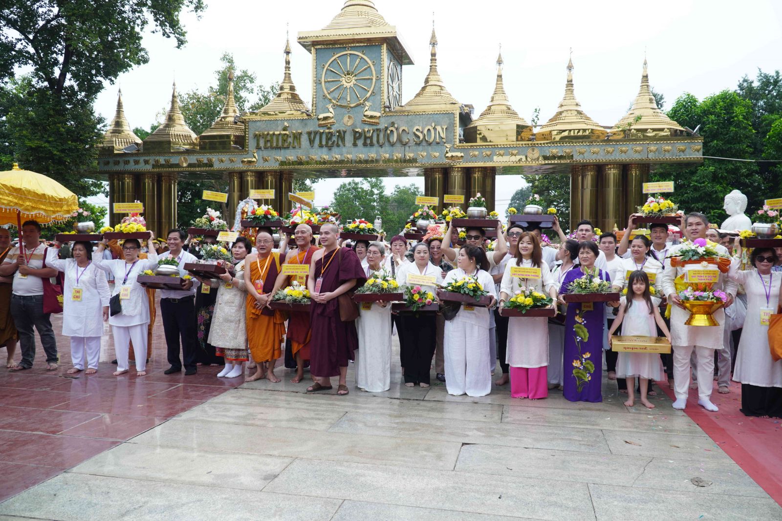 Trước khi cử hành đại lễ dâng Y Kathina - PL 2567, Hòa thượng Thích Bửu Chánh (trụ trì TV Phước Sơn) thuyết pháp tóm tắt ba phước báu (kinh trường bộ, tiểu nghiệp phân biệt) mà hàng đệ tử Phật cần tinh tiến thực hành mỗi ngày. Đó là Bố thí đến người và muôn loài vạn vật. Phước Tuệ: Nỗ lực hành trì tam tạng giáo pháp (pháp học pháp hành). Chánh niệm hơi thở, nhận thức đời sống vô thường.