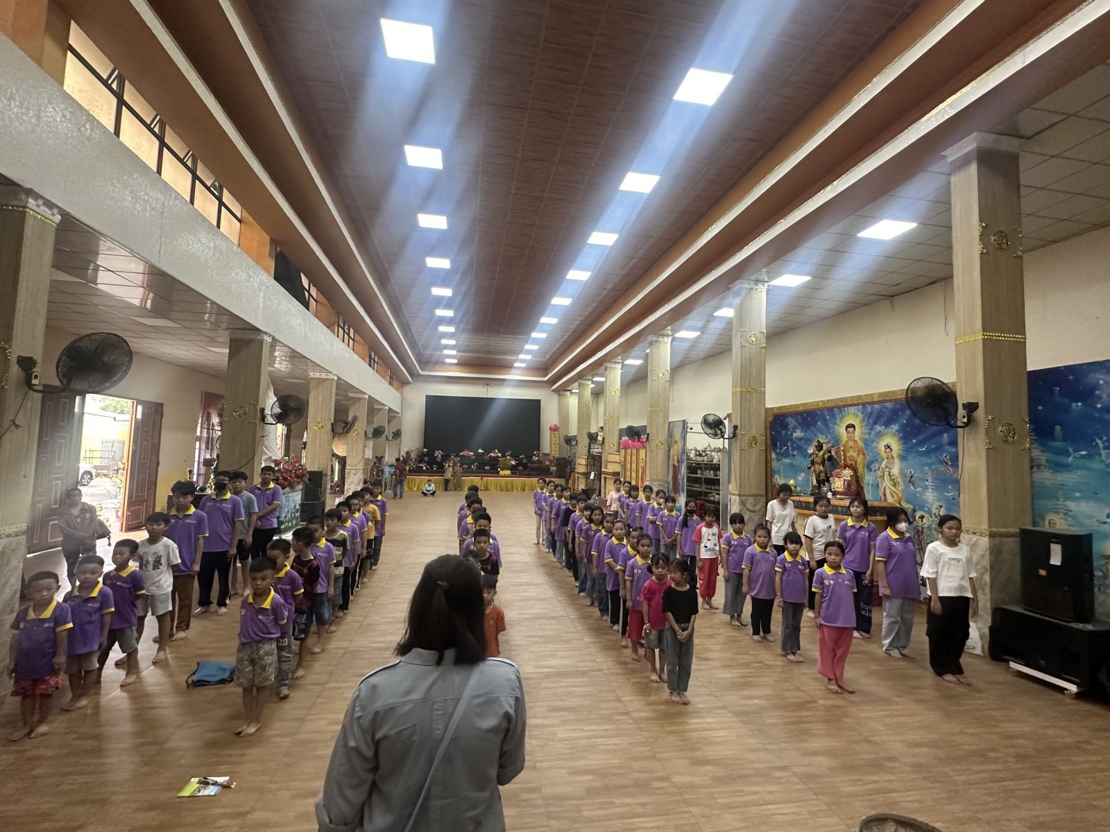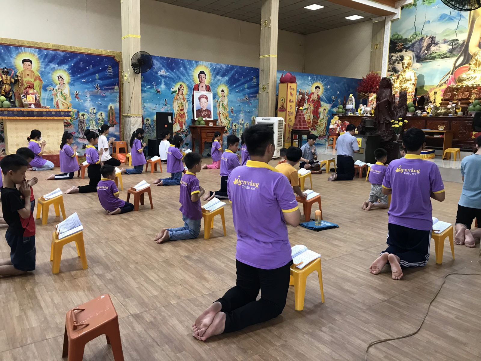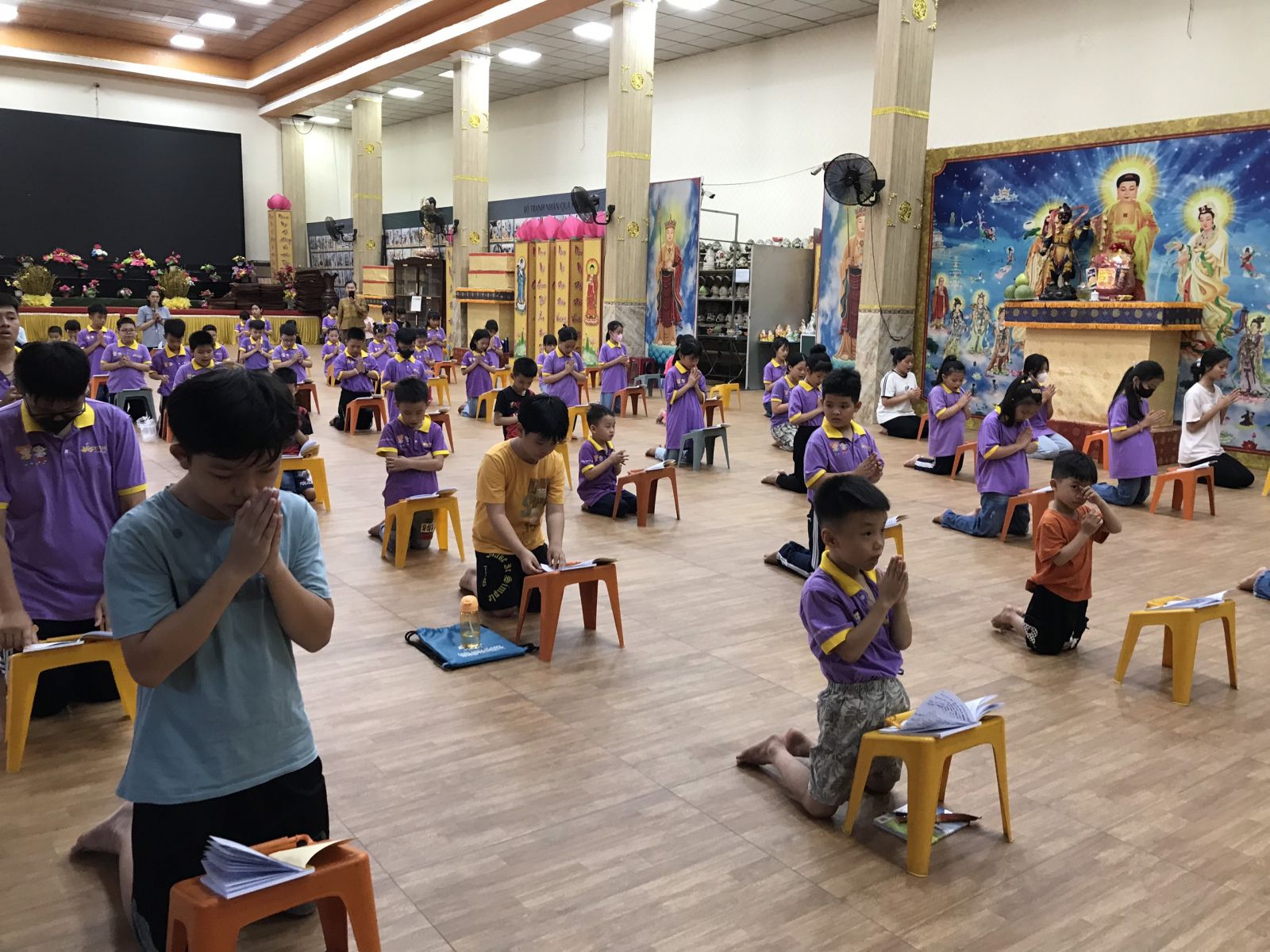 Hình ảnh của các bé đang trang nghiêm lễ Phật, đọc thuộc những dòng kinh sách, hướng tâm mình đến với Chư Phật chư vị Bồ Tát lòng cảm thấy ấm áp vô cùng.