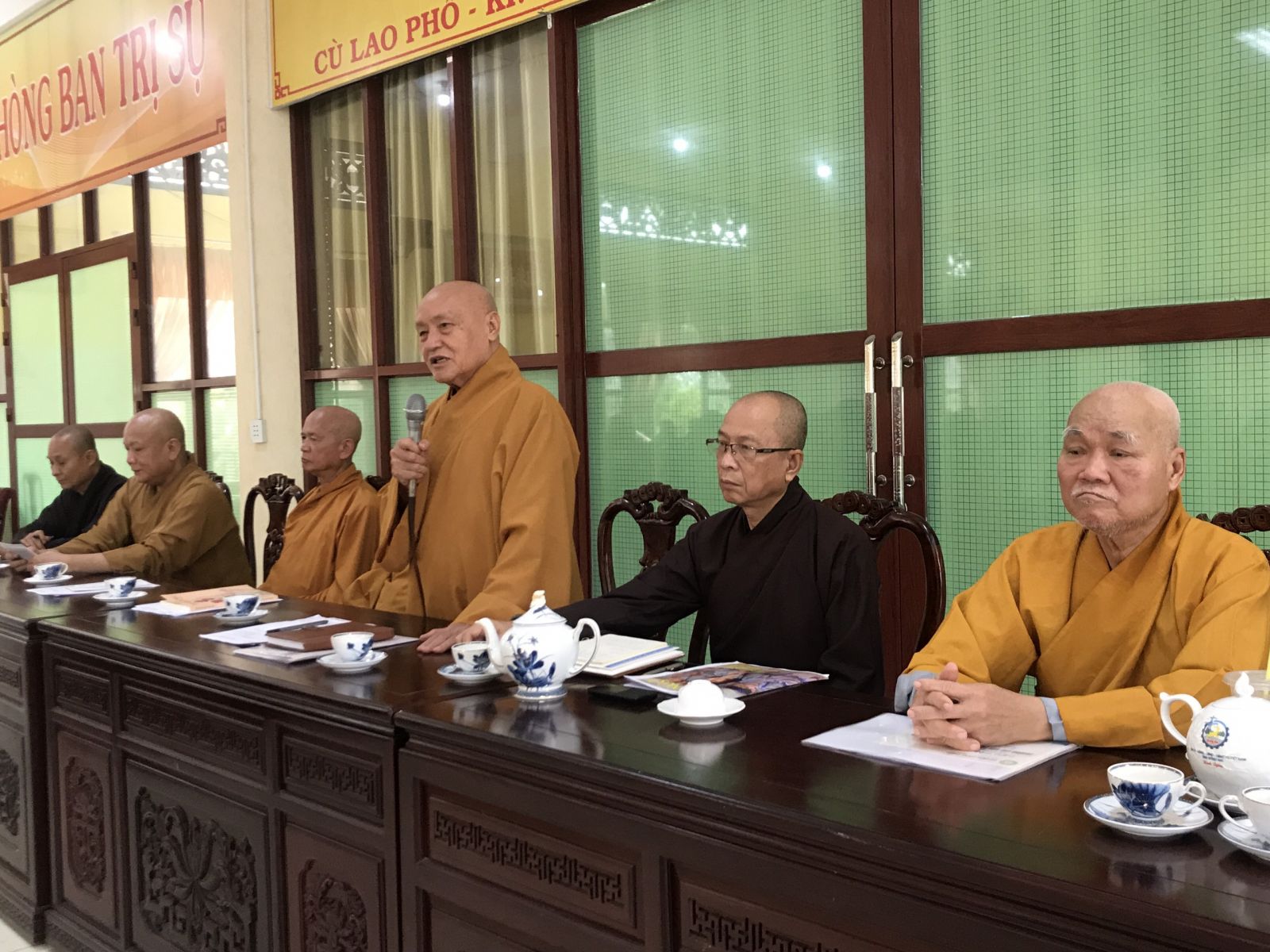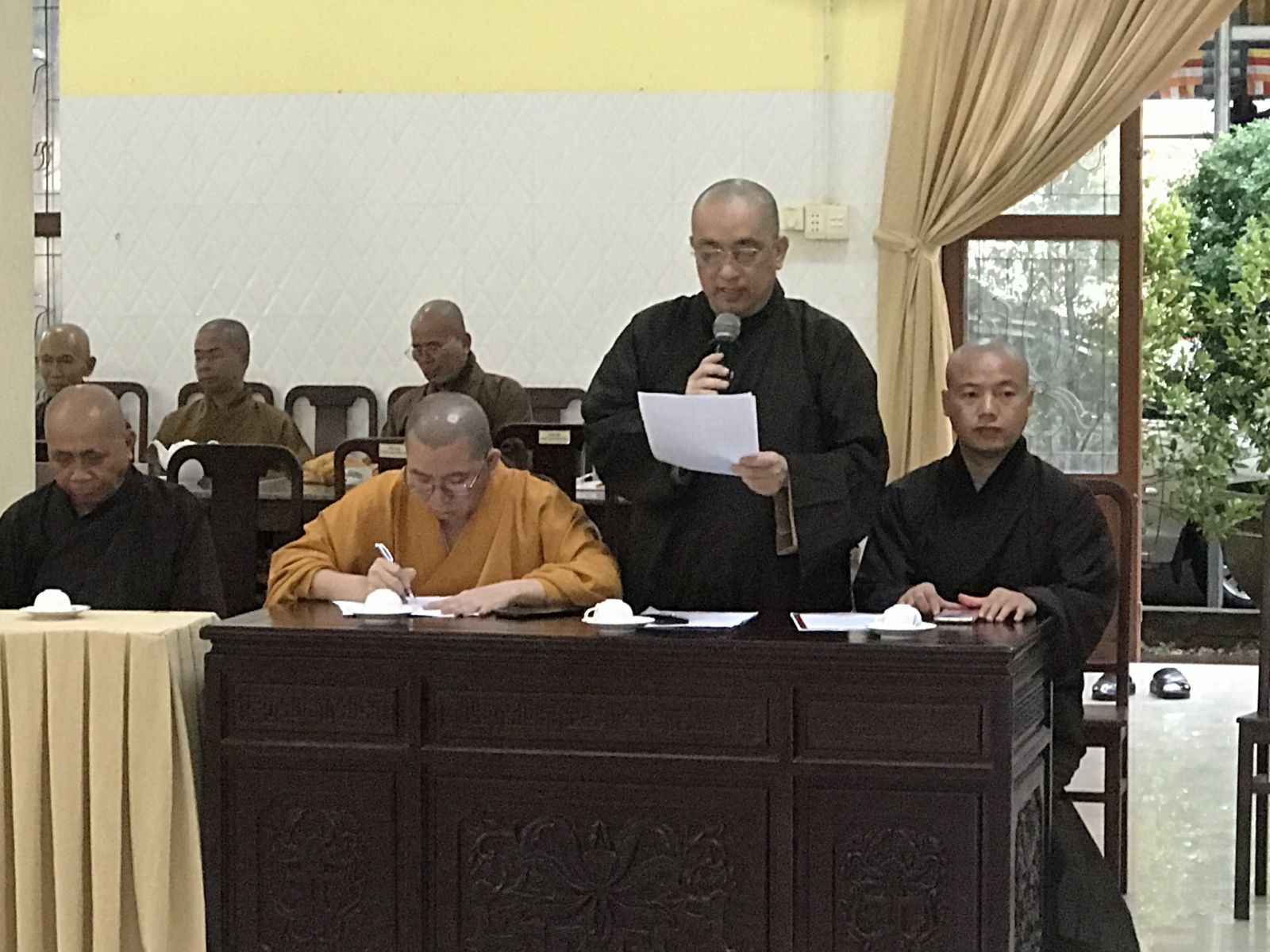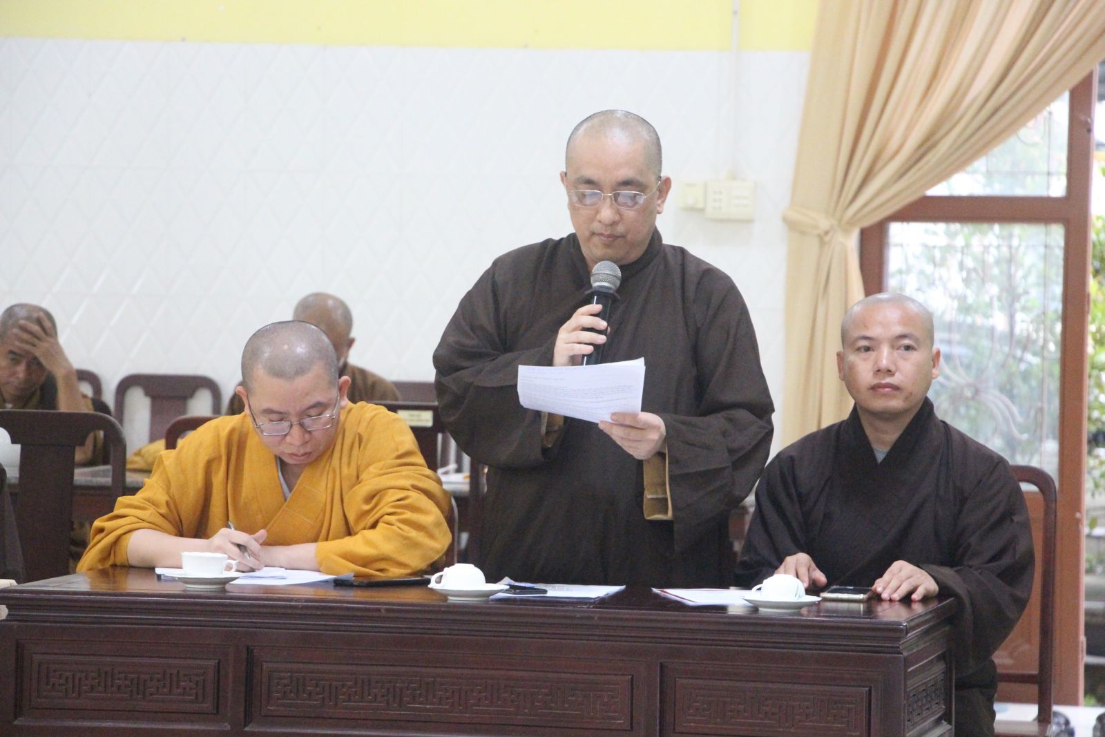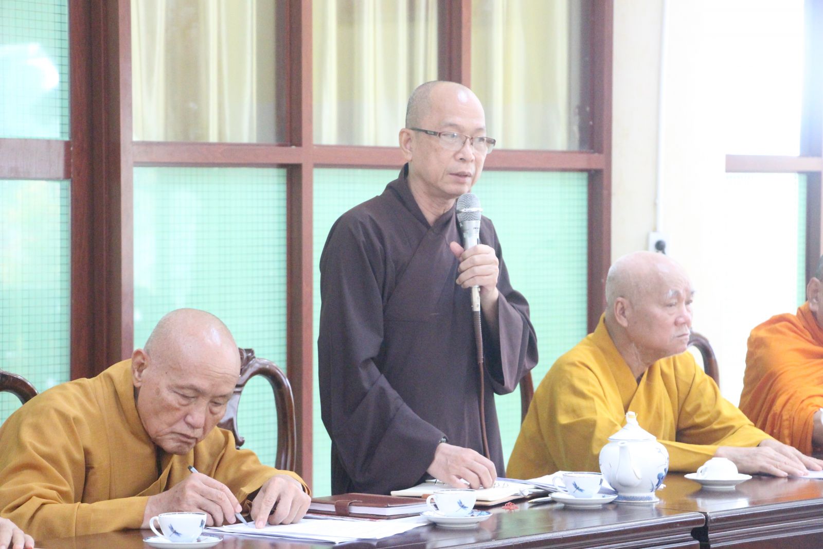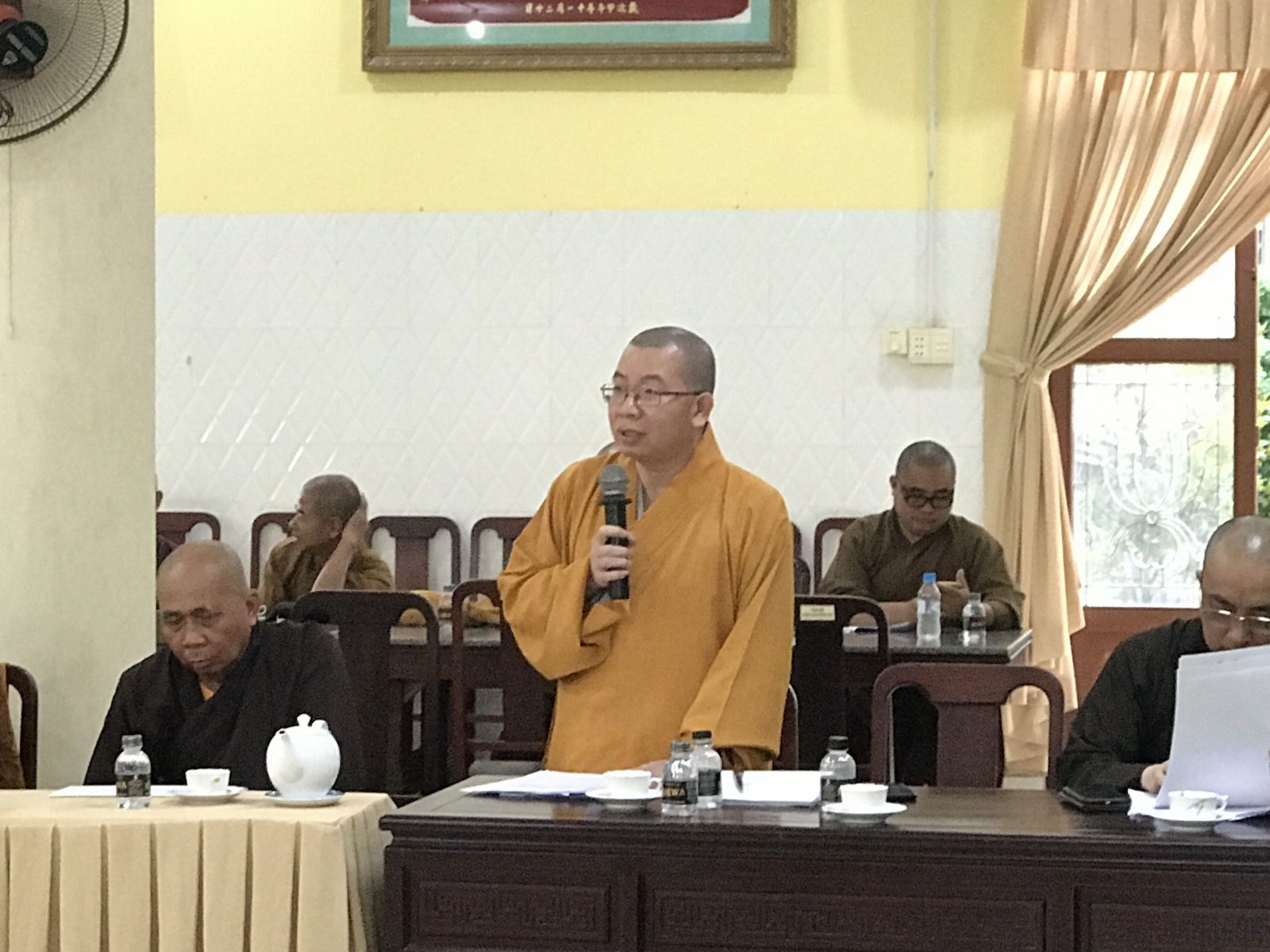Theo nội dung cuộc họp, ĐĐ. Thích Đạo Huy – Phó Thư ký, Chánh văn phòng BTS báo cáo các công tác phật sự trong 3 tháng qua (từ ngày 25/02 đến ngày 25/05/2020). Trong 3 tháng đầu, văn phòng đã tiếp nhận, giải quyết các hồ sơ như giới thiệu các Tăng Ni đi thọ giới các tỉnh khác, ký giấy đi học, thuyên chuyển, Bổ nhiệm trụ trì,…