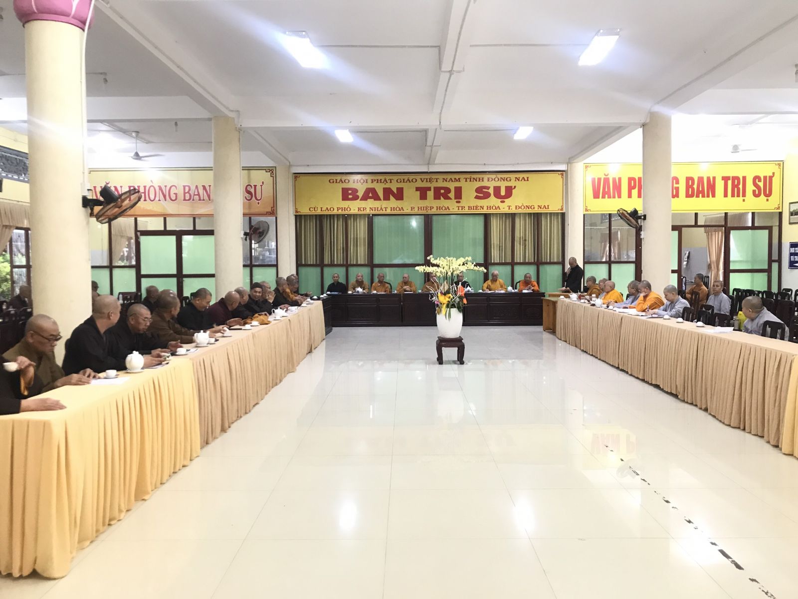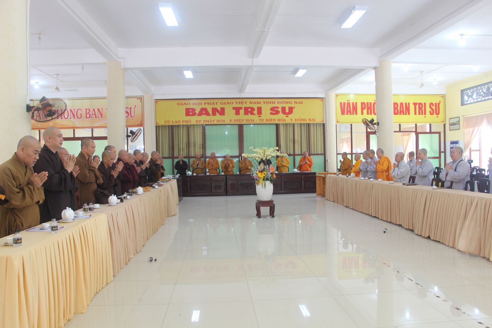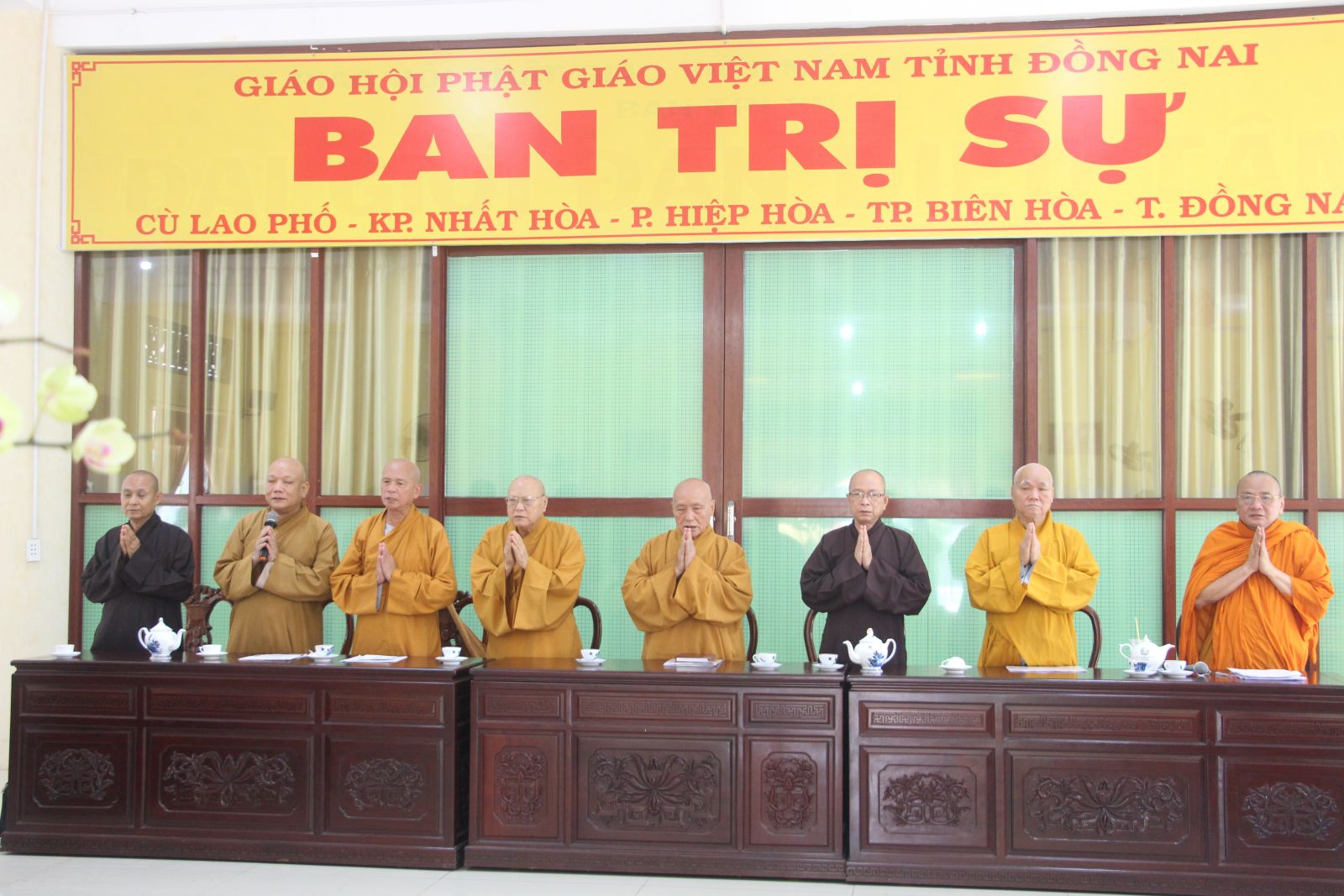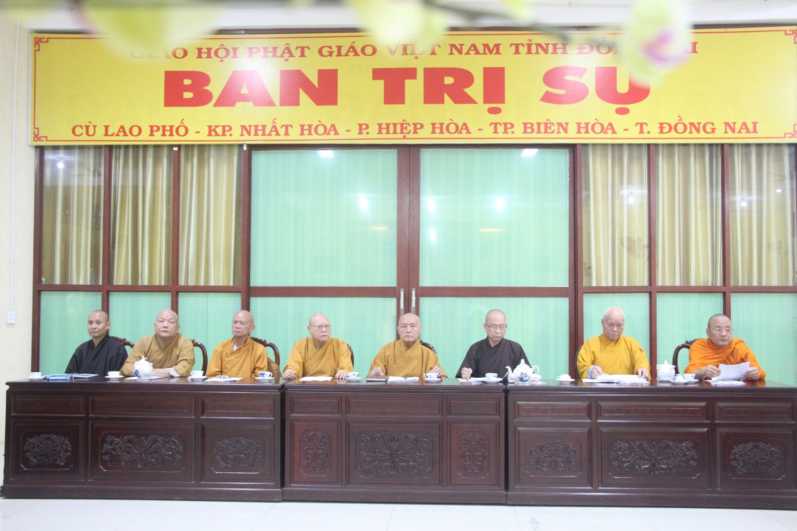 Chủ tọa buổi họp có HT. Thích Nhật Quang – Ủy viên Thường trực HĐTS GHPGVN, Trưởng BTS GHPGVN tỉnh Đồng Nai; TT. Thích Huệ Khai – Phó Trưởng Ban Thường trực BTS GHPGVN tỉnh; HT. Thích Bửu Chánh – Phó Ban kiêm Chánh Thư ký BTS GHPGVN tỉnh; HT. Thích Liêm Chính, HT. Thích Phước Tú, HT. Thích Huệ Tâm, TT. Thích Huệ Sanh, TT. Thích Thông Hạnh – Đồng Phó BTS GHPGVN tỉnh; cùng chư Tôn đức Thường trực BTS tỉnh, BTS Tp. Biên Hòa, Tp. Long Khánh và 9 huyện thuộc tỉnh Đồng Nai đồng tham dự.