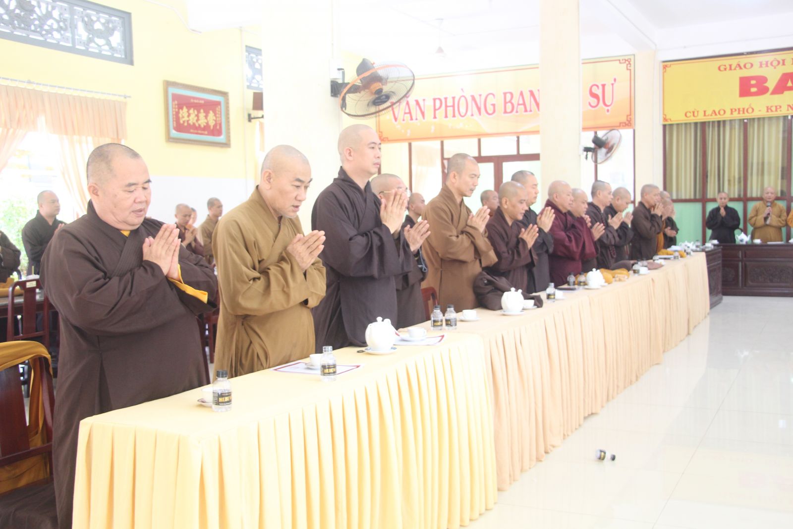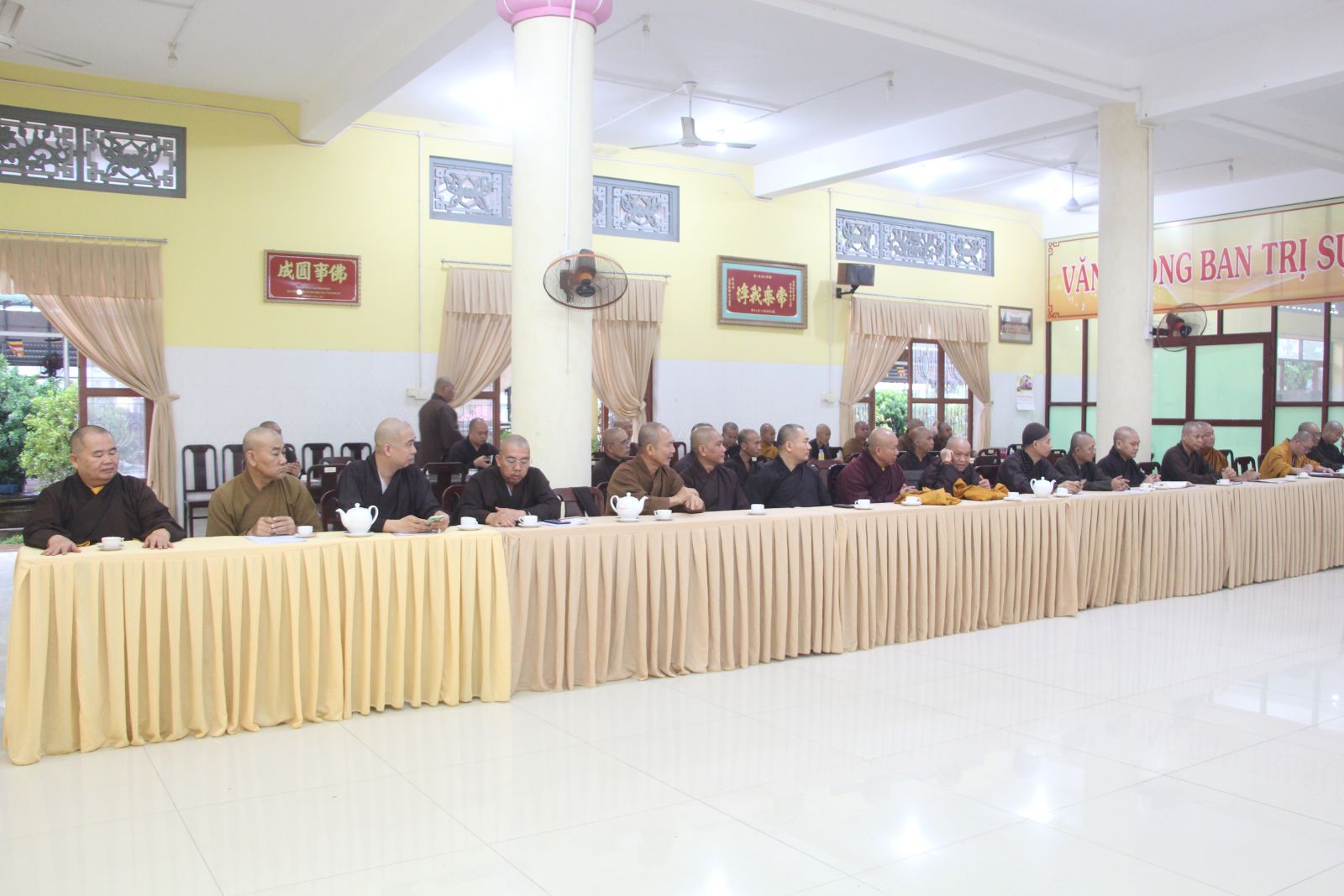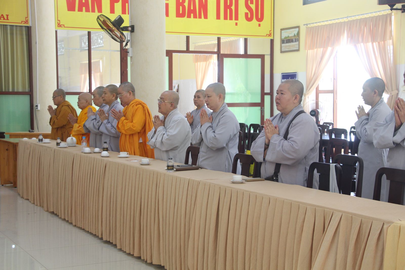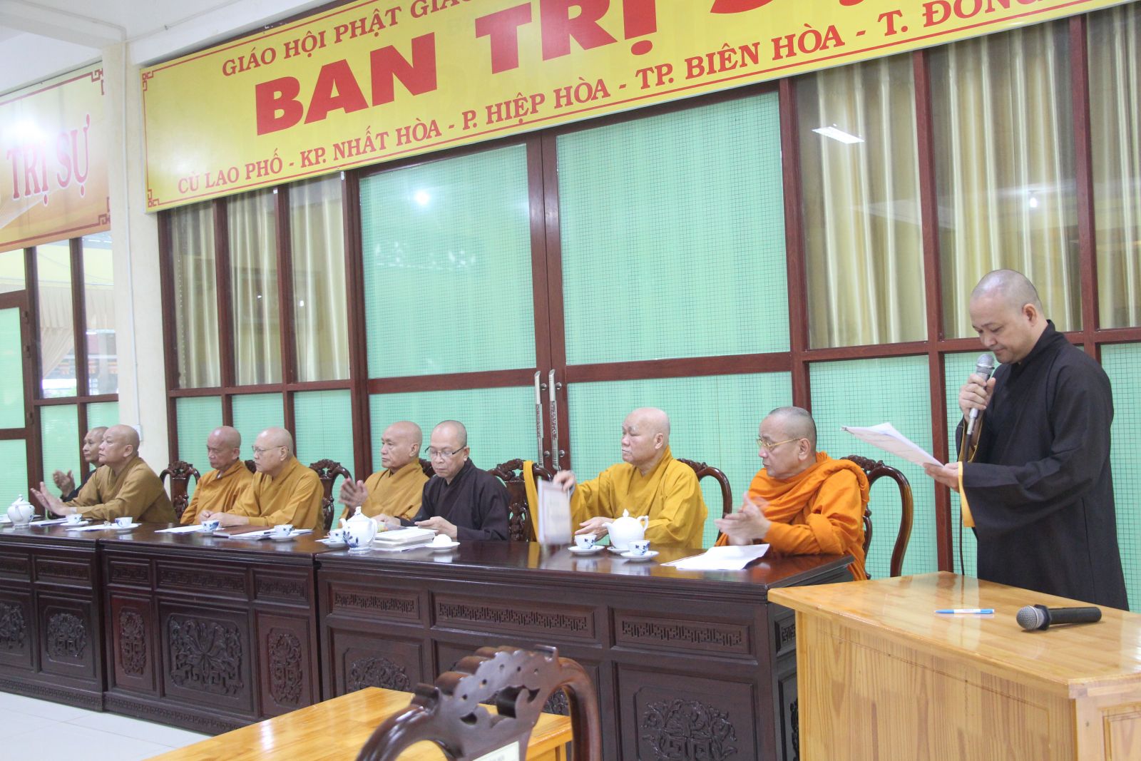 Chủ tọa buổi họp có HT. Thích Nhật Quang – Ủy viên Thường trực HĐTS GHPGVN, Trưởng BTS GHPGVN tỉnh Đồng Nai; TT. Thích Huệ Khai – Phó Trưởng Ban Thường trực BTS GHPGVN tỉnh; HT. Thích Bửu Chánh – Phó Ban kiêm Chánh Thư ký BTS GHPGVN tỉnh; HT. Thích Liêm Chính, HT. Thích Phước Tú, HT. Thích Huệ Tâm, TT. Thích Huệ Sanh, TT. Thích Thông Hạnh – Đồng Phó BTS GHPGVN tỉnh; cùng chư Tôn đức Thường trực BTS tỉnh, BTS Tp. Biên Hòa, Tp. Long Khánh và 9 huyện thuộc tỉnh Đồng Nai đồng tham dự.