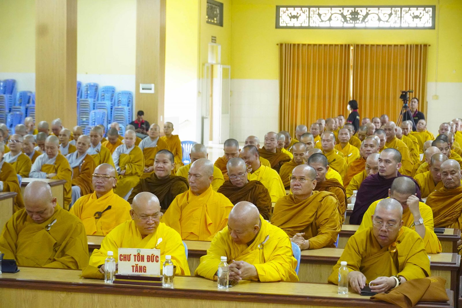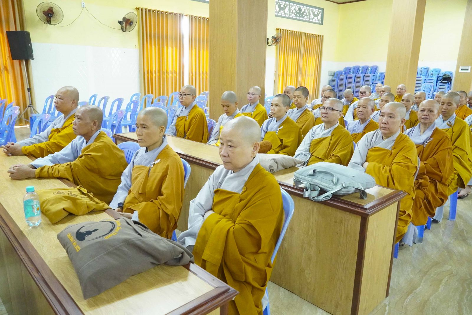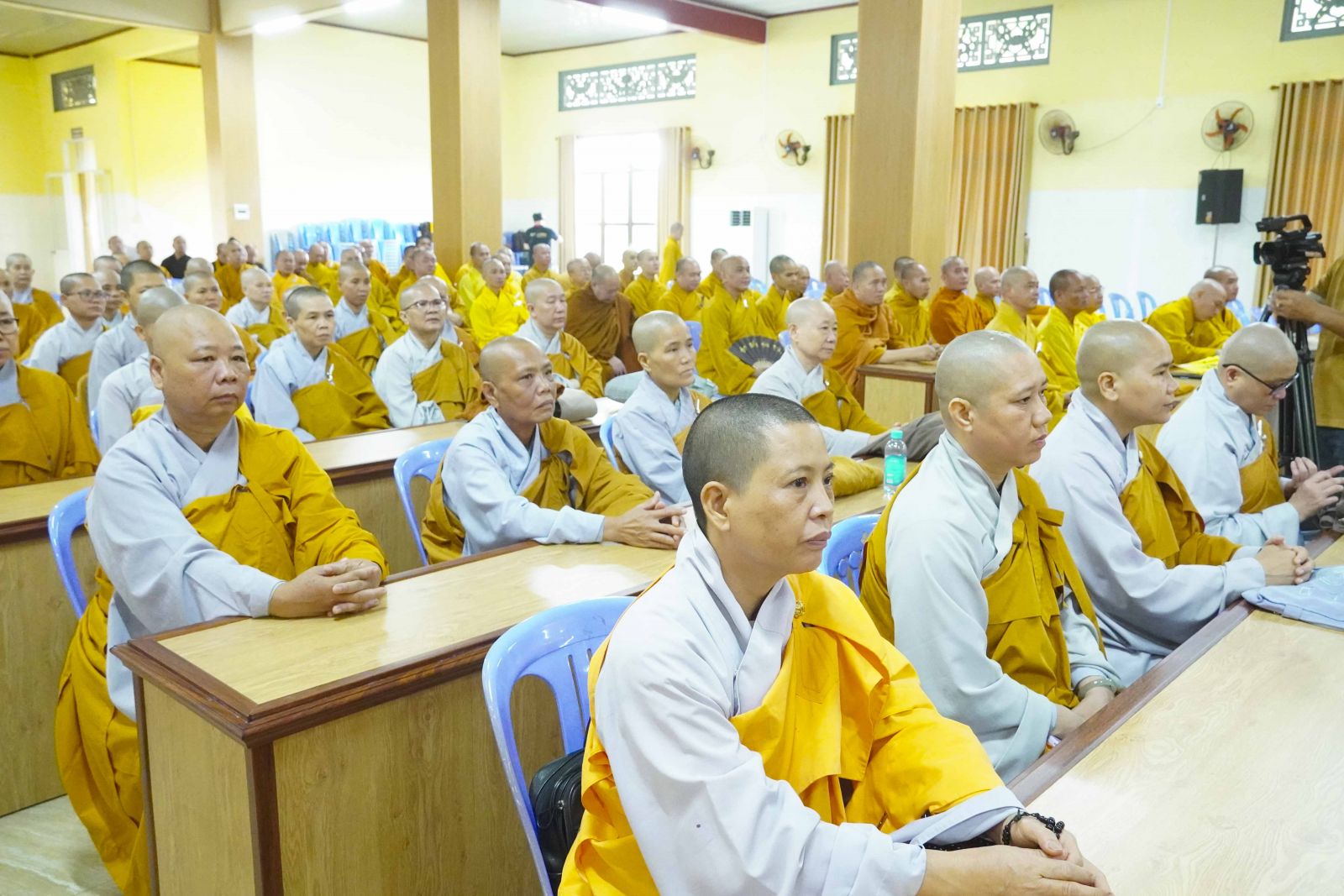Dịp này, chư Tôn đức Ban Trị sự tỉnh Đồng Nai và Tăng Ni hành giả An cư đã được lắng nghe lời Khai thị của HT. Thích Thiện Nhơn – Phó Pháp chủ HĐCM, Chủ tịch HĐTS GHPGVN. Ngài dạy rằng: Khóa Huân tu An cư Kiết hạ có ý nghĩa giúp cho hành giả an định tu tập trong khoảng thời gian nhất định, đây là dịp để chúng ta trau dồi Giới đức. Cũng ví như một chiếc áo đặt vào tủ thơm, trong một khoảng thời gian nhất định, mùi hương sẽ thay đổi khác nhau. Áo để một ngày – hương thơm sẽ tỏa ra nhẹ nhàng, áo để nhiều ngày – hương thơm sẽ tỏa ra ngào ngạt, dù ở xa mùi hương đó vẫn quyện tỏa. Thì giới đức cũng vậy, chúng ta có tu tập qua thời gian lâu xa thì giới đức sẽ càng tăng trưởng. Dịp này, Hòa thượng cũng sách tấn Ban Trị sự tỉnh Đồng Nai và Tăng Ni hành giả An cư cố tu tập trau dồi Giới – Định – Tuệ là tấm gương sáng cho hàng hậu thế noi theo.