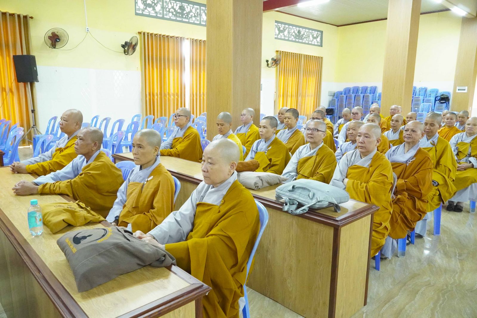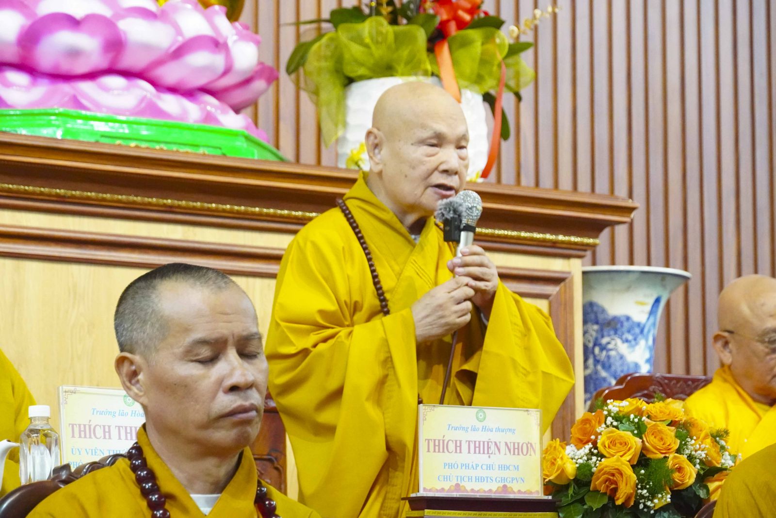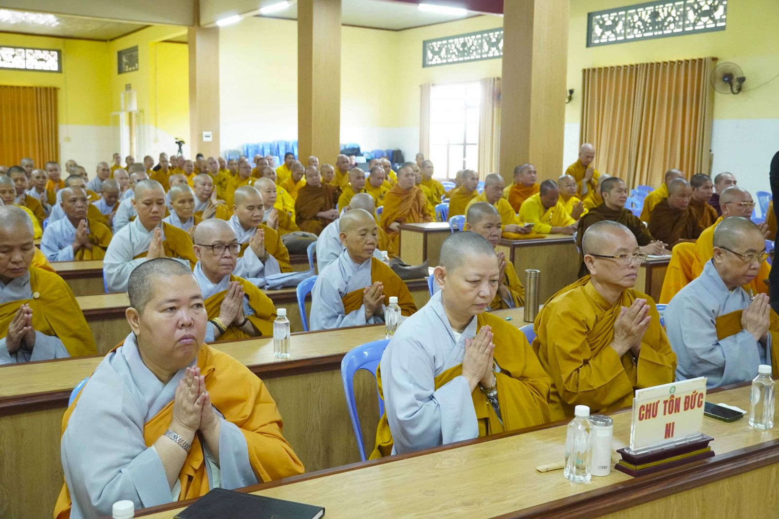 Dịp này, chư Tôn đức Ban Trị sự tỉnh Đồng Nai và Tăng Ni hành giả An cư đã được lắng nghe lời Khai thị của HT. Thích Thiện Nhơn – Phó Pháp chủ HĐCM, Chủ tịch HĐTS GHPGVN. Ngài dạy rằng: Khóa Huân tu An cư Kiết hạ có ý nghĩa giúp cho hành giả an định tu tập trong khoảng thời gian nhất định, đây là dịp để chúng ta trau dồi Giới đức. Cũng ví như một chiếc áo đặt vào tủ thơm, trong một khoảng thời gian nhất định, mùi hương sẽ thay đổi khác nhau. Áo để một ngày – hương thơm sẽ tỏa ra nhẹ nhàng, áo để nhiều ngày – hương thơm sẽ tỏa ra ngào ngạt, dù ở xa mùi hương đó vẫn quyện tỏa. Thì giới đức cũng vậy, chúng ta có tu tập qua thời gian lâu xa thì giới đức sẽ càng tăng trưởng. Dịp này, Hòa thượng cũng sách tấn Ban Trị sự tỉnh Đồng Nai và Tăng Ni hành giả An cư cố tu tập trau dồi Giới – Định – Tuệ là tấm gương sáng cho hàng hậu thế noi theo.