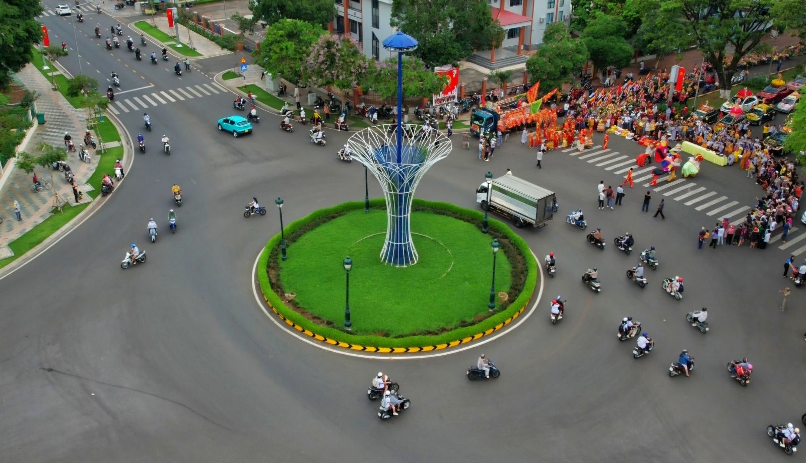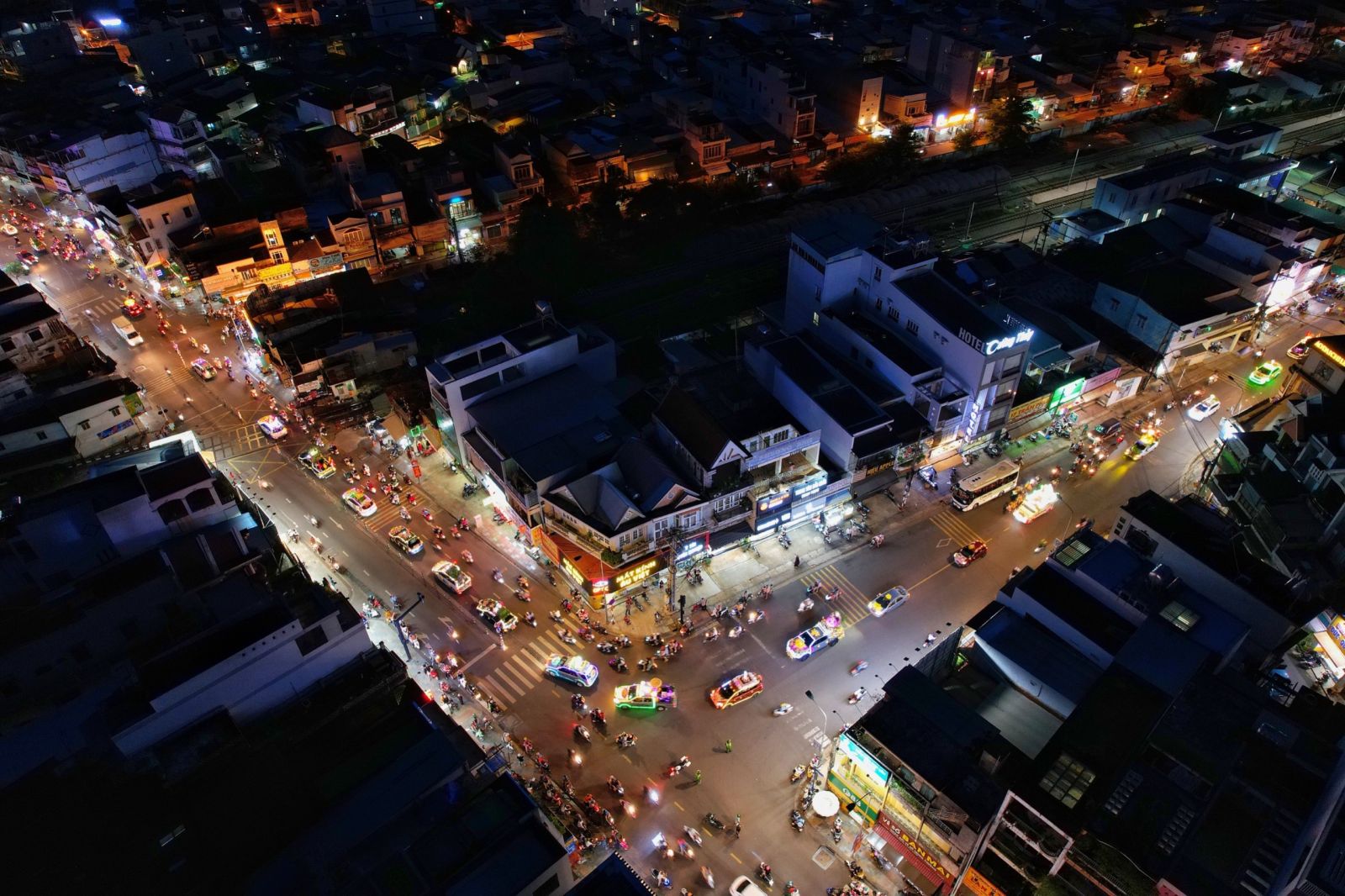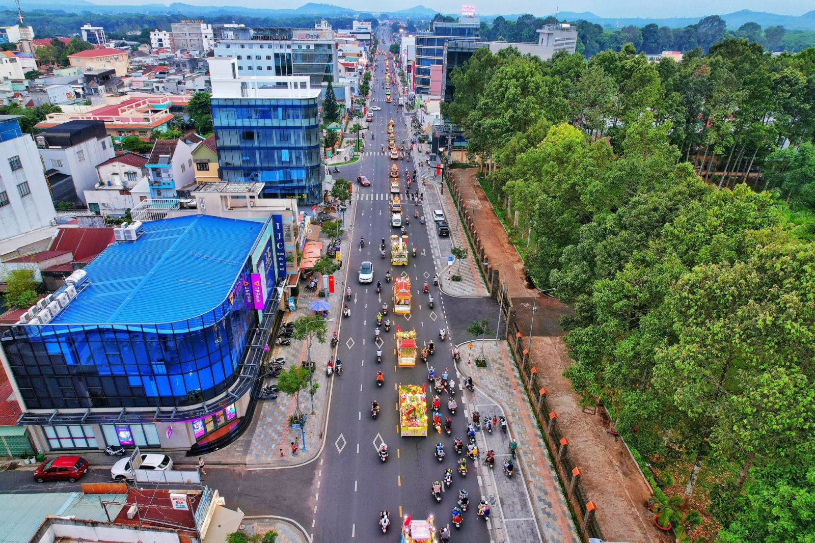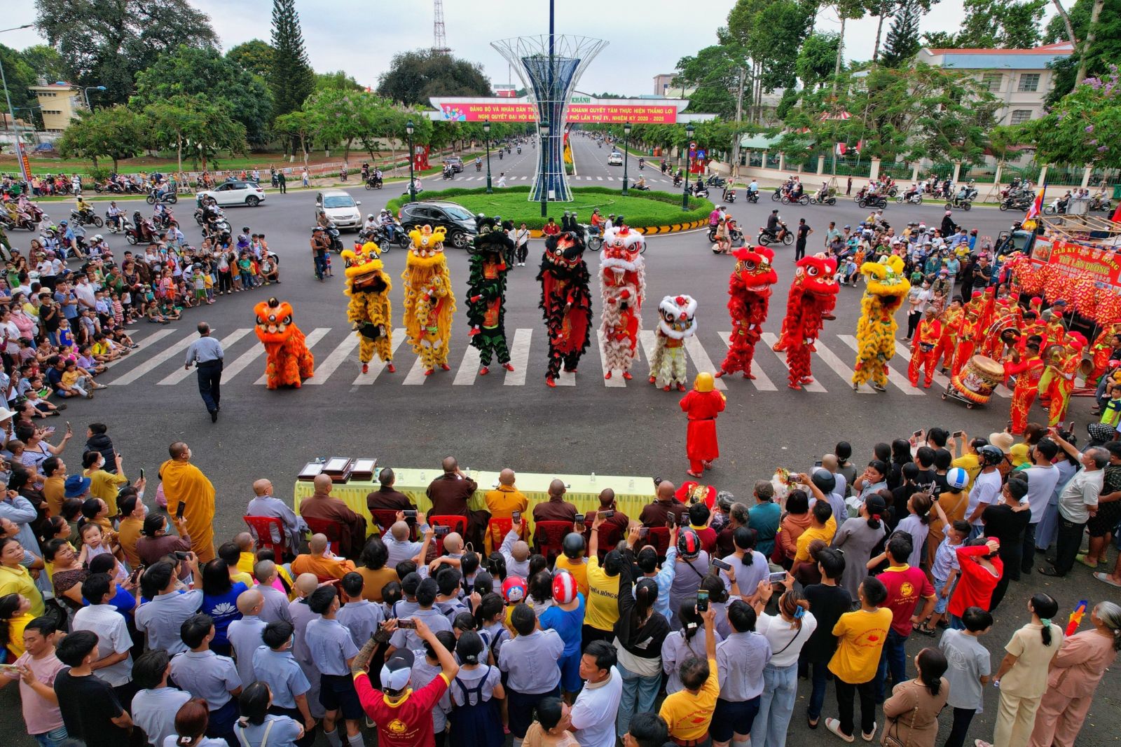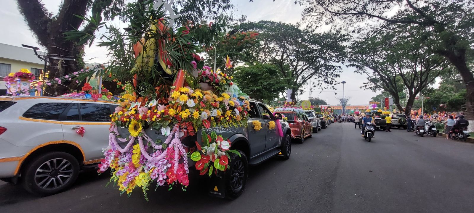 Tiếng còi vang lên báo hiệu, đoàn xe hoa chính thức diễu hành trong tiếng hò reo phấn khởi của biển người Long Khánh.