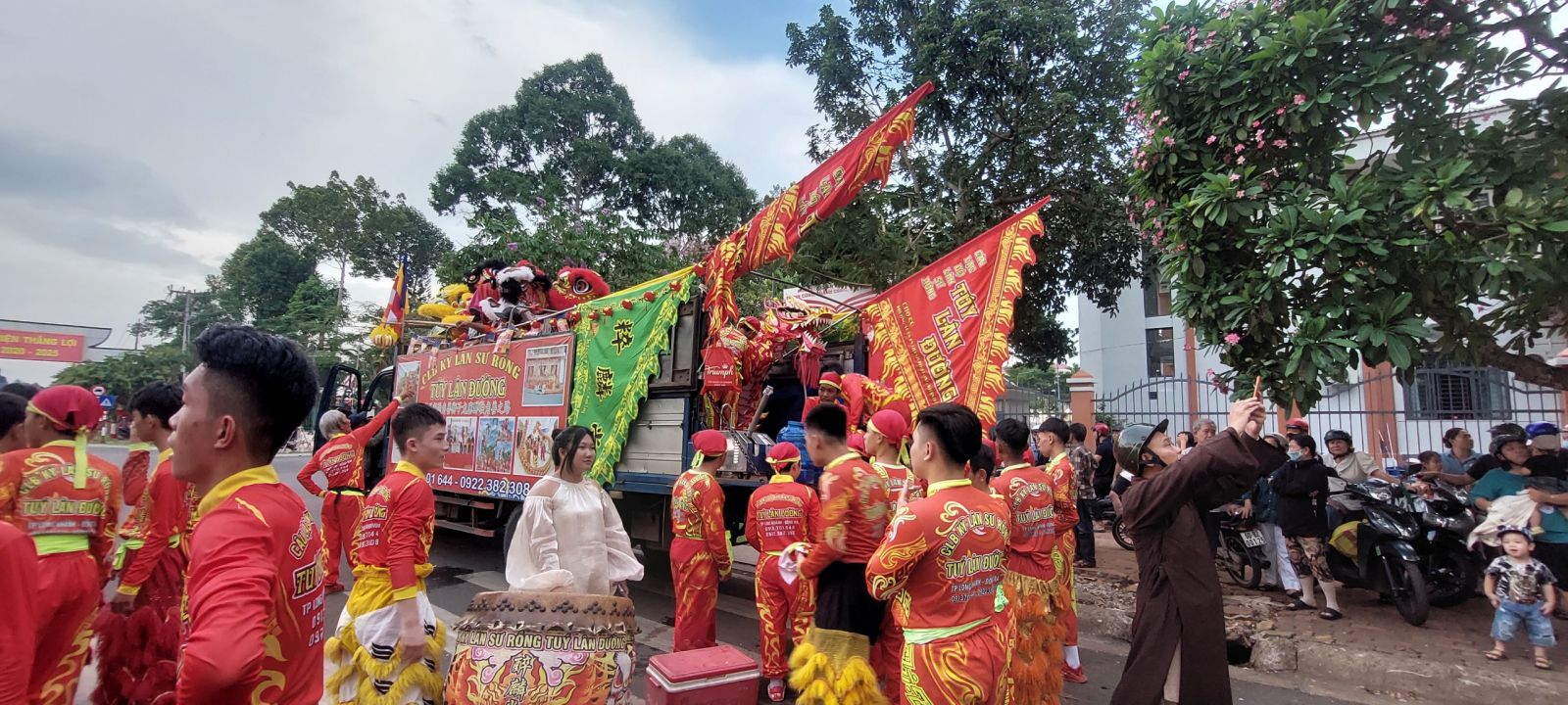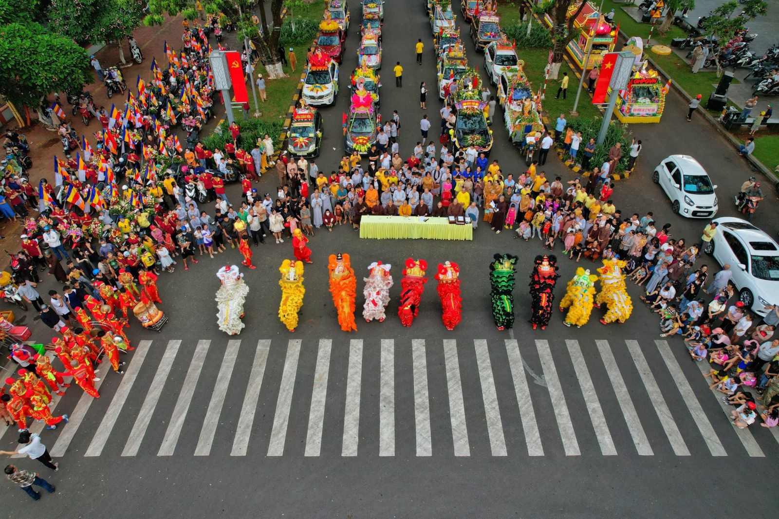 Mở đầu khai mạc đội lân Túy Lân Đường đã trình diễn Lân, Sư, Rồng vô cùng rộn ràng đẹp mắt với nhiều tiết mục nghệ thuật đặc sắc. Các đơn vị, các doanh nghiệp phát tâm thiết trí xe hoa được Ban trị sự tặng bằng công đức.