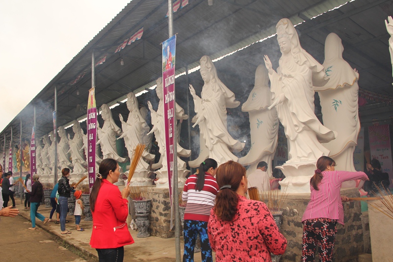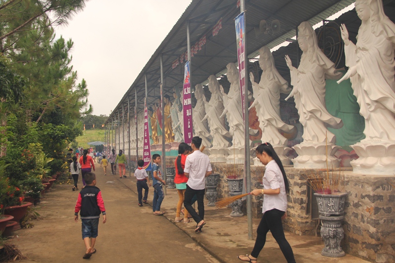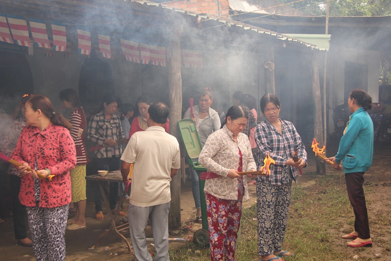 -Phật tử và Đồng bào dâng hương lễ Phật sáng Rằm tháng bảy.