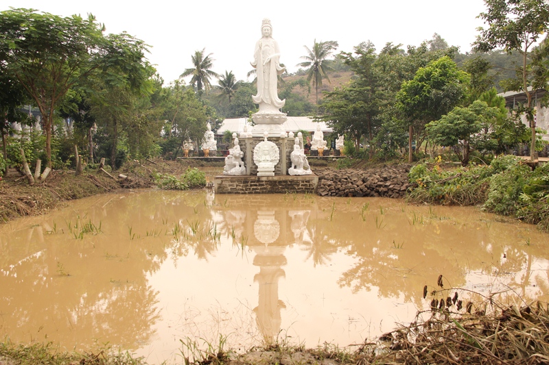 Được biết trong cơn mưa chiều 24/8/2018, nước suối dâng cao tràn vào nền Chùa, nếu không có sự giúp đỡ của các Phật tử và dân địa phương thì số quà trên có thể đã bị ngập nước, tổn thất.