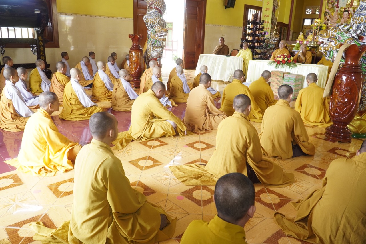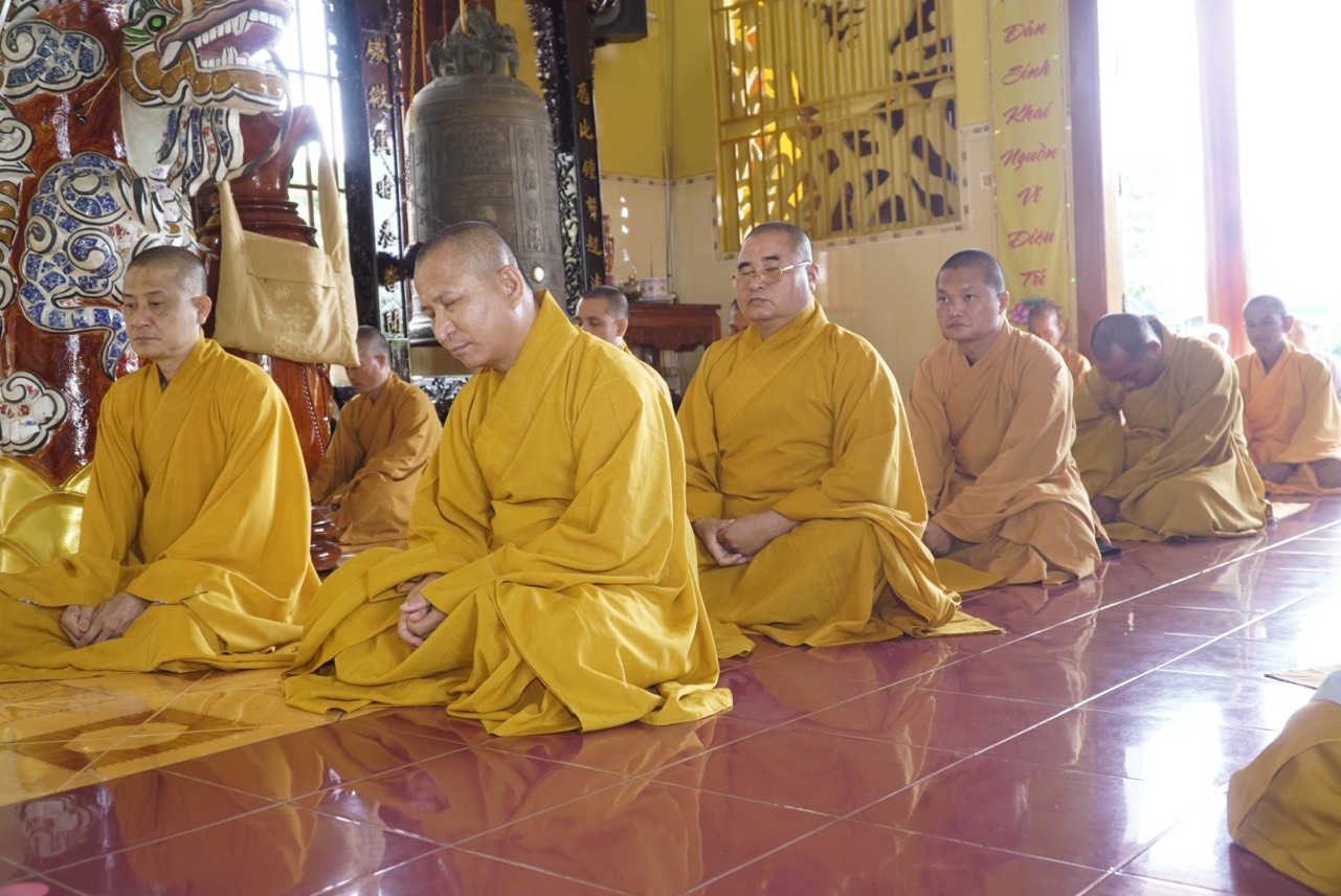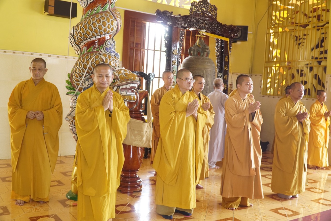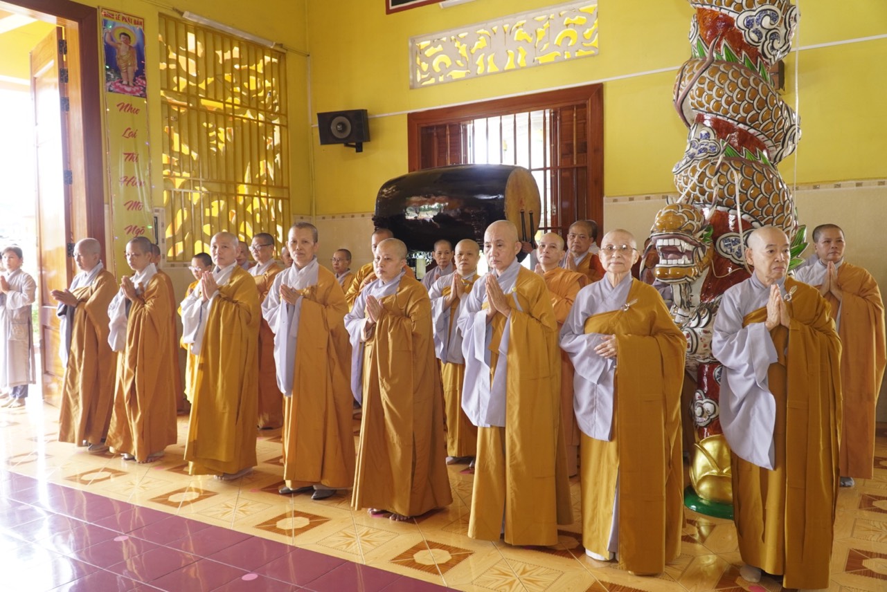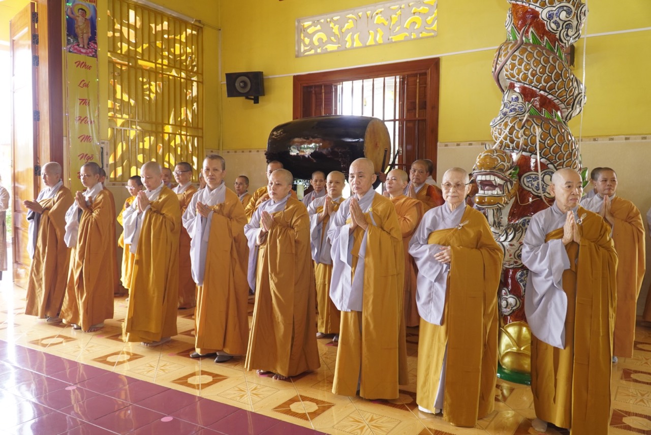 Cung đón chư tôn đức có TT. Thích Đồng Ngạn – Trưởng Ban Trị sự GHPGVN huyện Định Quán; Cùng chư tôn đức thường trực Ban Trị sự, Chư tôn đức Trụ trì các Tự viện và hành giả An cư tại hạ trường huyện Định Quán.