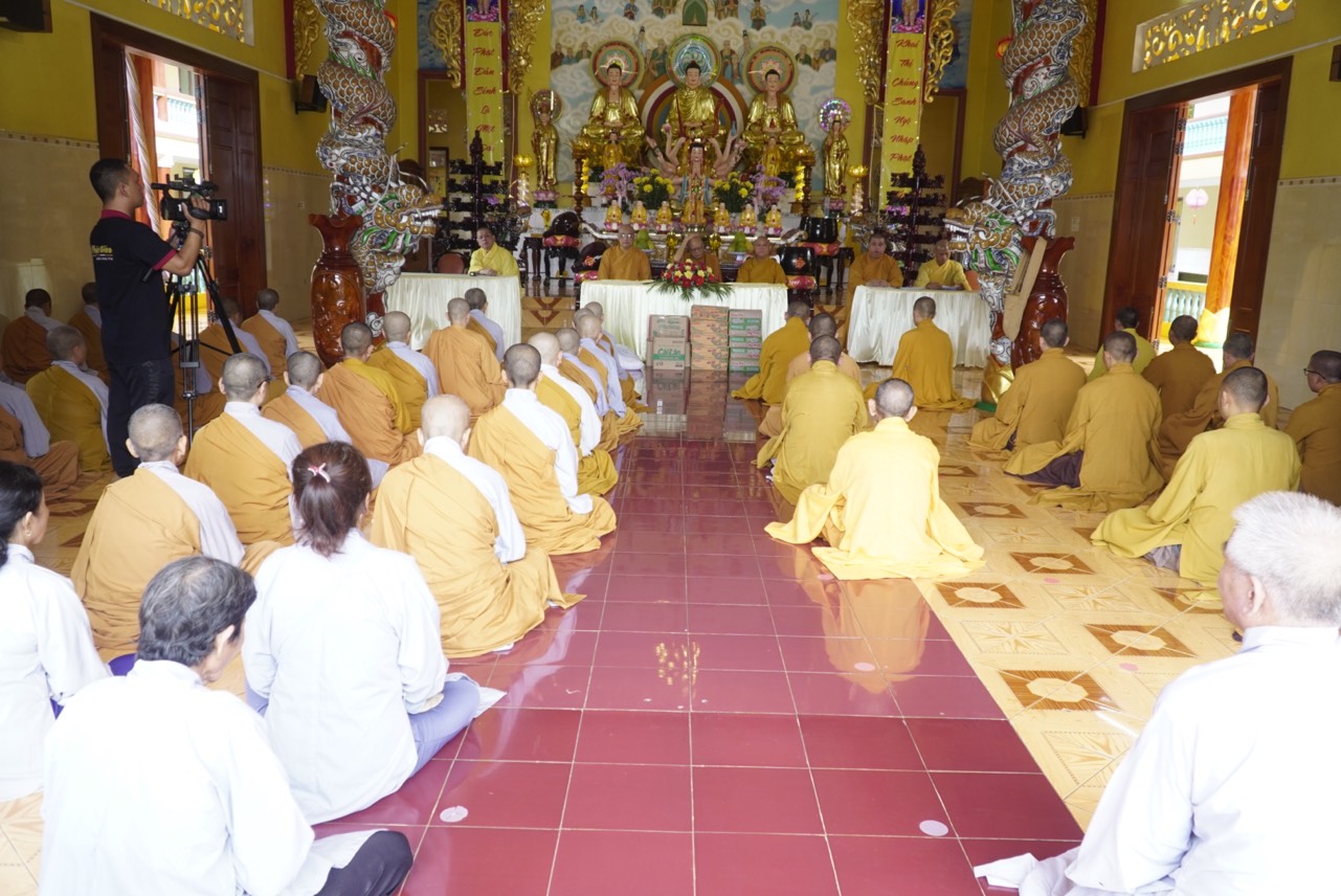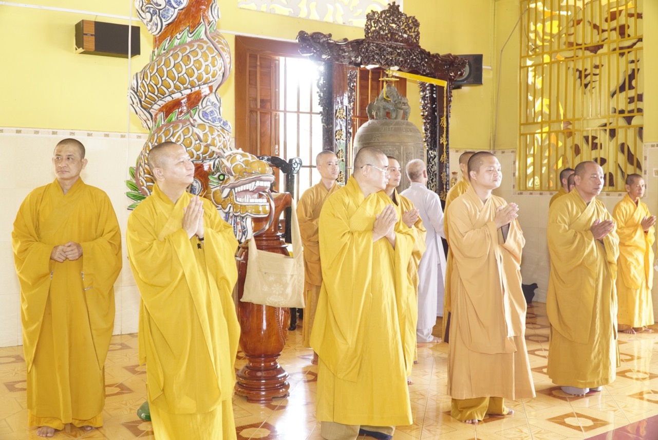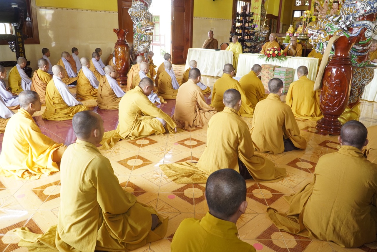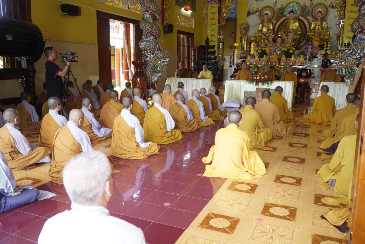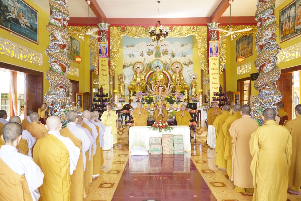 Cung đón chư tôn đức có TT. Thích Đồng Ngạn – Trưởng Ban Trị sự GHPGVN huyện Định Quán; Cùng chư tôn đức thường trực Ban Trị sự, Chư tôn đức Trụ trì các Tự viện và hành giả An cư tại hạ trường huyện Định Quán.