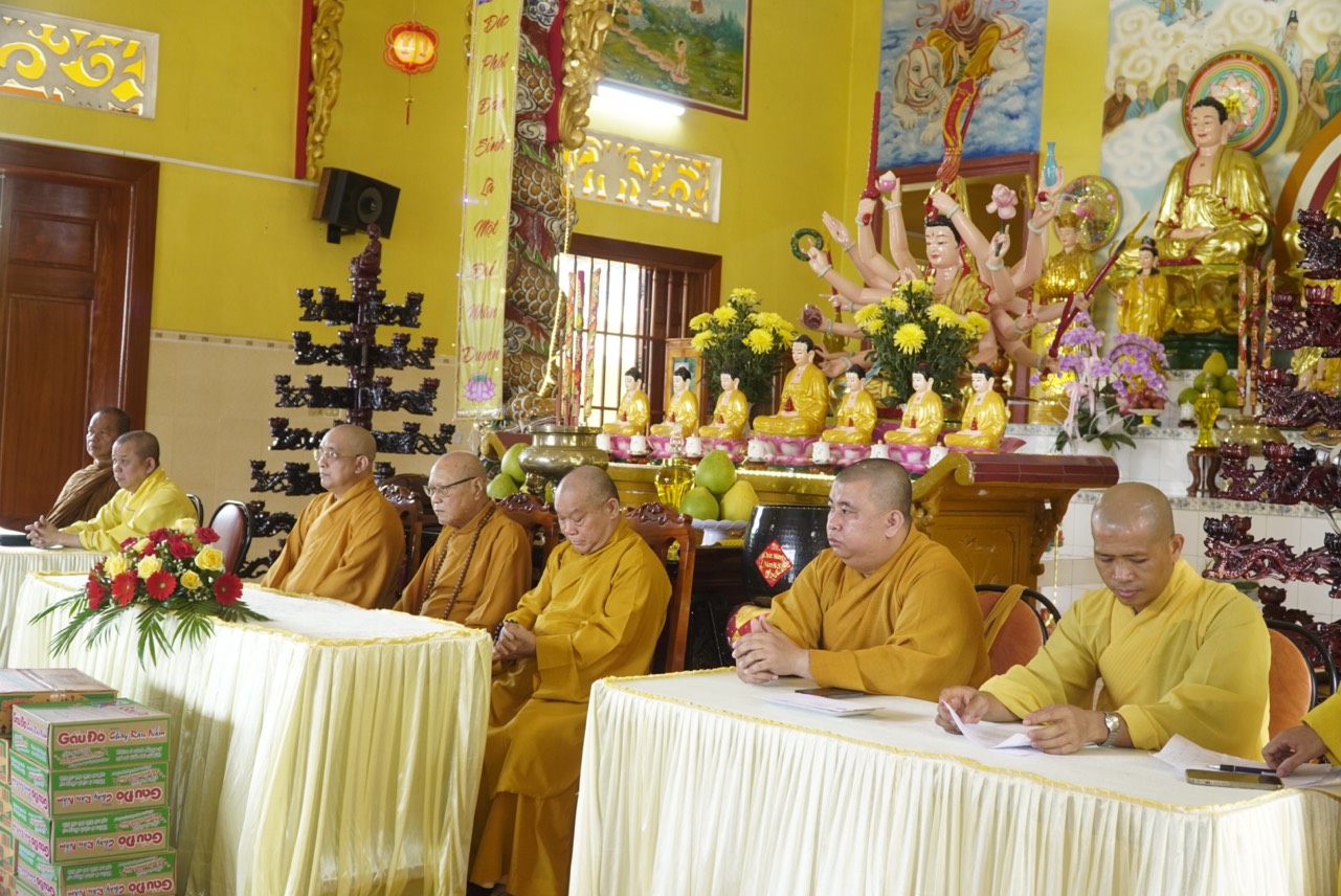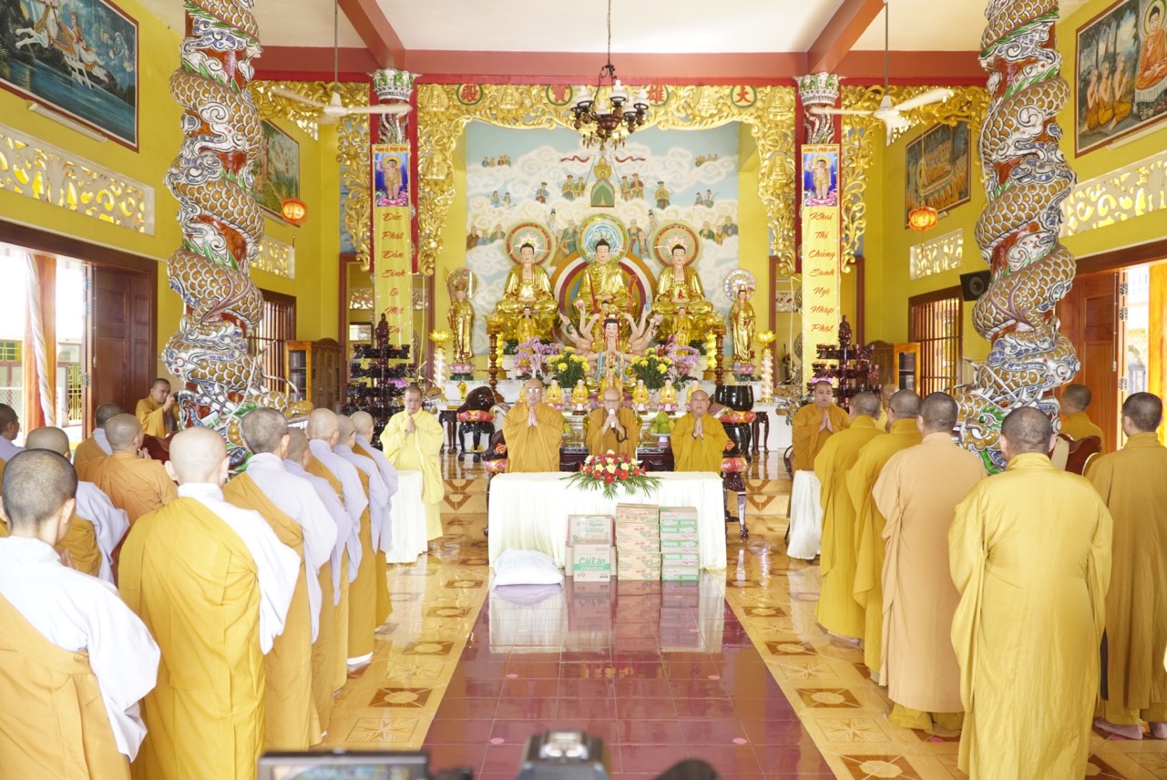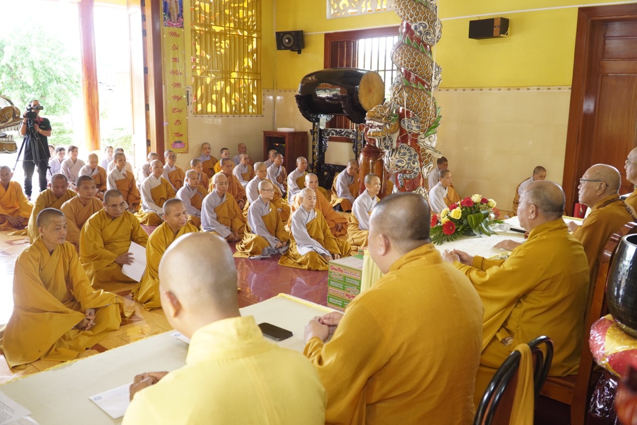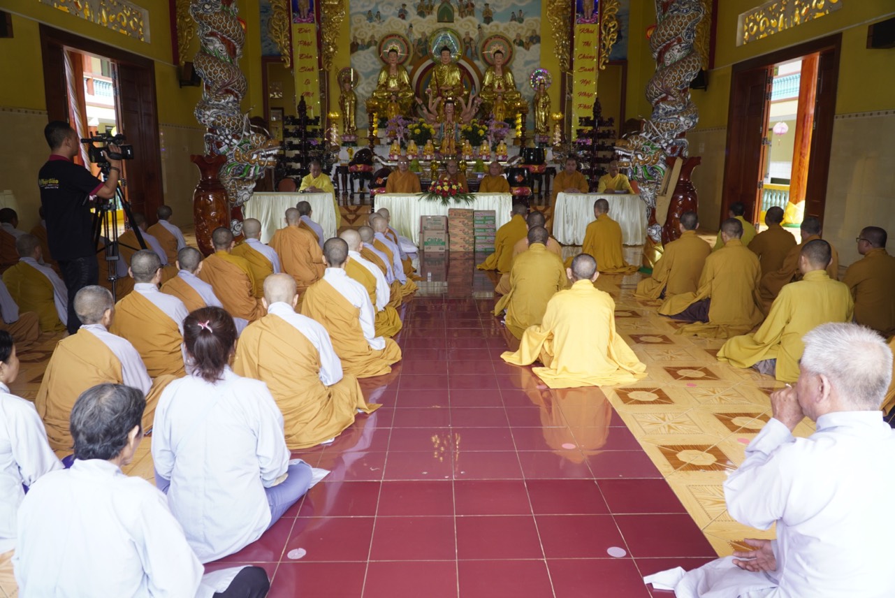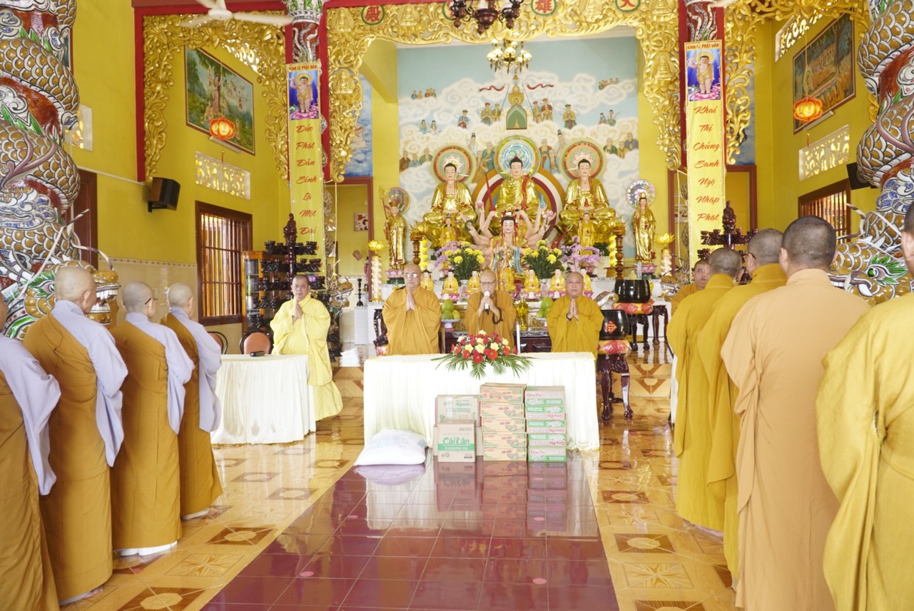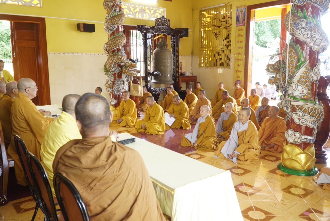 Cung đón chư tôn đức có TT. Thích Đồng Ngạn – Trưởng Ban Trị sự GHPGVN huyện Định Quán; Cùng chư tôn đức thường trực Ban Trị sự, Chư tôn đức Trụ trì các Tự viện và hành giả An cư tại hạ trường huyện Định Quán.