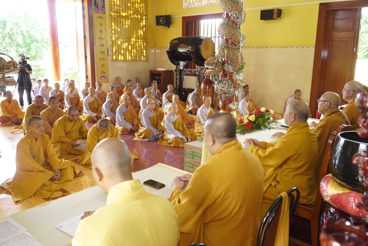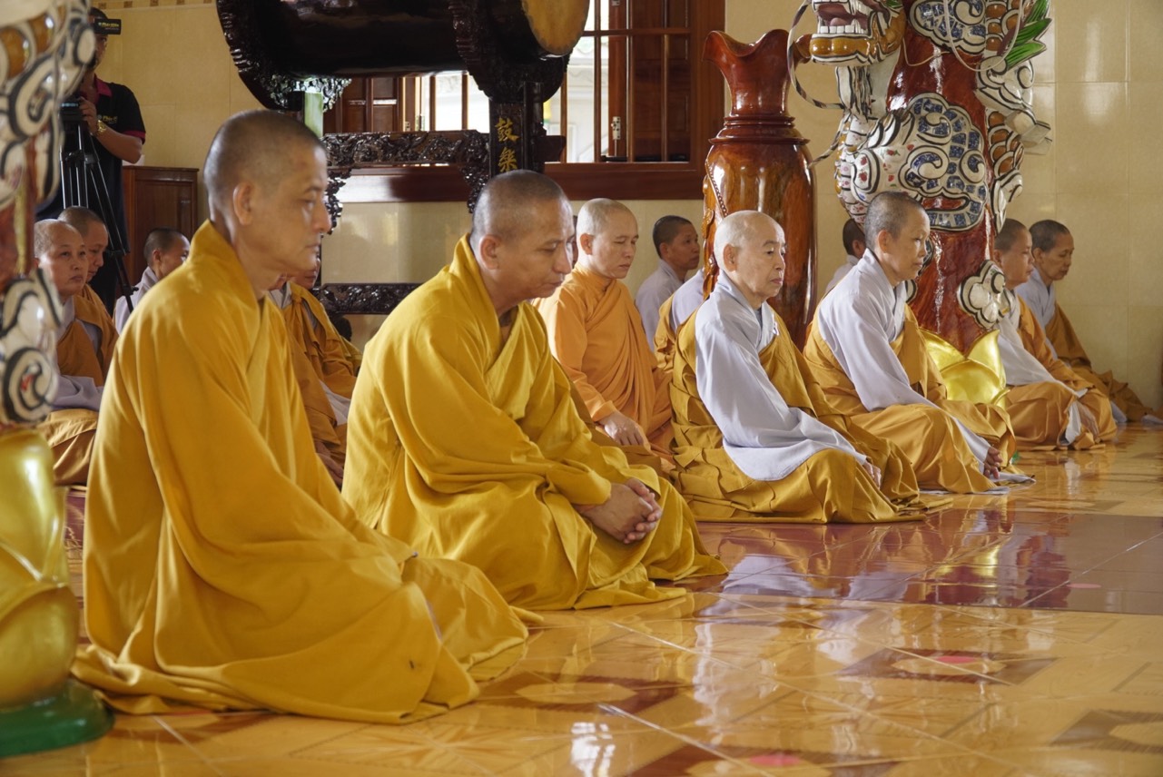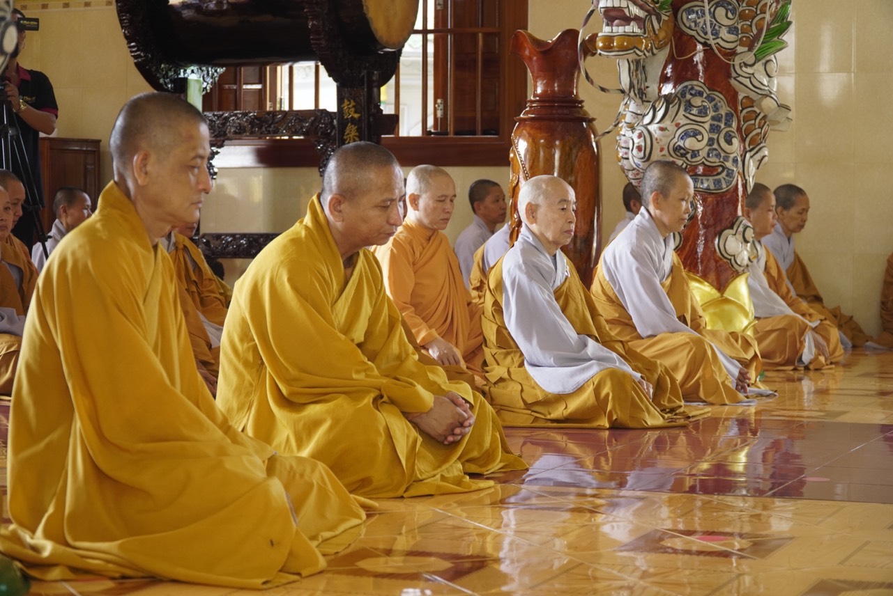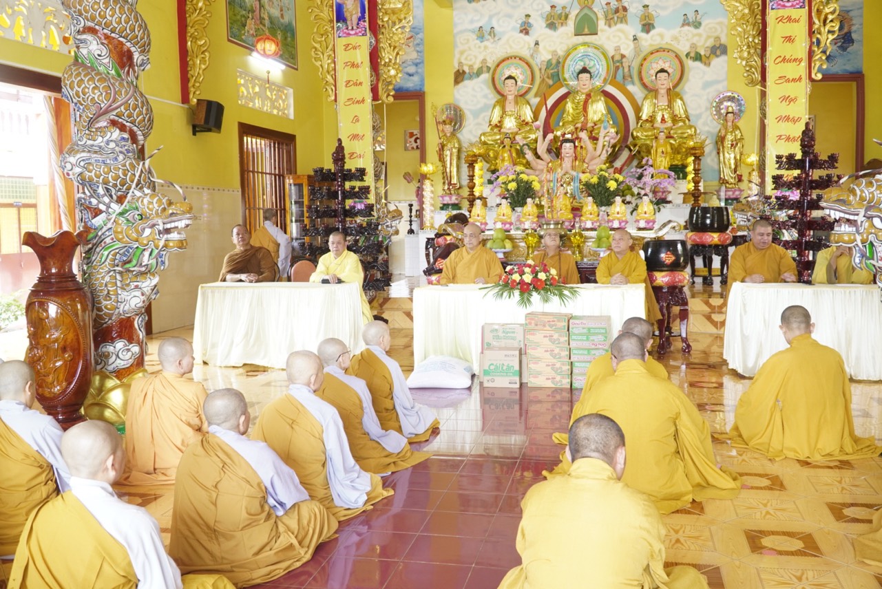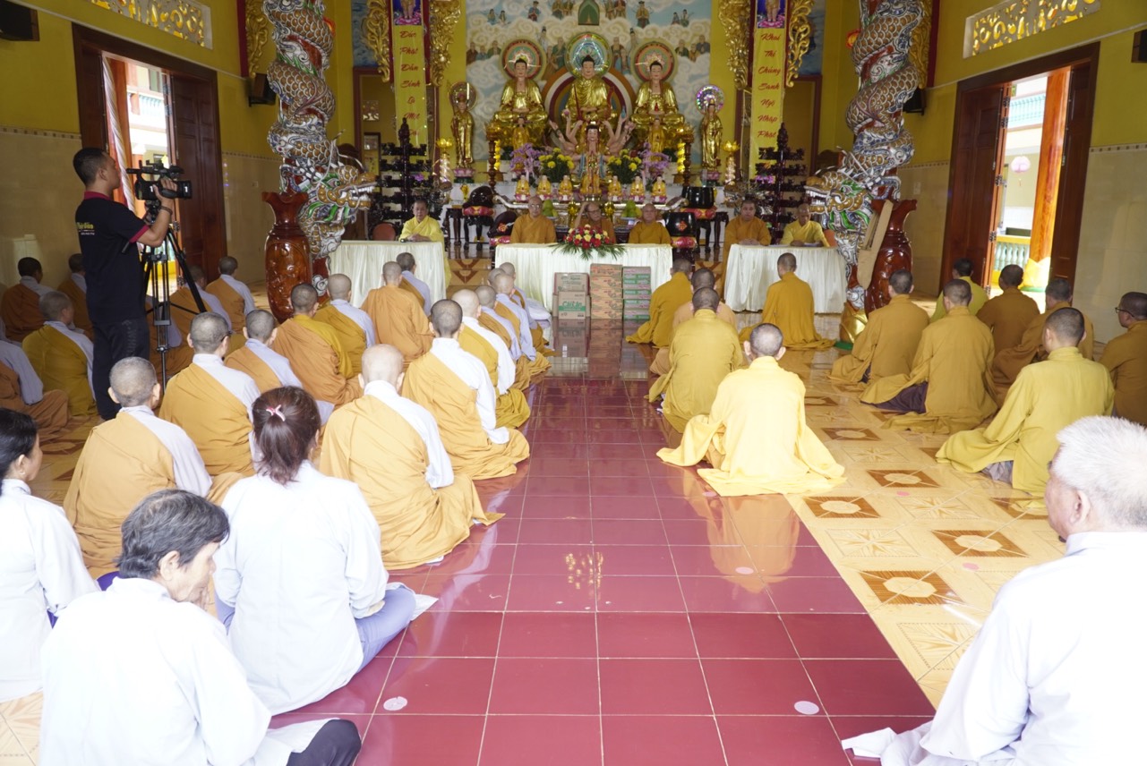 Cung đón chư tôn đức có TT. Thích Đồng Ngạn – Trưởng Ban Trị sự GHPGVN huyện Định Quán; Cùng chư tôn đức thường trực Ban Trị sự, Chư tôn đức Trụ trì các Tự viện và hành giả An cư tại hạ trường huyện Định Quán.