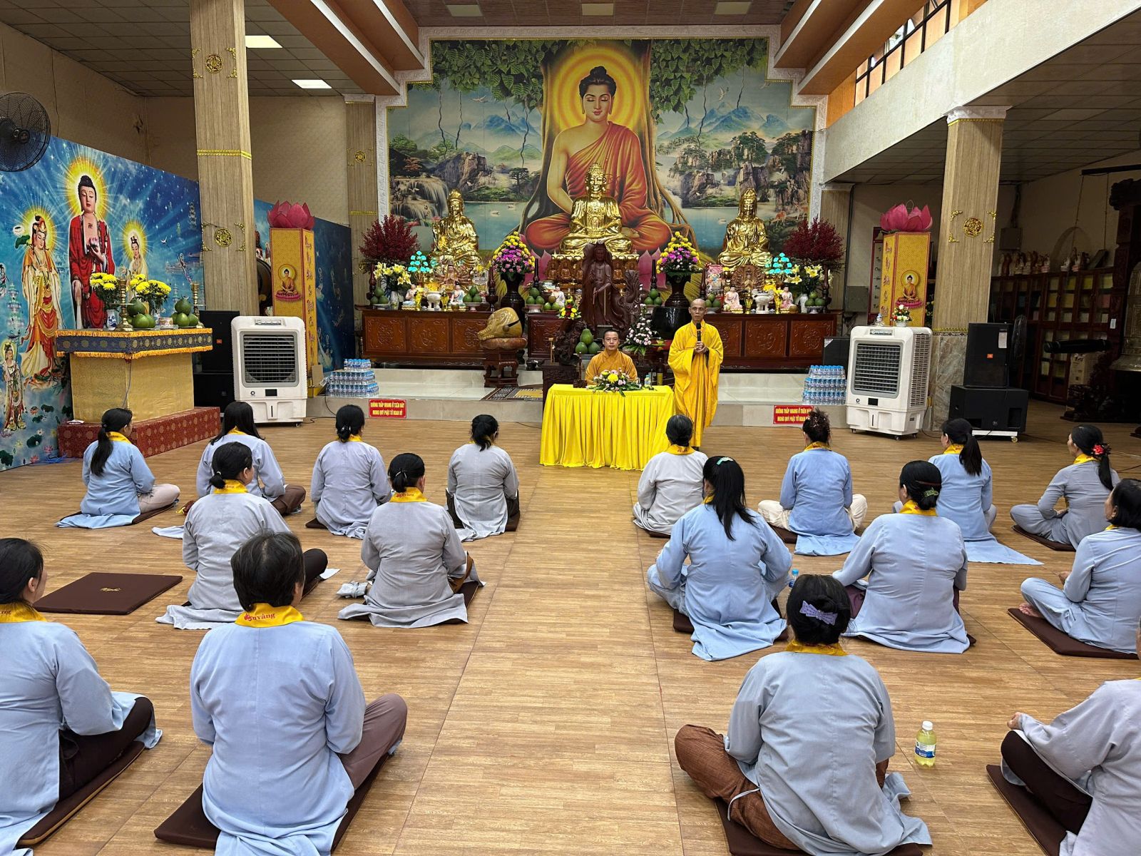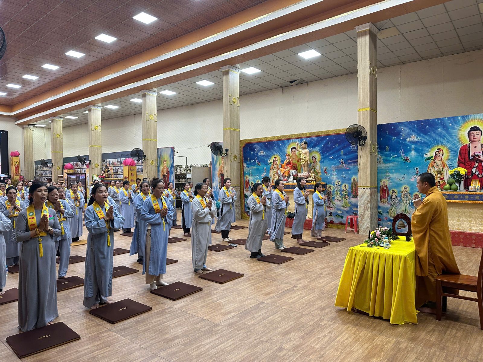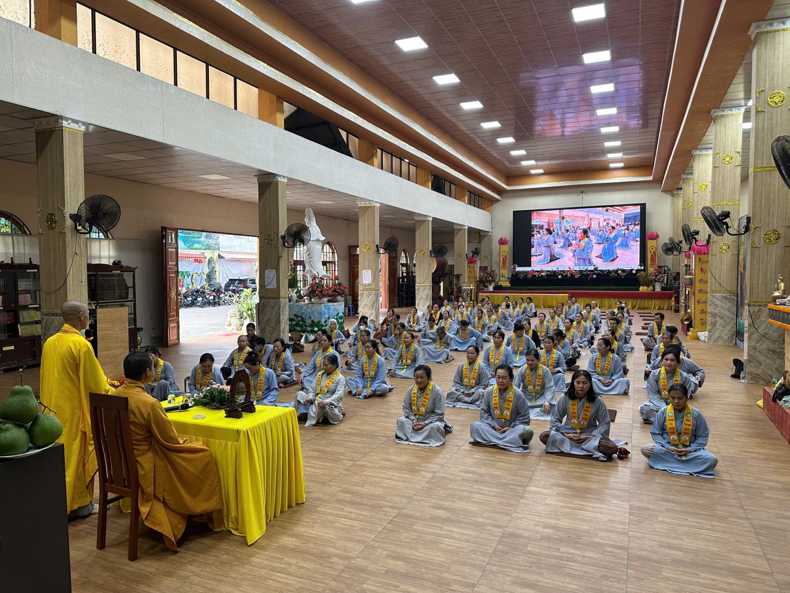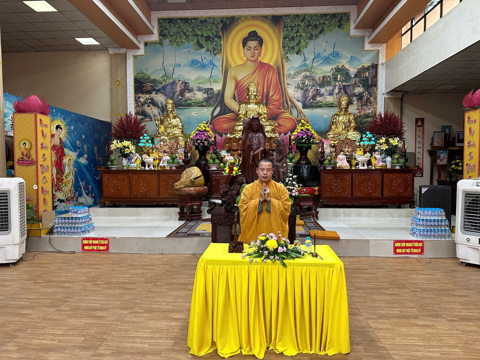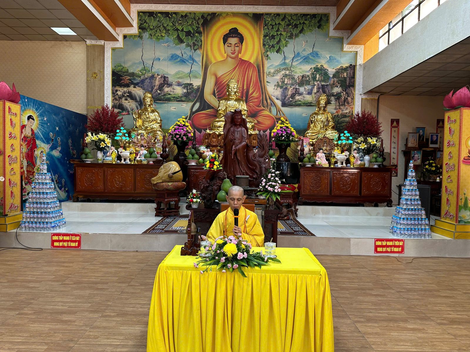 Đạo tràng trang nghiêm cung thỉnh chư tôn đức quang lâm niêm hương, Đại Đức Thích Minh Hiếu có thời Pháp, Đức Phật dạy khi các pháp đã được thuần thiện, mục đích cuối cùng của con người không còn phân biệt mà sẽ trở thành một nơi chung cho tất cả. Nhân quả thế gian là chung cho tất cả chúng sanh, khi một người nào tạo nhân thiện thì sẽ có được kết quả thiện. Quan trọng nhất vẫn là sự thực hành của mỗi cá nhân, đạt được mục đích giải thoát hay không đều do chính bản thân mình.