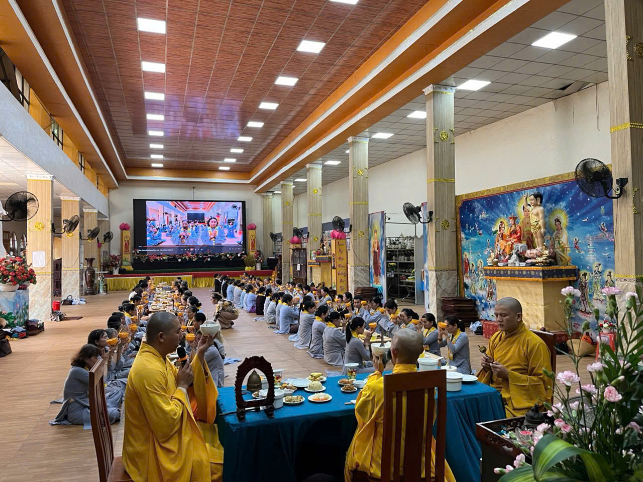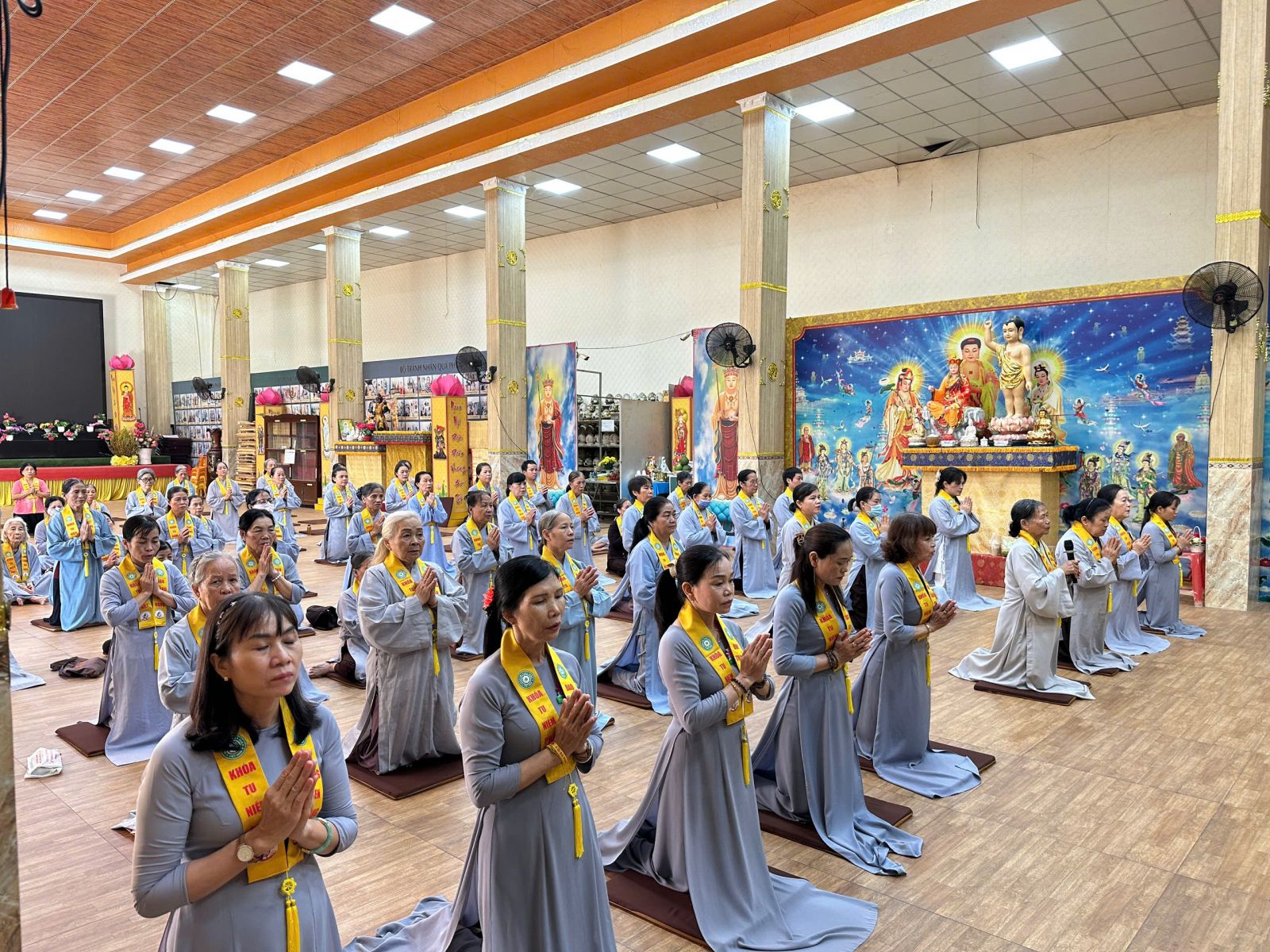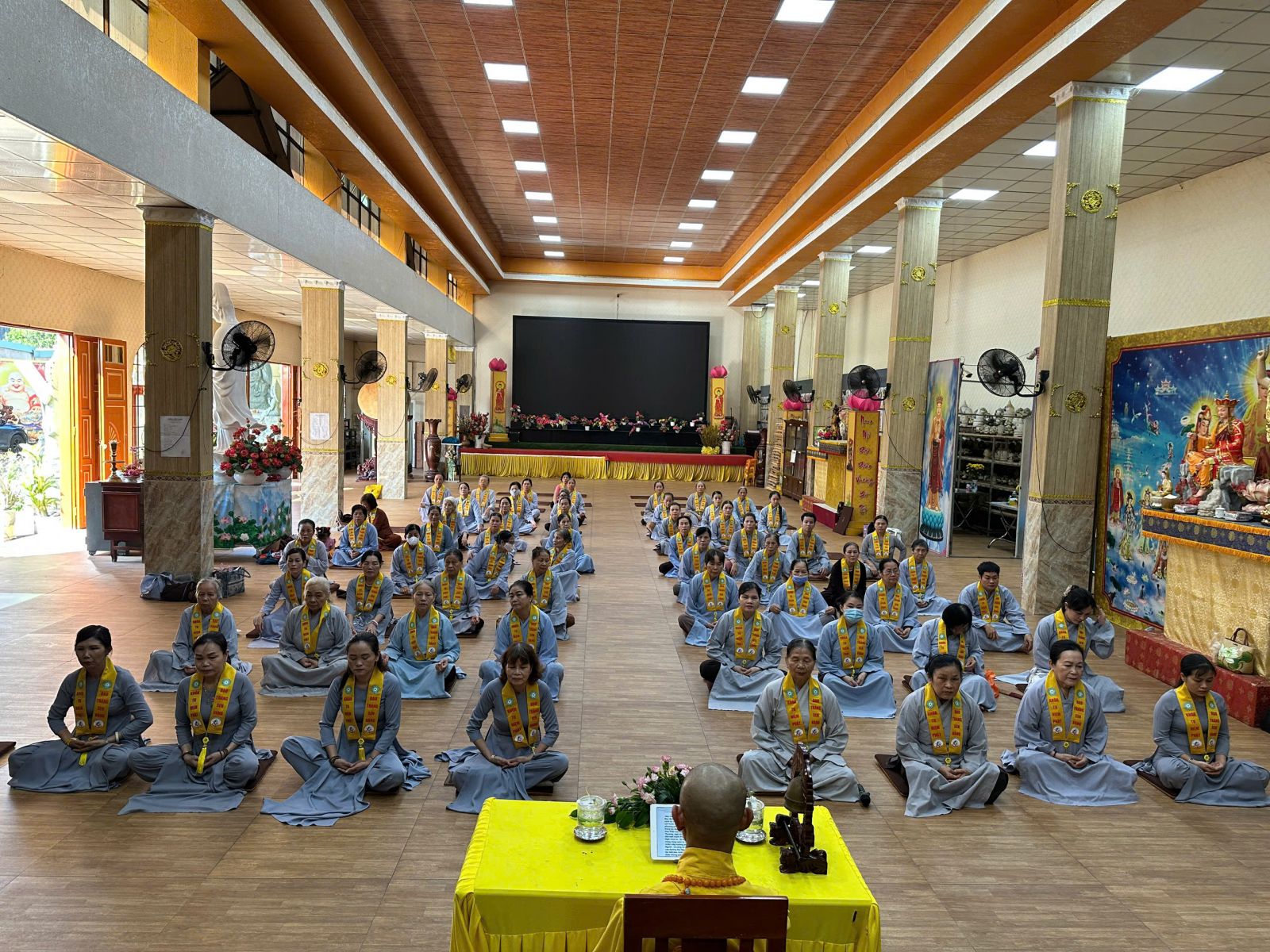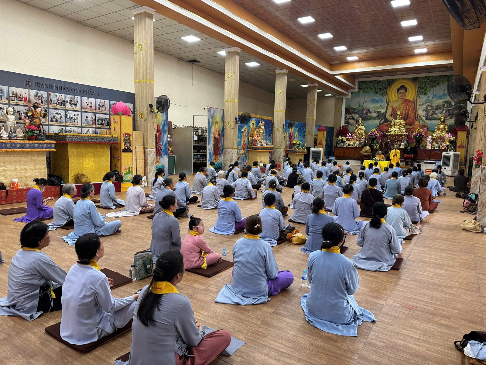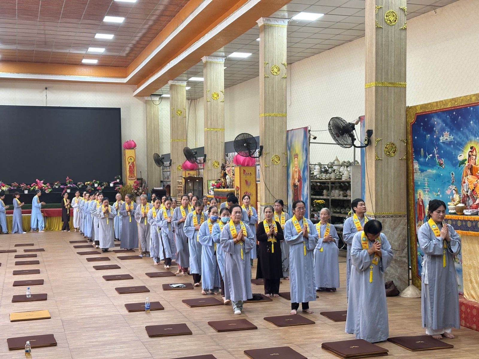 Đạo tràng trang nghiêm cung thỉnh chư tôn đức quang lâm niêm hương, Đại Đức Thích Minh Hiếu có thời Pháp, Đức Phật dạy khi các pháp đã được thuần thiện, mục đích cuối cùng của con người không còn phân biệt mà sẽ trở thành một nơi chung cho tất cả. Nhân quả thế gian là chung cho tất cả chúng sanh, khi một người nào tạo nhân thiện thì sẽ có được kết quả thiện. Quan trọng nhất vẫn là sự thực hành của mỗi cá nhân, đạt được mục đích giải thoát hay không đều do chính bản thân mình.