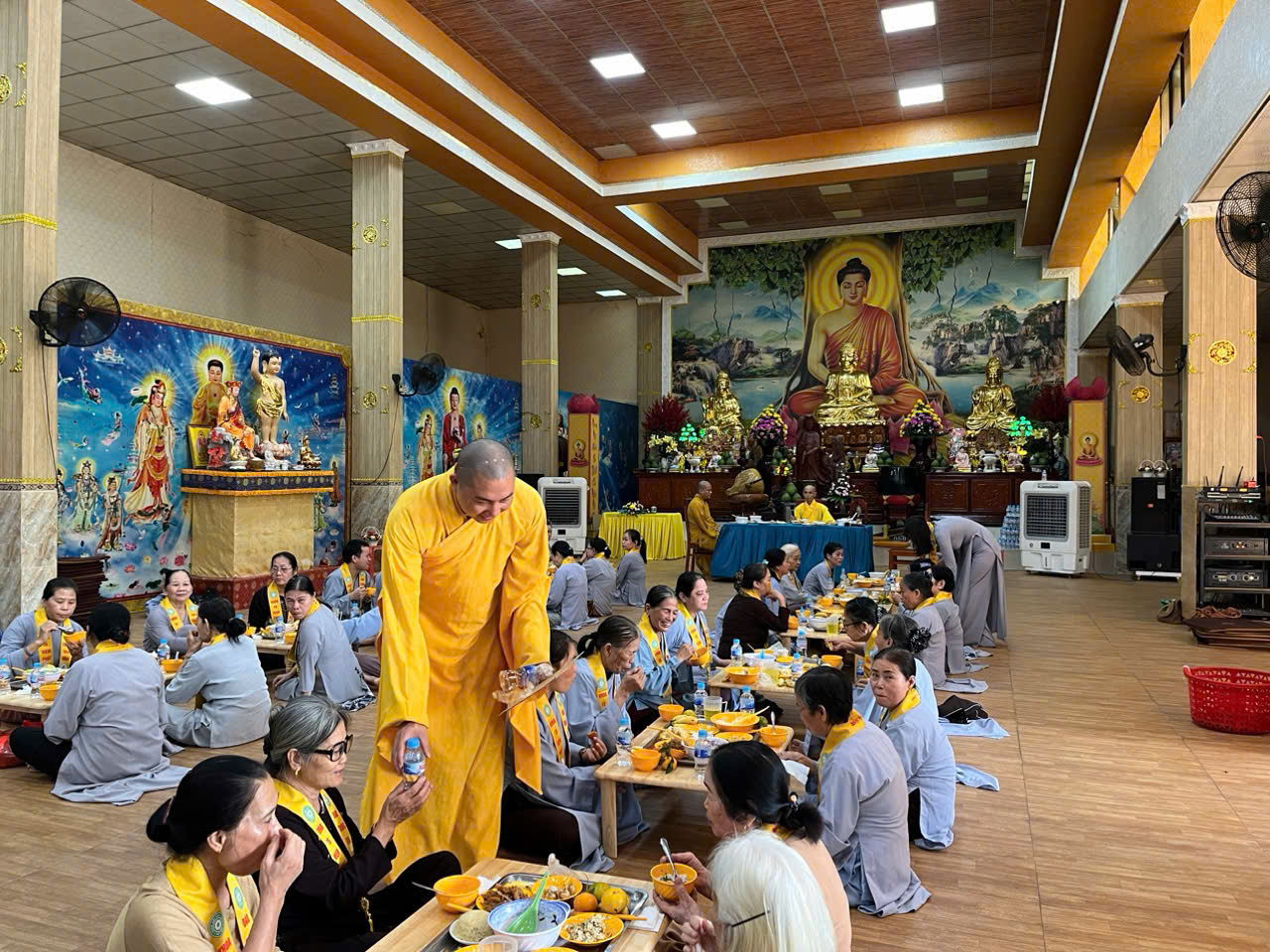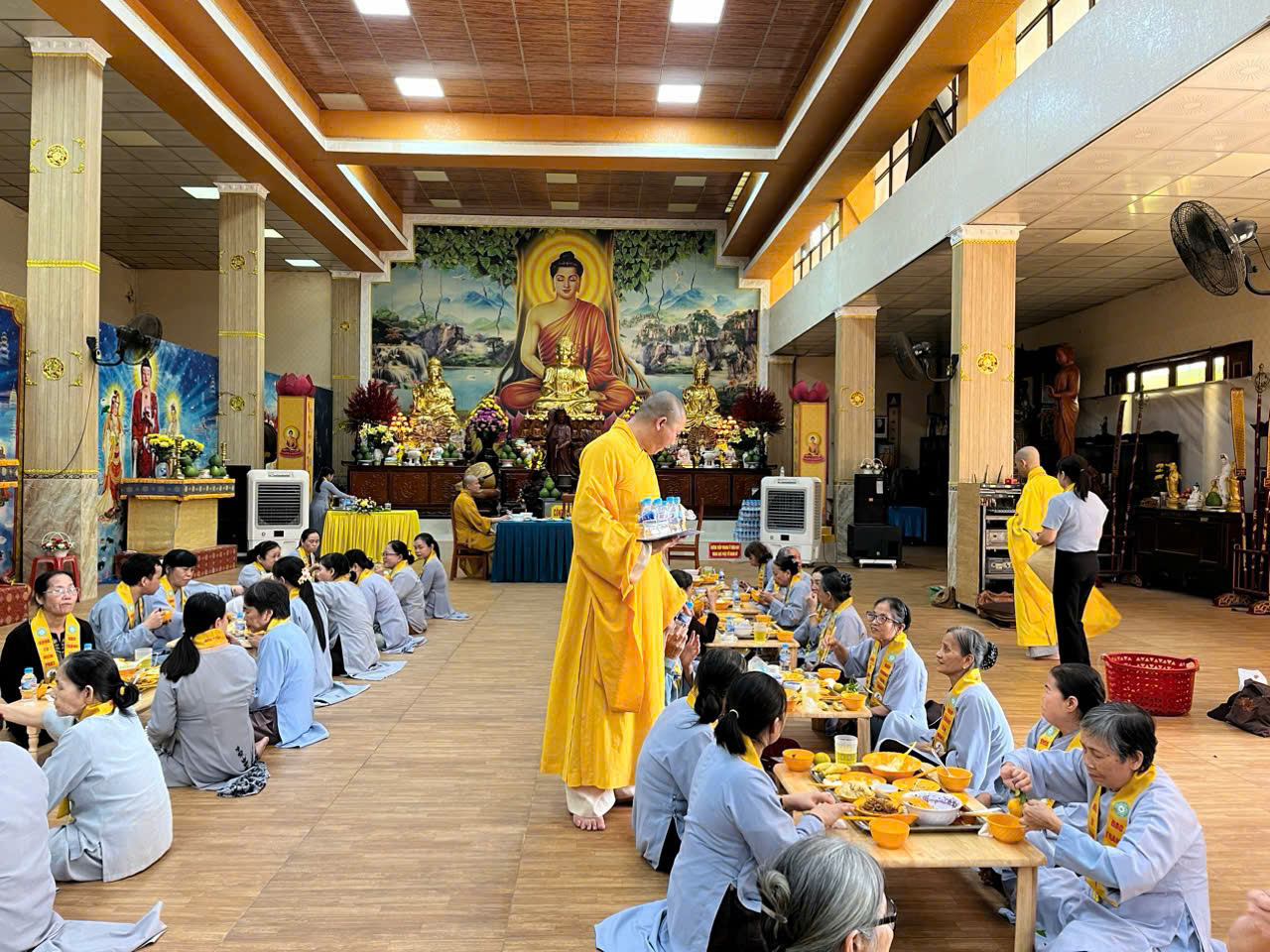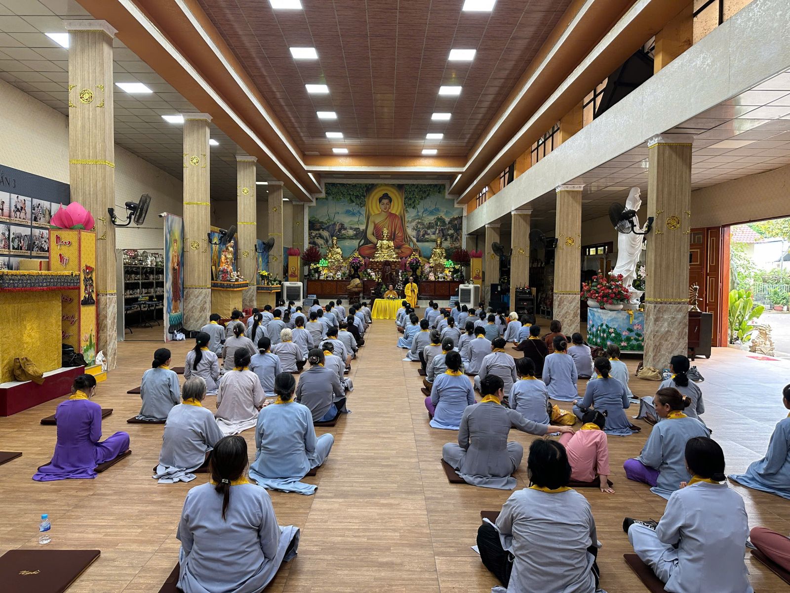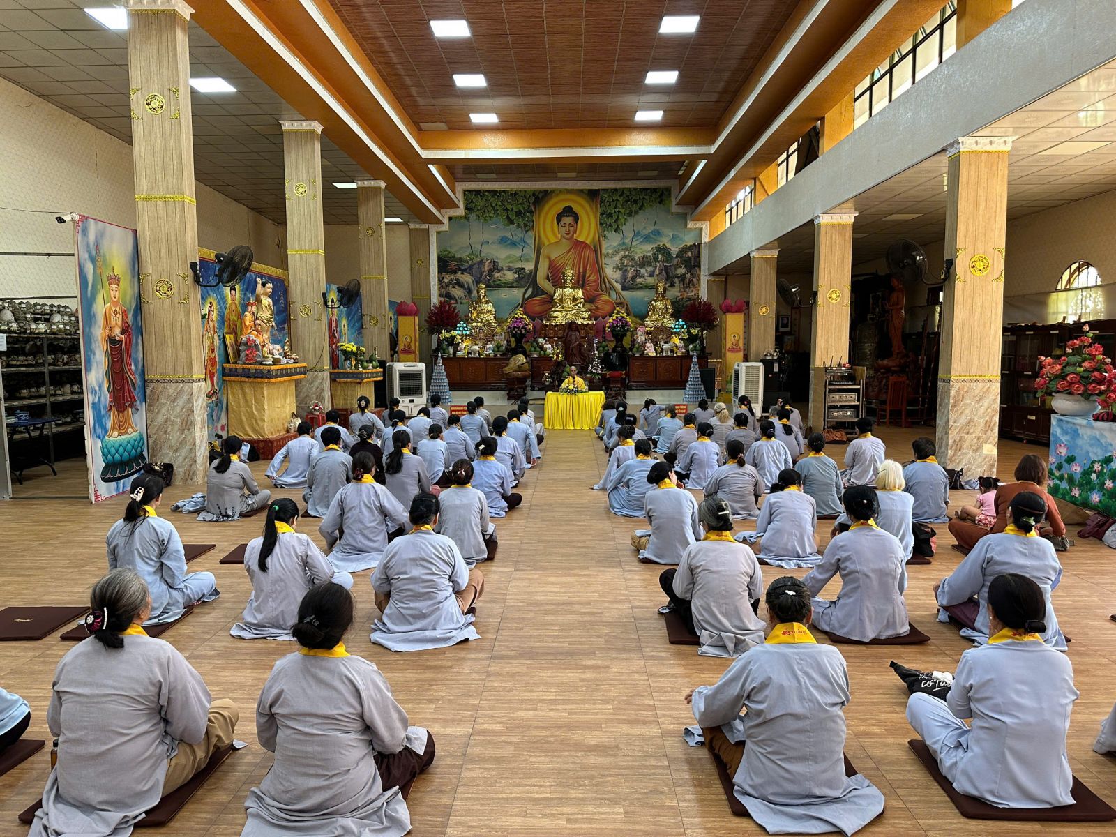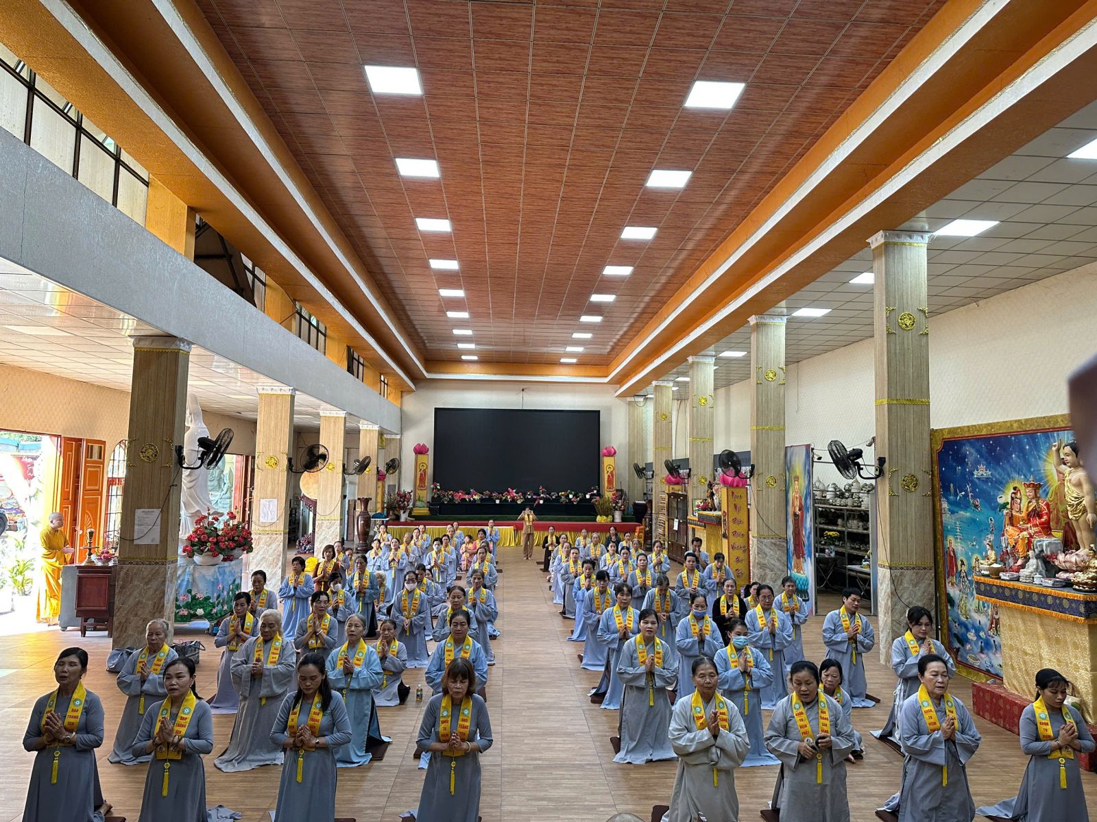 Đạo tràng trang nghiêm cung thỉnh chư tôn đức quang lâm niêm hương, Đại Đức Thích Minh Hiếu có thời Pháp, Đức Phật dạy khi các pháp đã được thuần thiện, mục đích cuối cùng của con người không còn phân biệt mà sẽ trở thành một nơi chung cho tất cả. Nhân quả thế gian là chung cho tất cả chúng sanh, khi một người nào tạo nhân thiện thì sẽ có được kết quả thiện. Quan trọng nhất vẫn là sự thực hành của mỗi cá nhân, đạt được mục đích giải thoát hay không đều do chính bản thân mình.