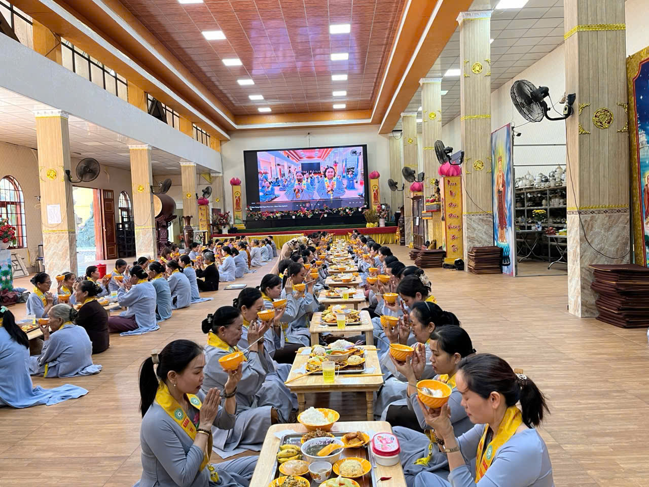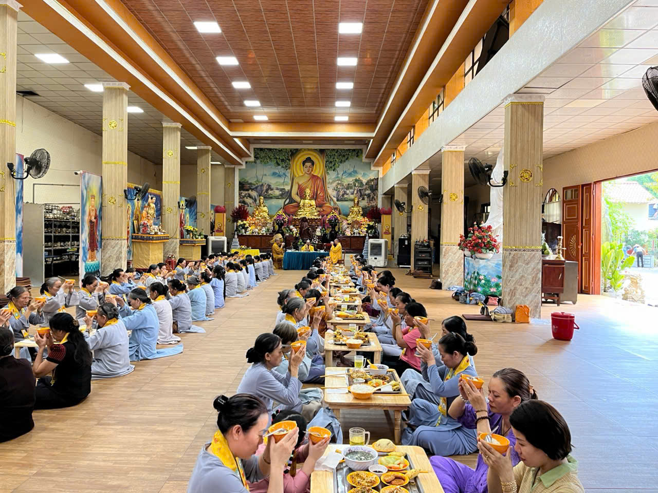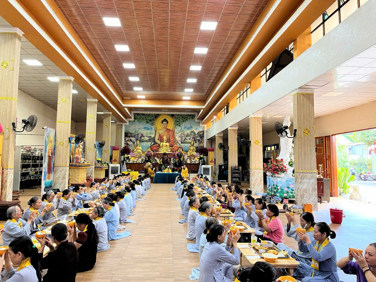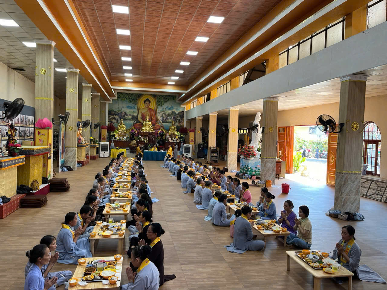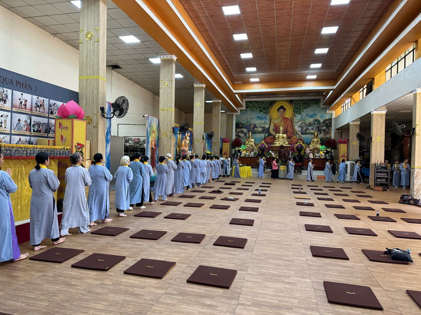 Đạo tràng trang nghiêm cung thỉnh chư tôn đức quang lâm niêm hương, Đại Đức Thích Minh Hiếu có thời Pháp, Đức Phật dạy khi các pháp đã được thuần thiện, mục đích cuối cùng của con người không còn phân biệt mà sẽ trở thành một nơi chung cho tất cả. Nhân quả thế gian là chung cho tất cả chúng sanh, khi một người nào tạo nhân thiện thì sẽ có được kết quả thiện. Quan trọng nhất vẫn là sự thực hành của mỗi cá nhân, đạt được mục đích giải thoát hay không đều do chính bản thân mình.
