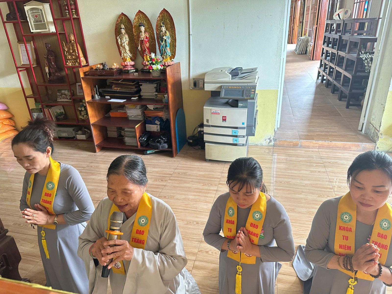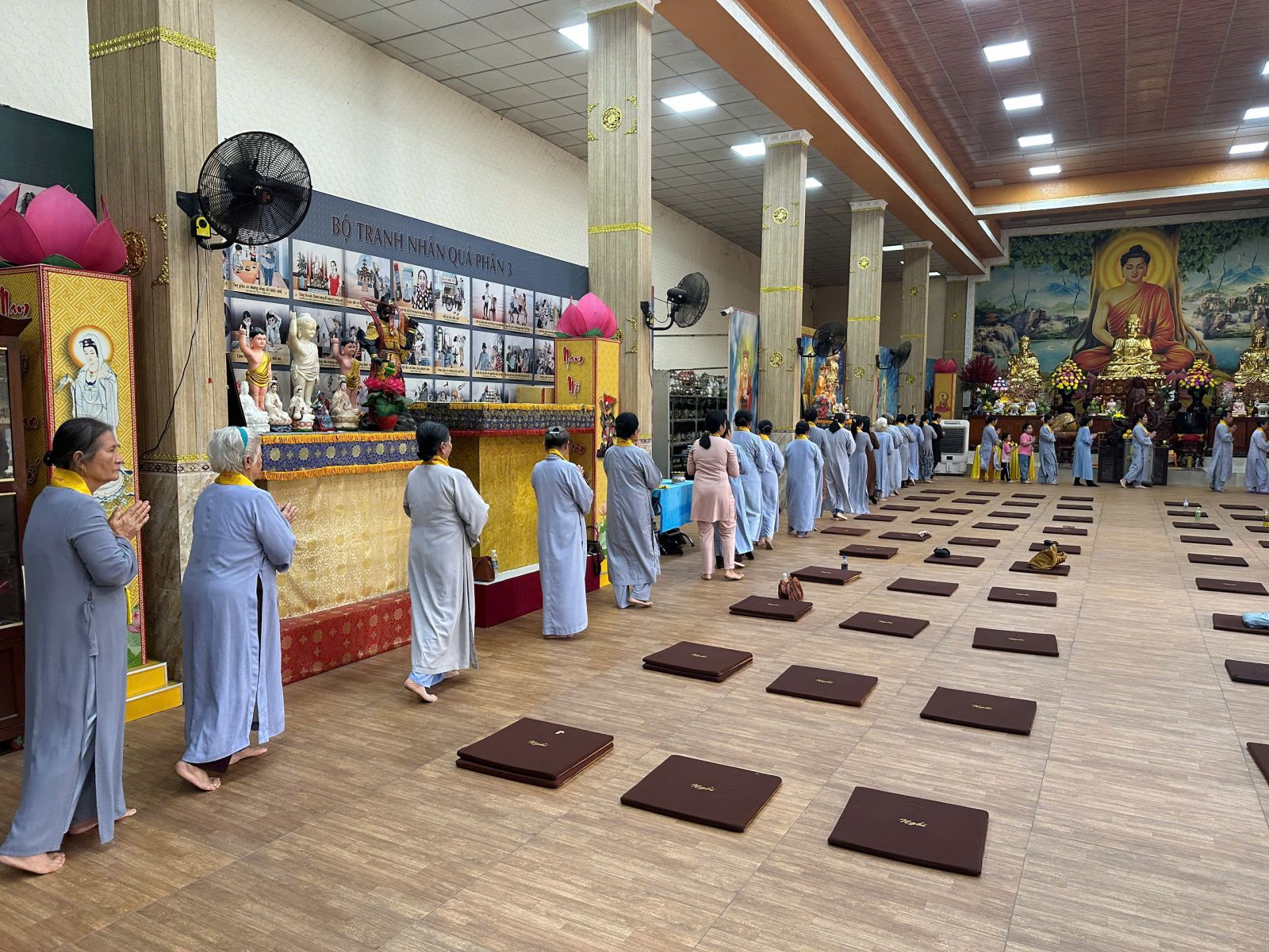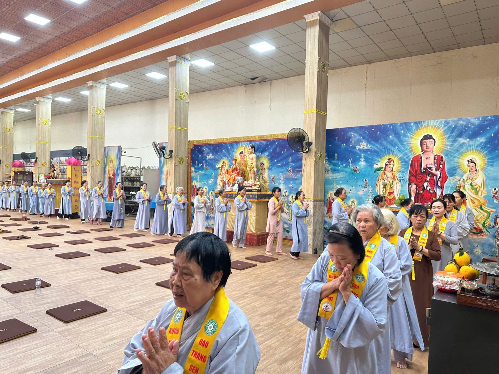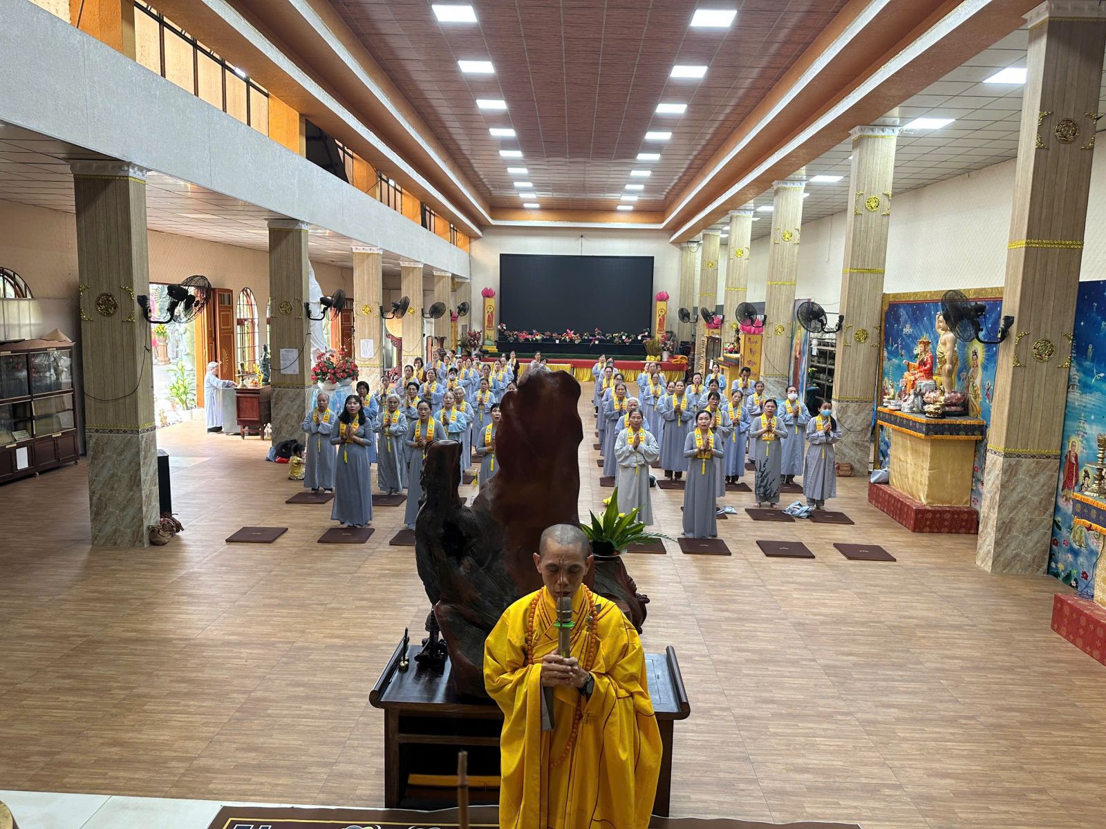 Chiều cùng ngày chư Tăng hướng dẫn trì tụng 21 biến đại bi, hướng dẫn đạo tràng niệm Phật kinh hành và trì tụng kinh Di Đà, mông sơn thí thực.