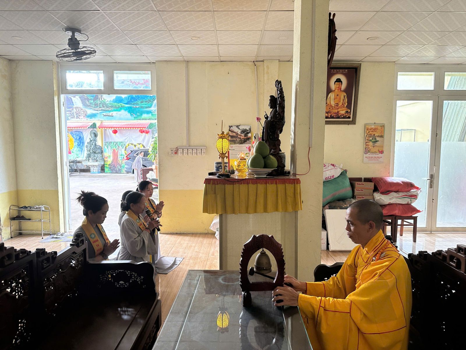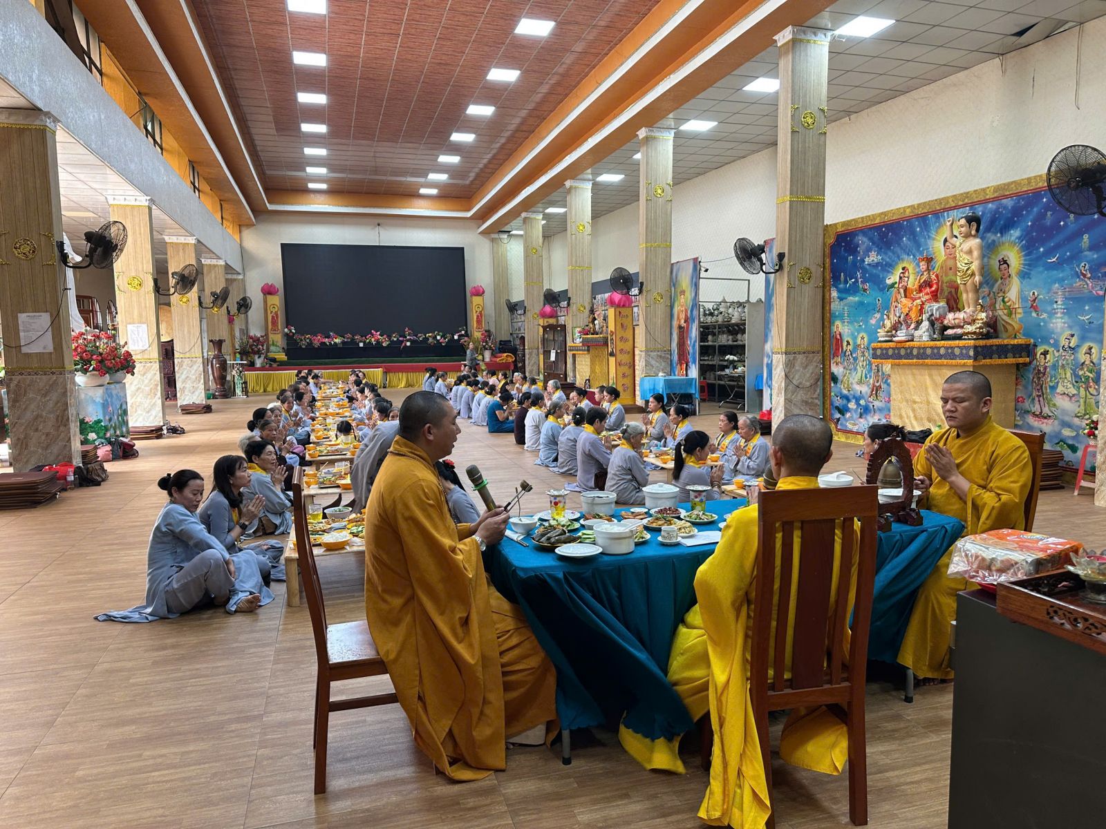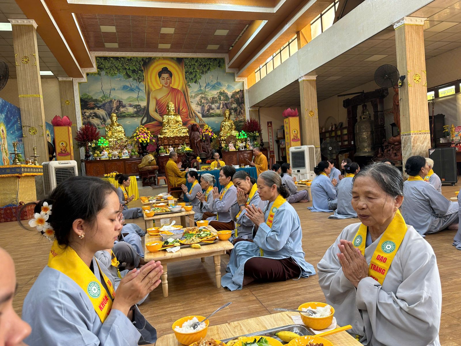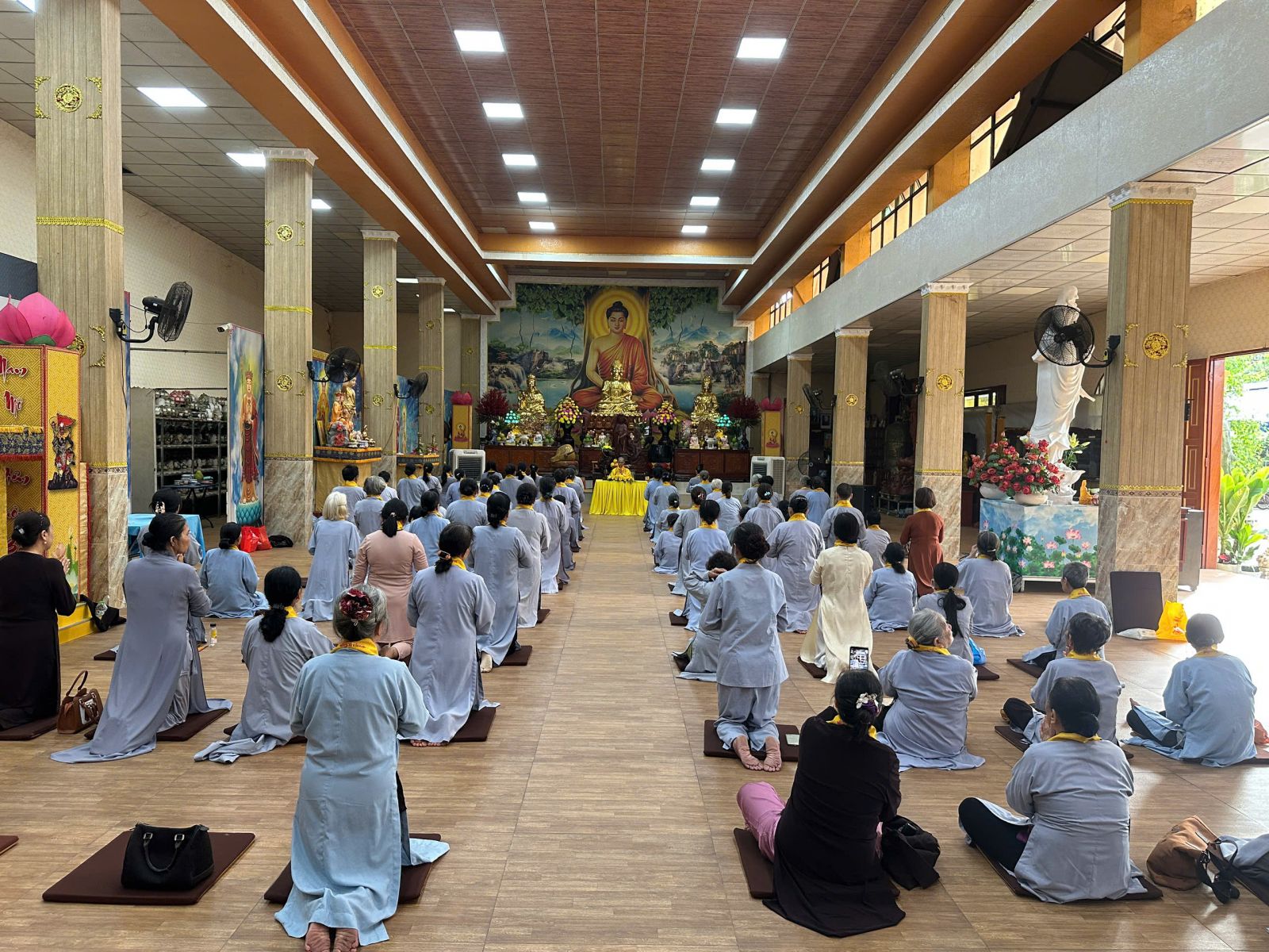 Chiều cùng ngày chư Tăng hướng dẫn trì tụng 21 biến đại bi, hướng dẫn đạo tràng niệm Phật kinh hành và trì tụng kinh Di Đà, mông sơn thí thực.