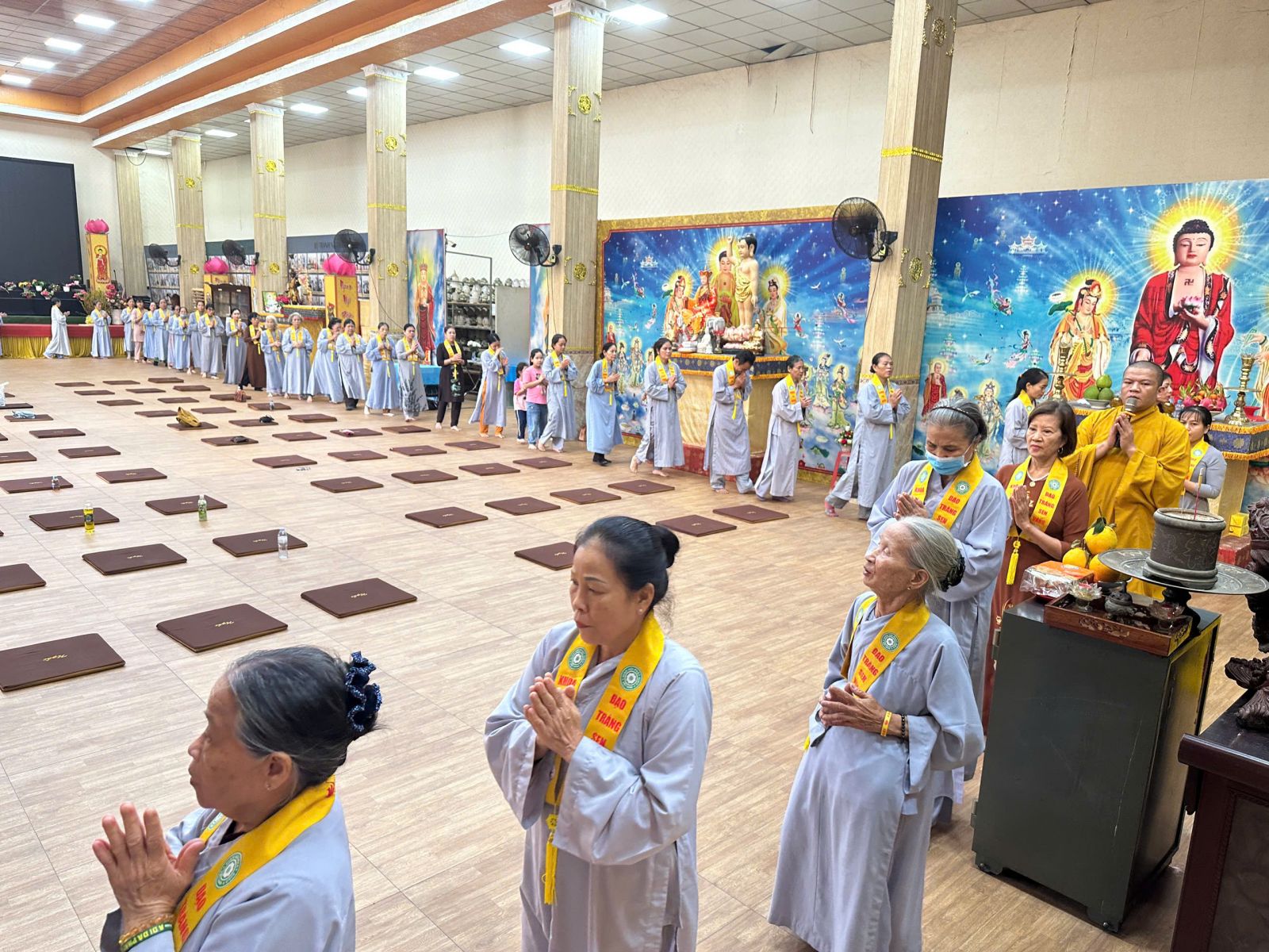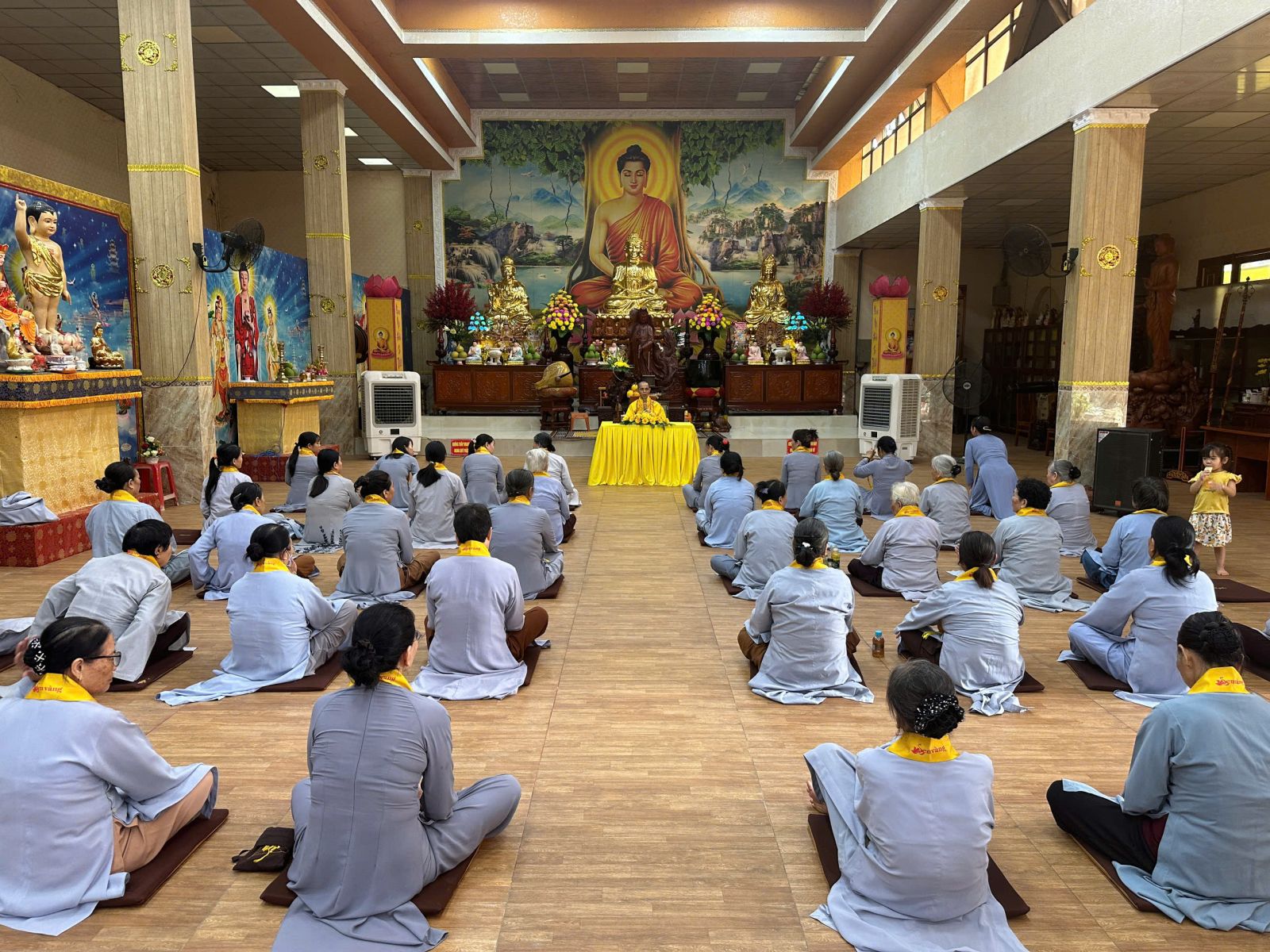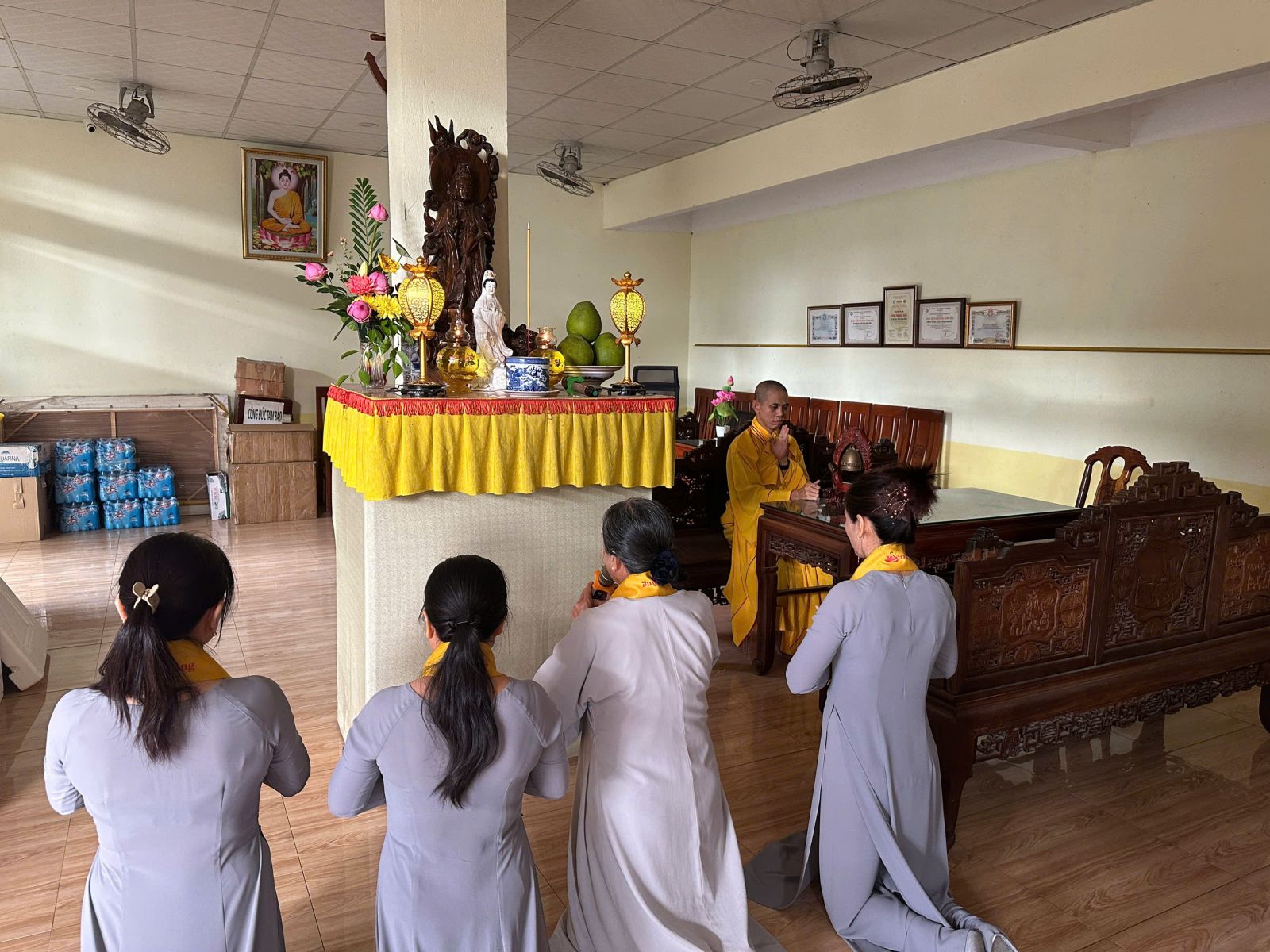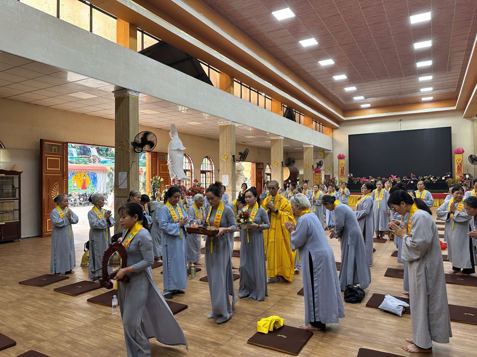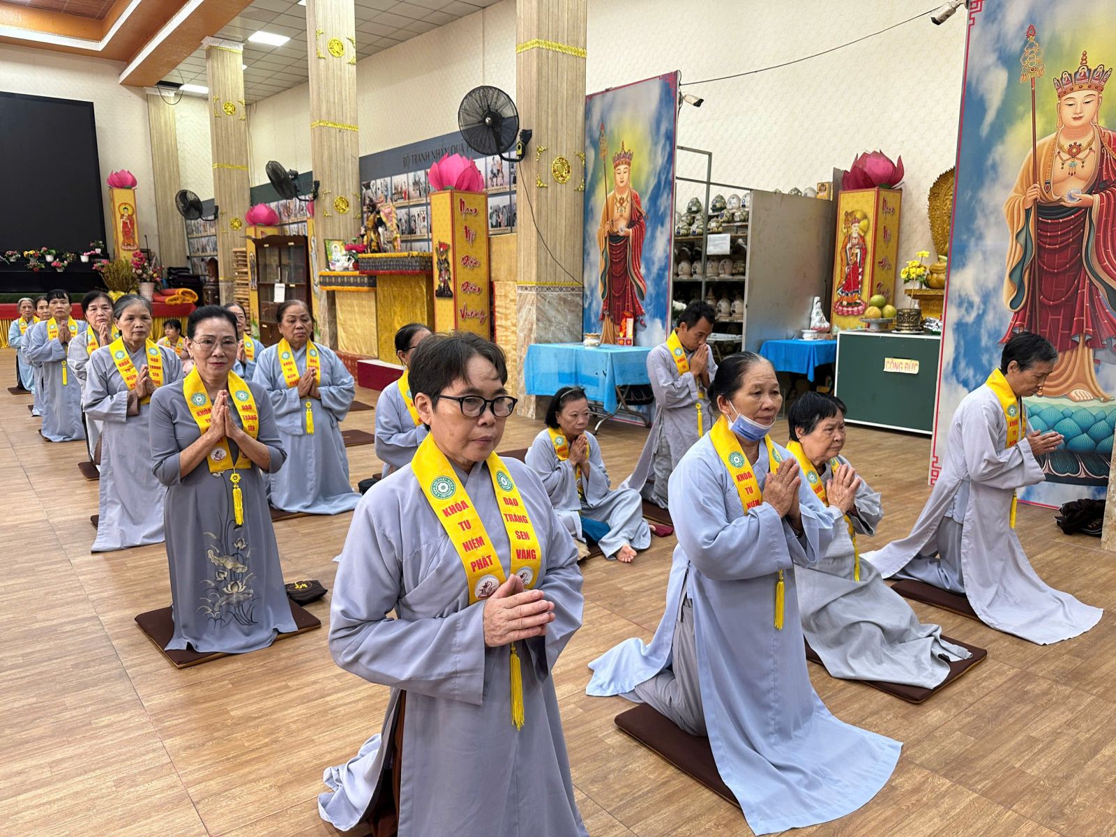 Chiều cùng ngày chư Tăng hướng dẫn trì tụng 21 biến đại bi, hướng dẫn đạo tràng niệm Phật kinh hành và trì tụng kinh Di Đà, mông sơn thí thực.
