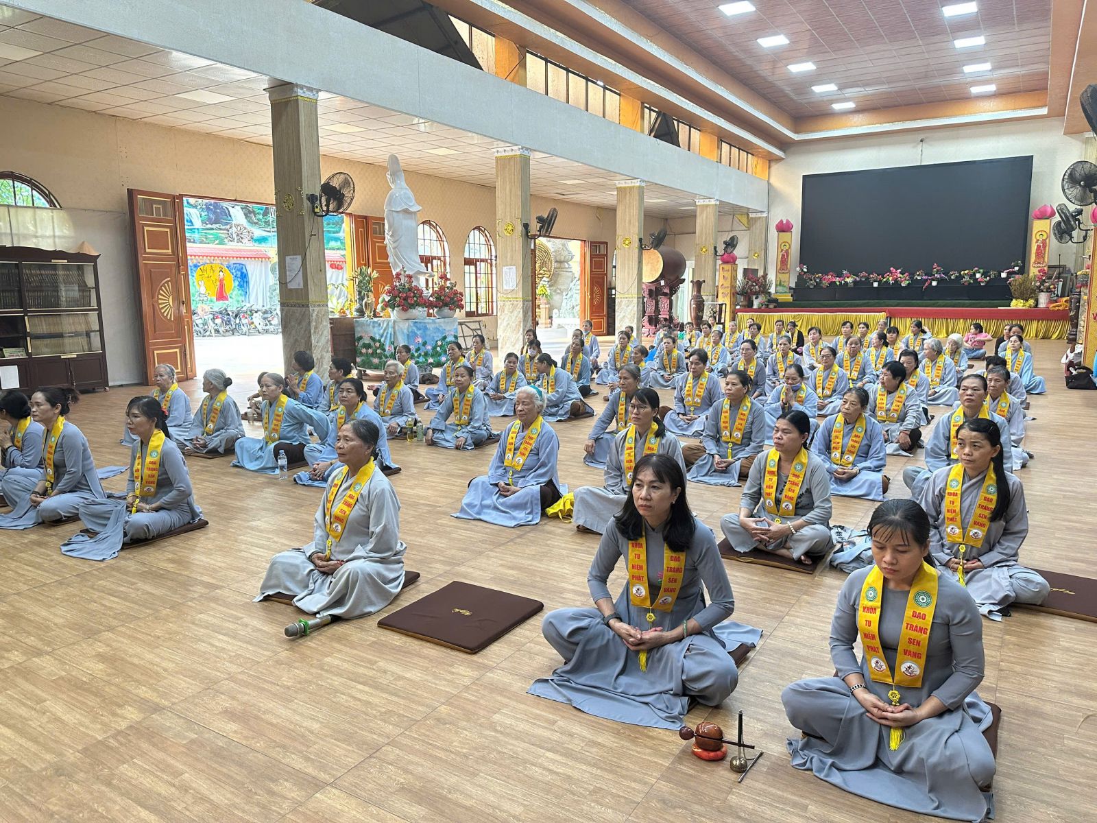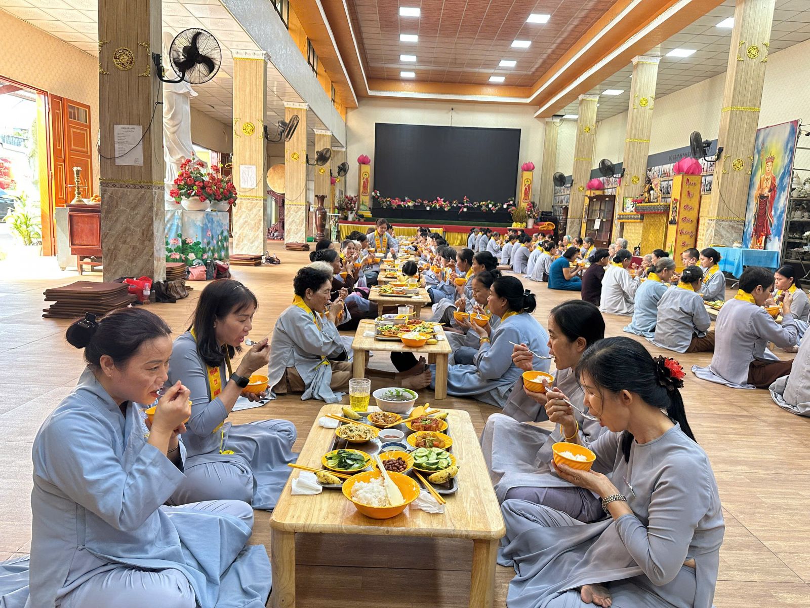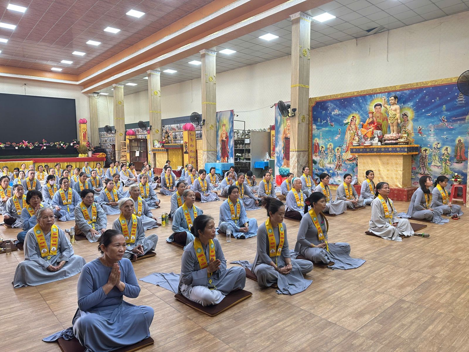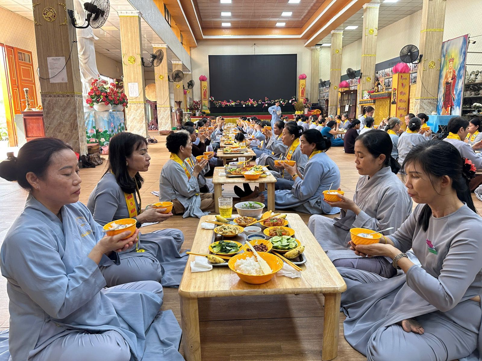 Chiều cùng ngày chư Tăng hướng dẫn trì tụng 21 biến đại bi, hướng dẫn đạo tràng niệm Phật kinh hành và trì tụng kinh Di Đà, mông sơn thí thực.