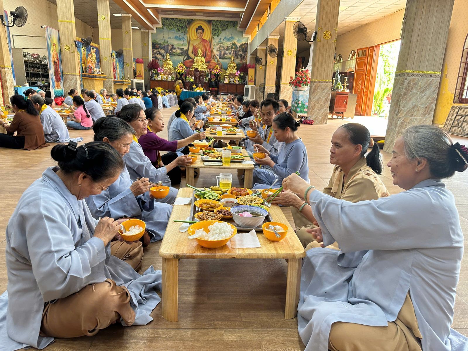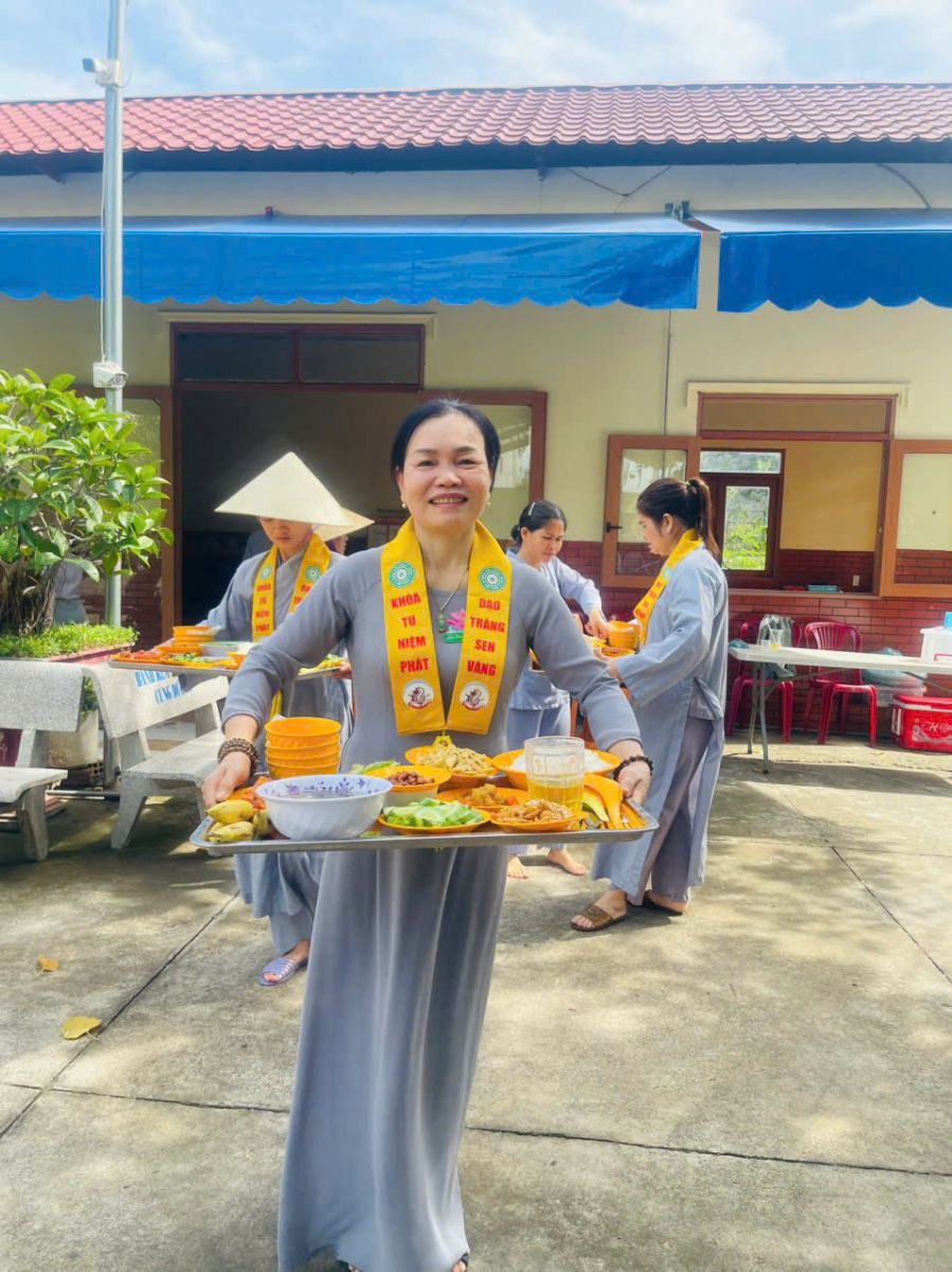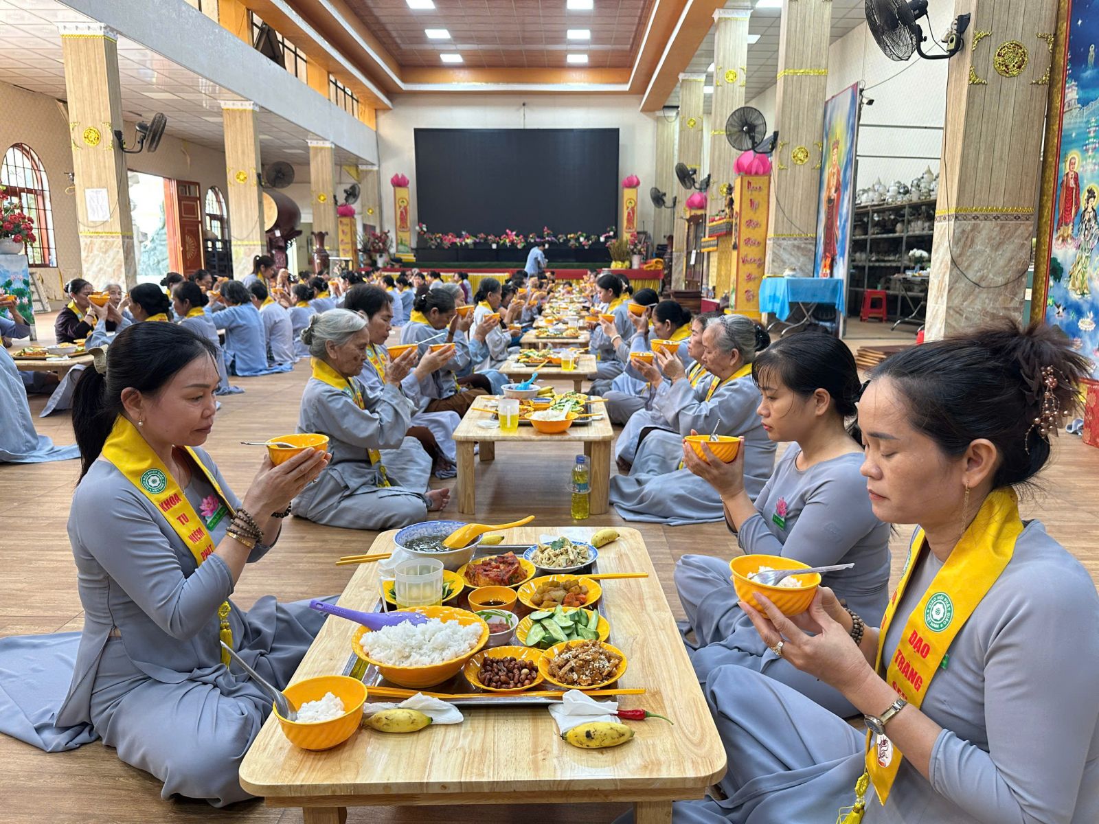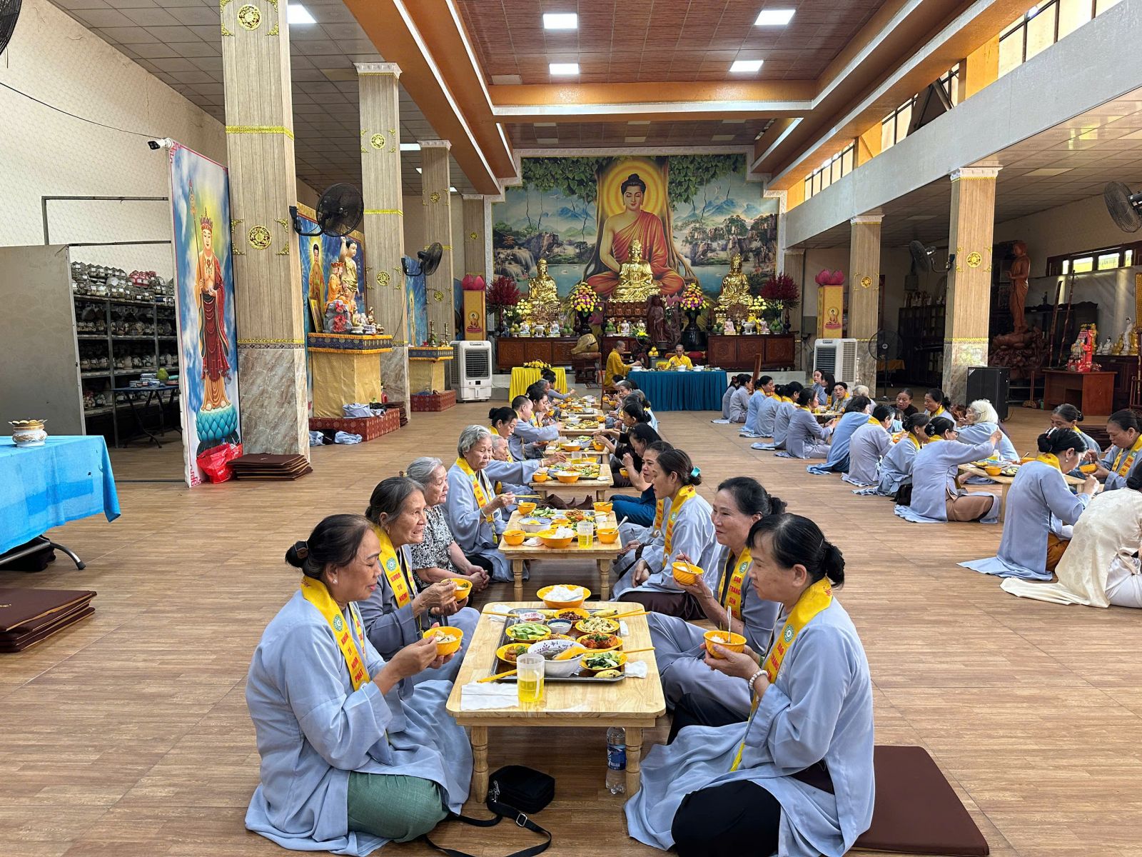 Chiều cùng ngày chư Tăng hướng dẫn trì tụng 21 biến đại bi, hướng dẫn đạo tràng niệm Phật kinh hành và trì tụng kinh Di Đà, mông sơn thí thực.