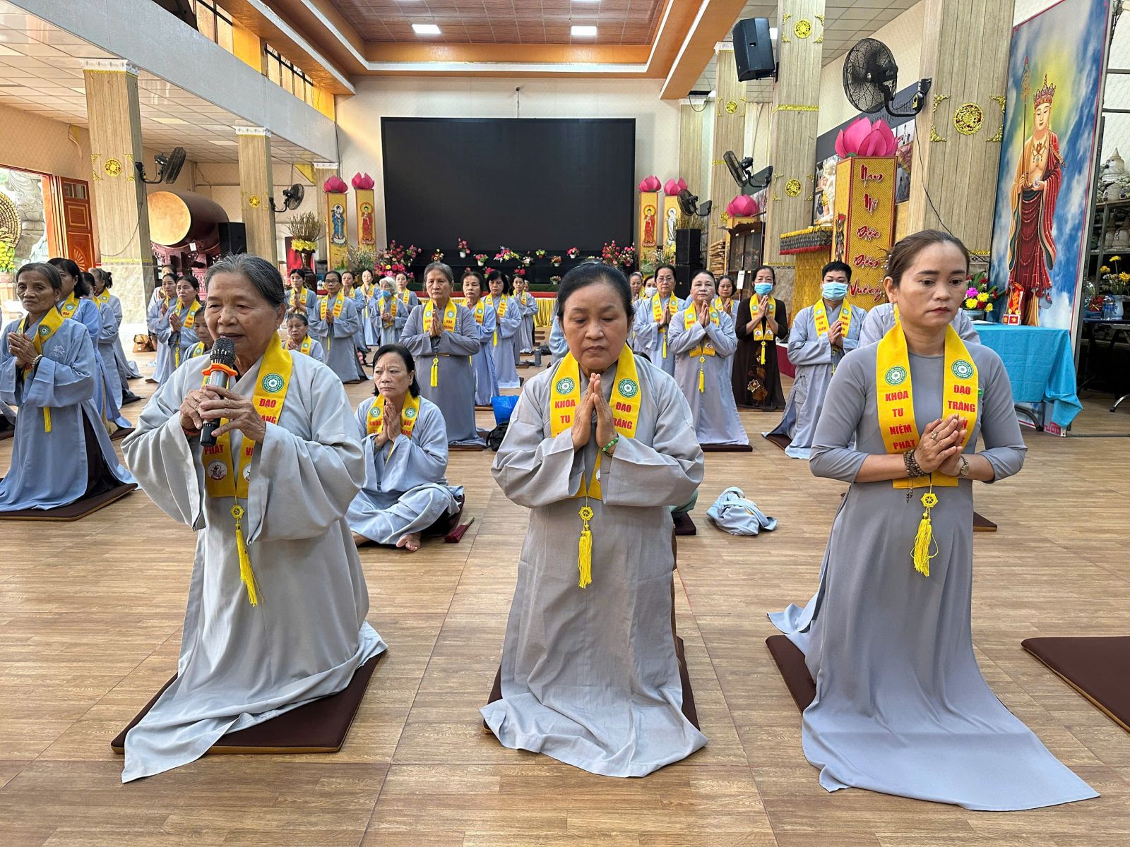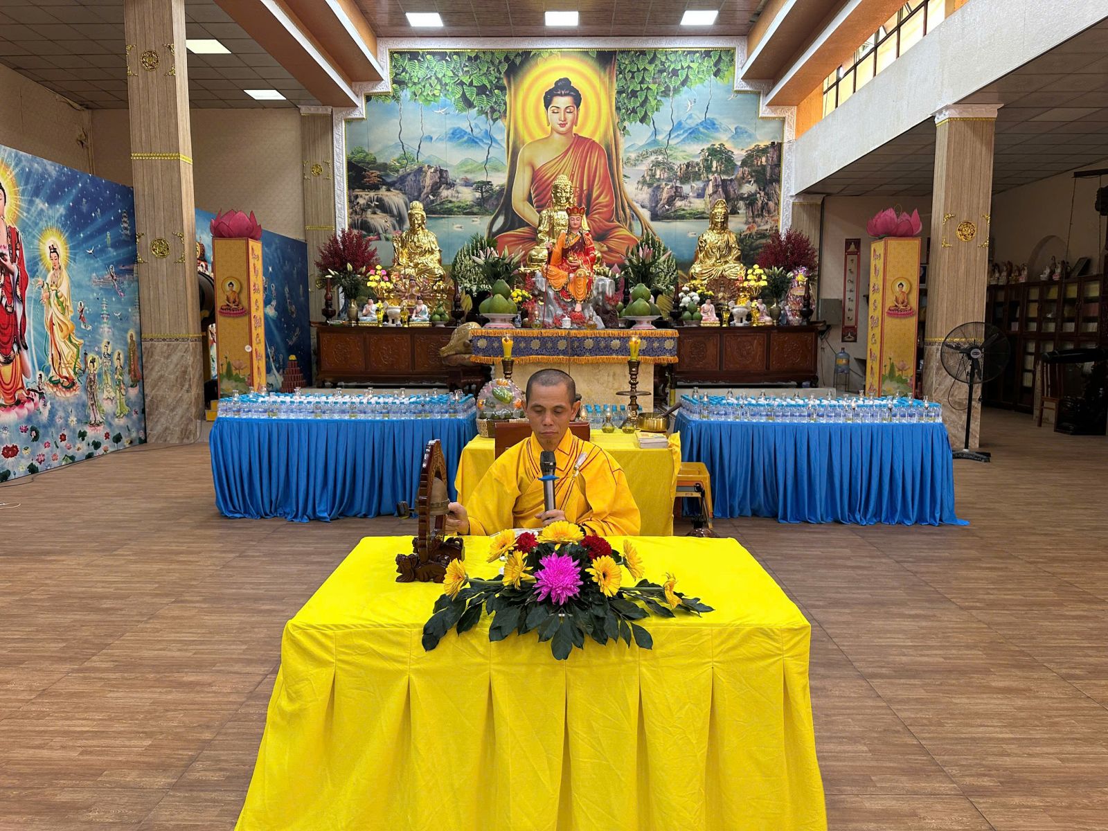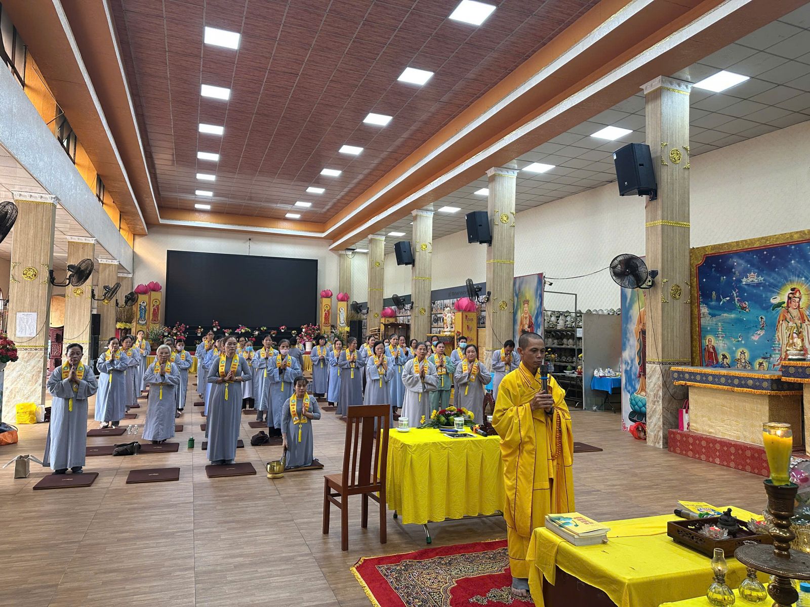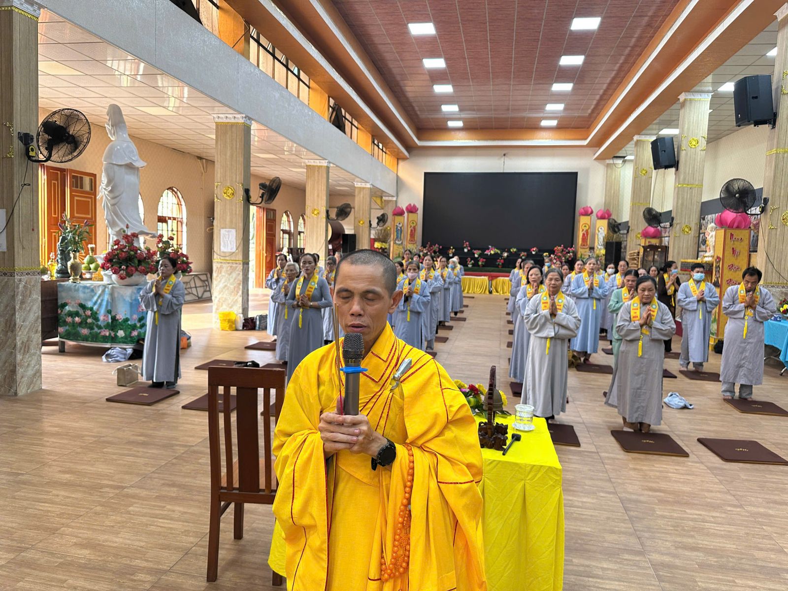 Đạo tràng trang nghiêm cung thỉnh chư tôn đức quang lâm niêm hương, Đại Đức Thích Minh Hiếu niêm hương bạch Phật và truyền Bát Quan Trai Giới.