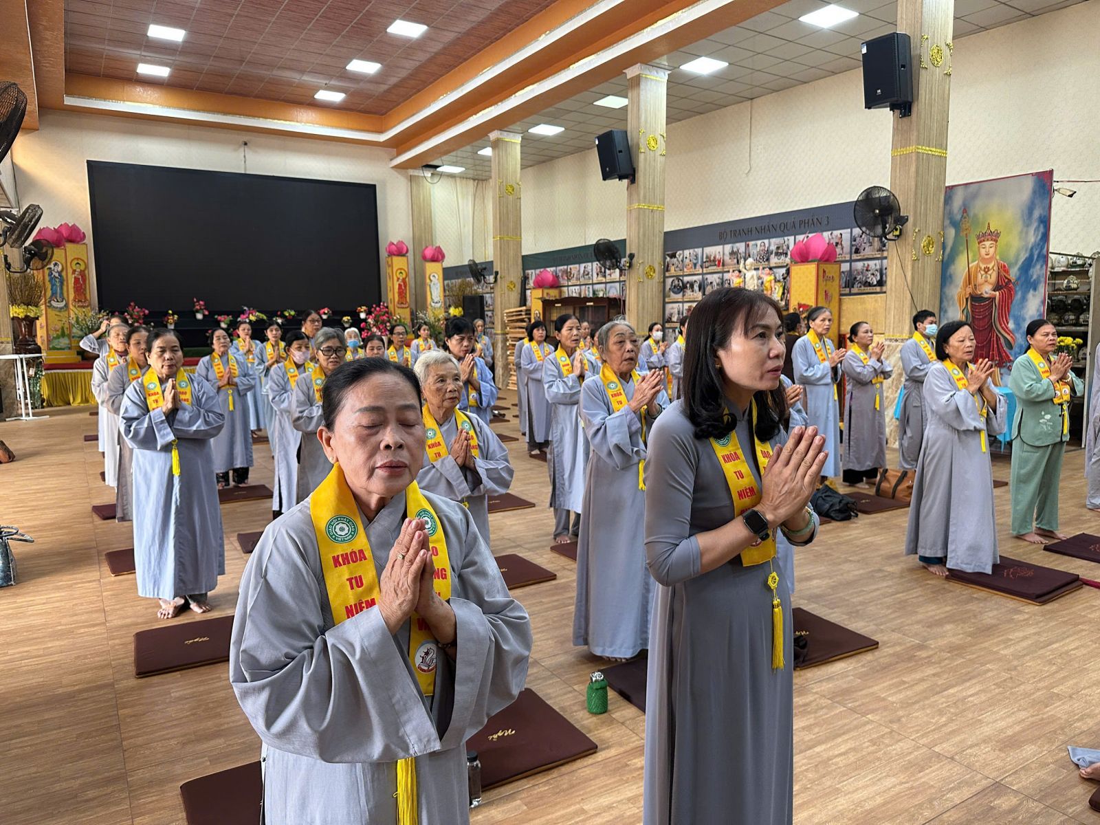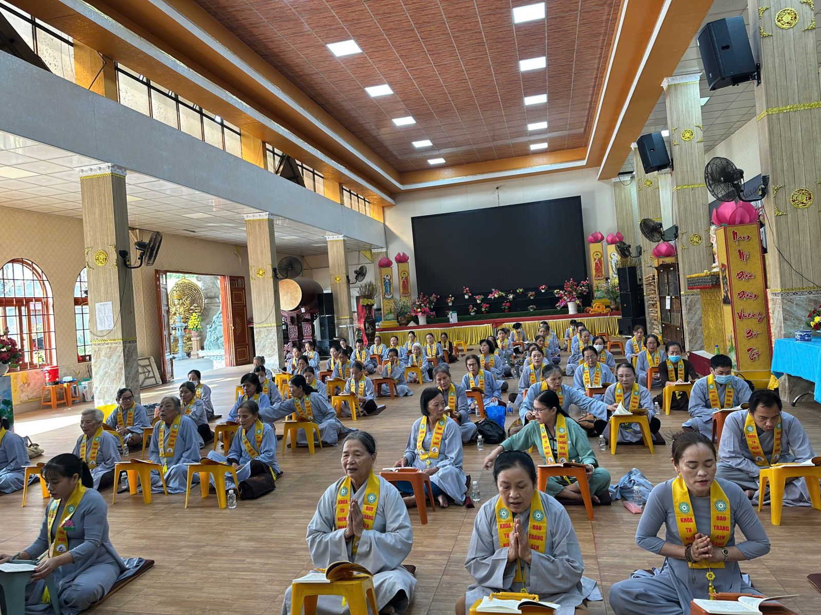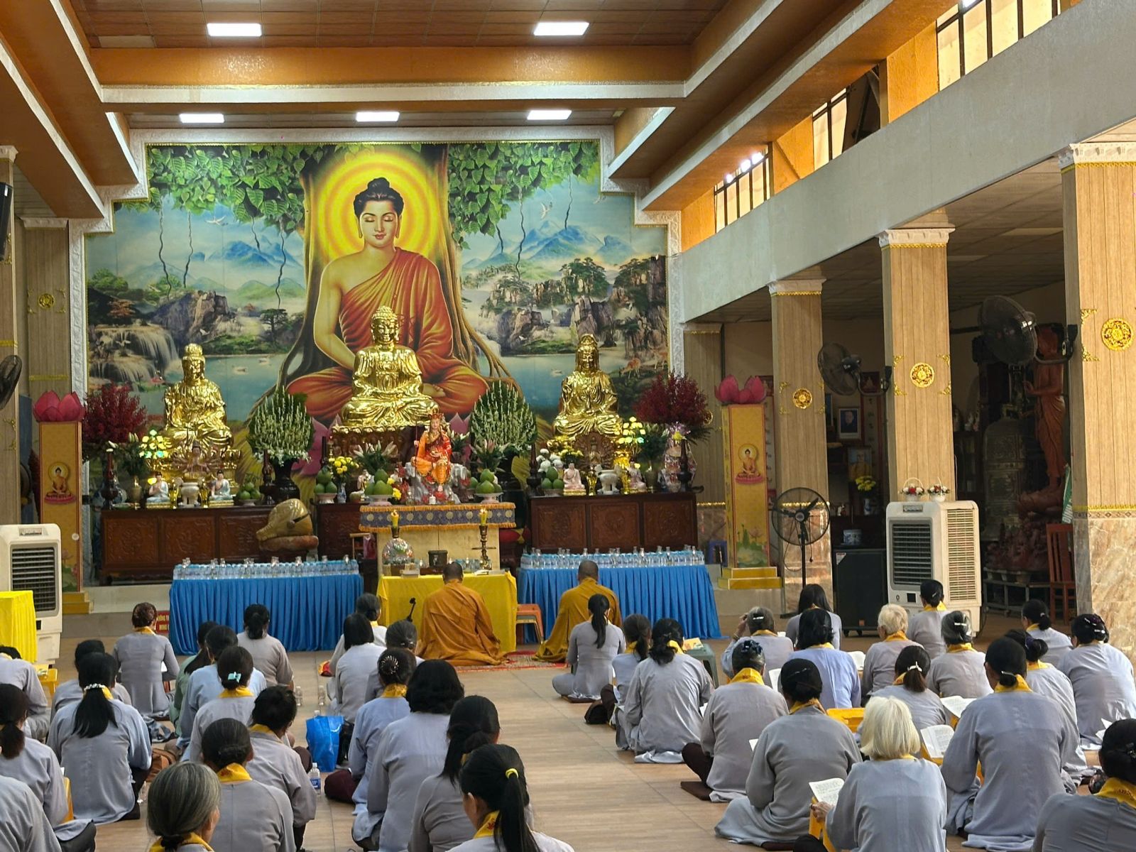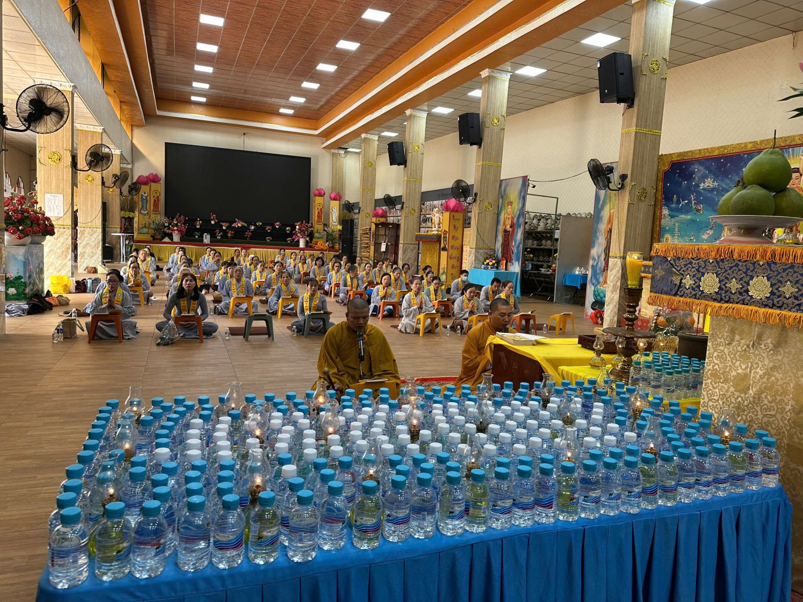 Đạo tràng trang nghiêm cung thỉnh chư tôn đức quang lâm niêm hương, Đại Đức Thích Minh Hiếu niêm hương bạch Phật và truyền Bát Quan Trai Giới.