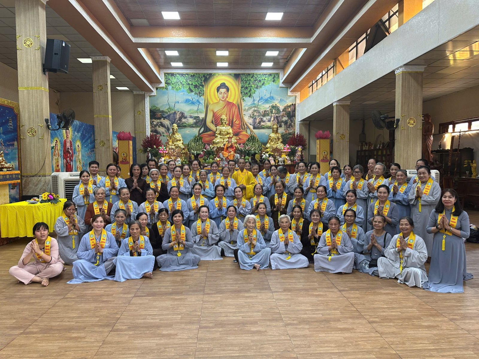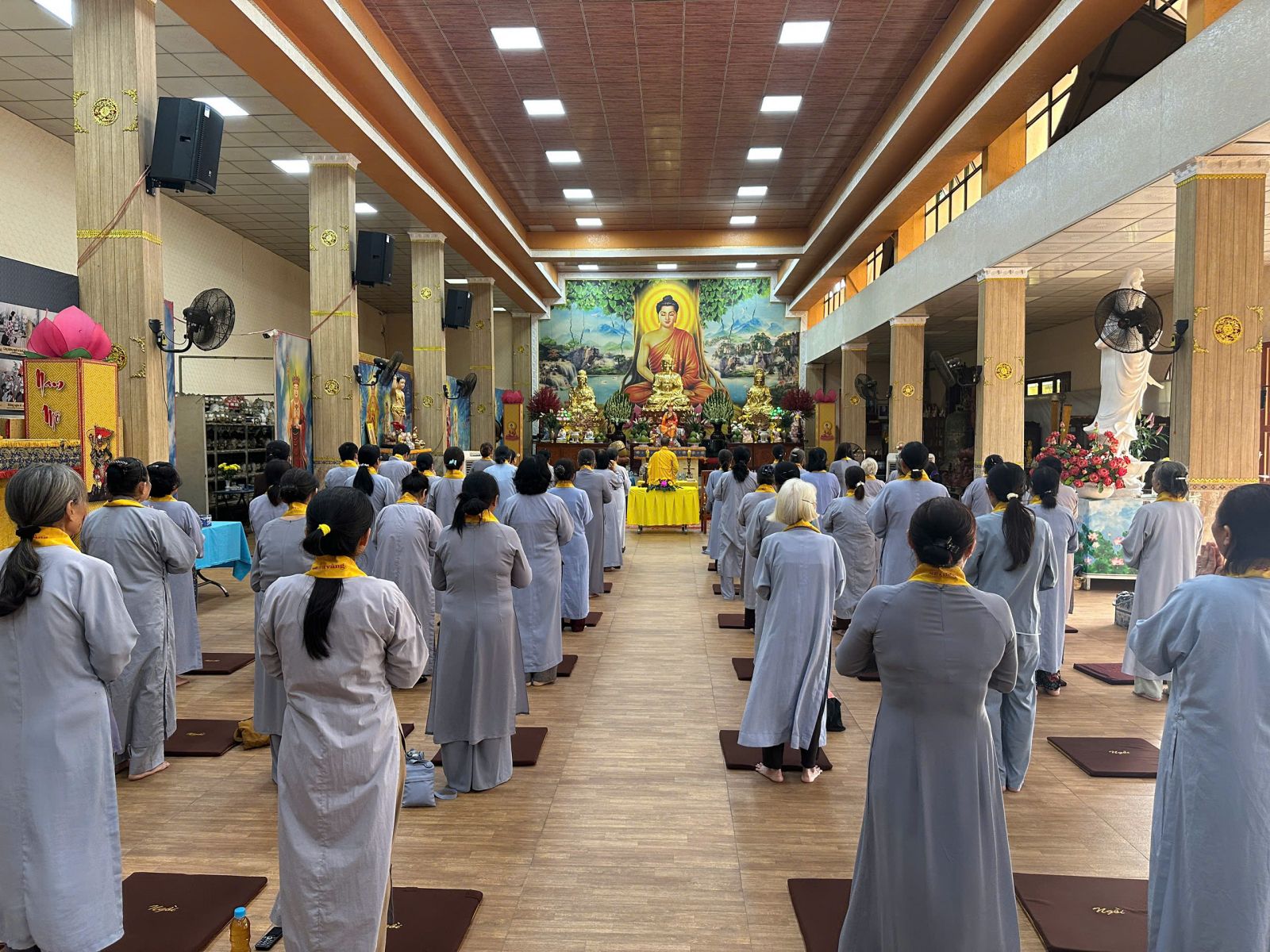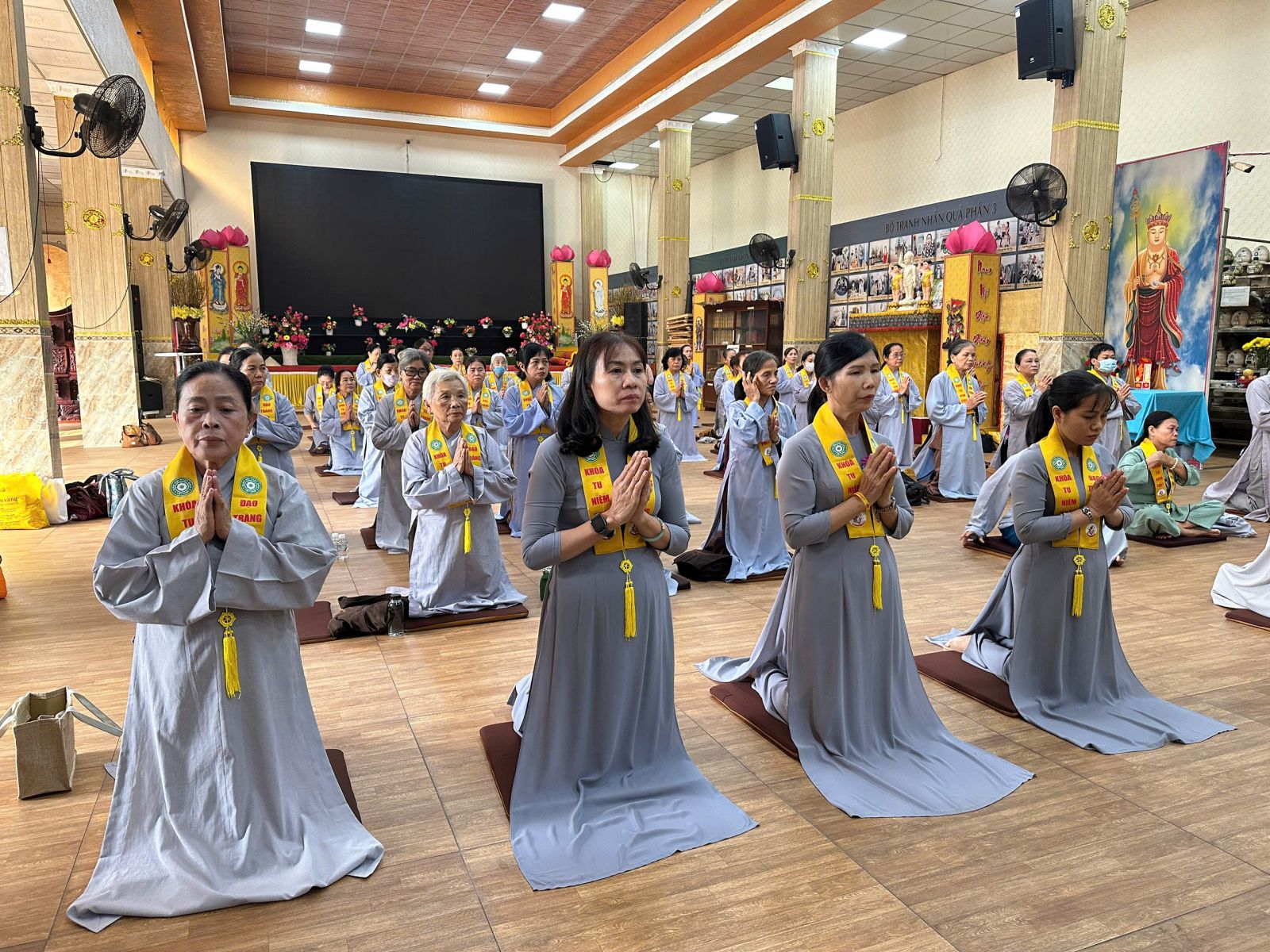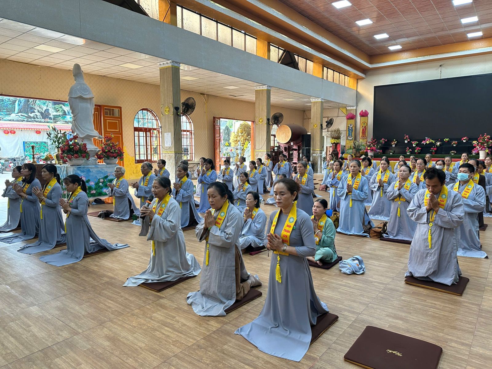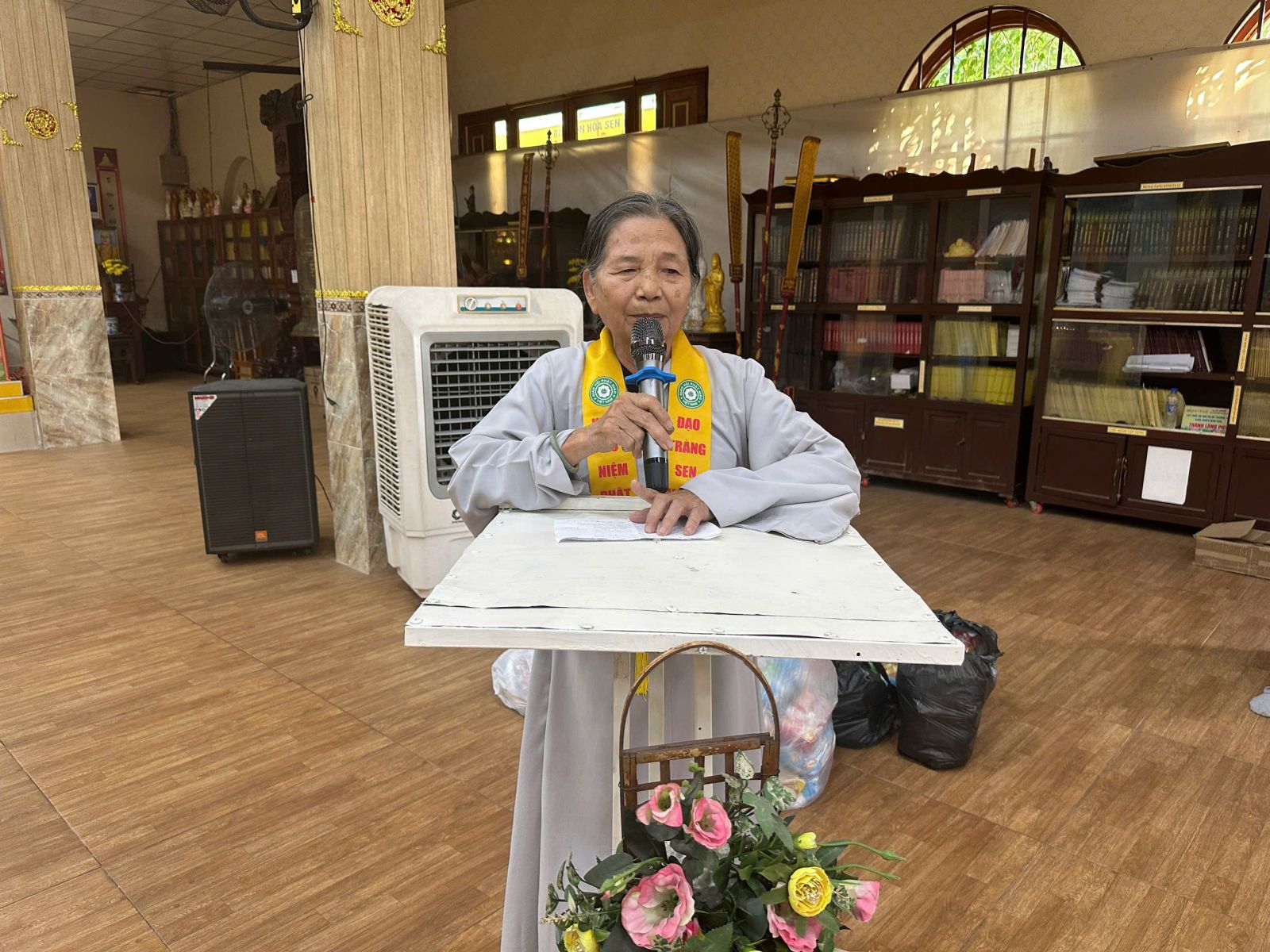 Đạo tràng trang nghiêm cung thỉnh chư tôn đức quang lâm niêm hương, Đại Đức Thích Minh Hiếu niêm hương bạch Phật và truyền Bát Quan Trai Giới.