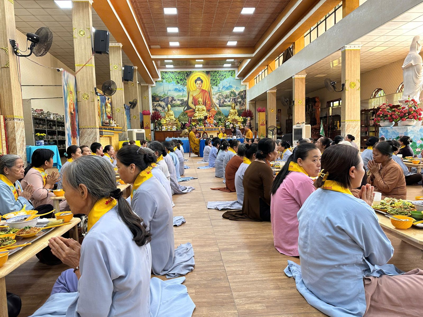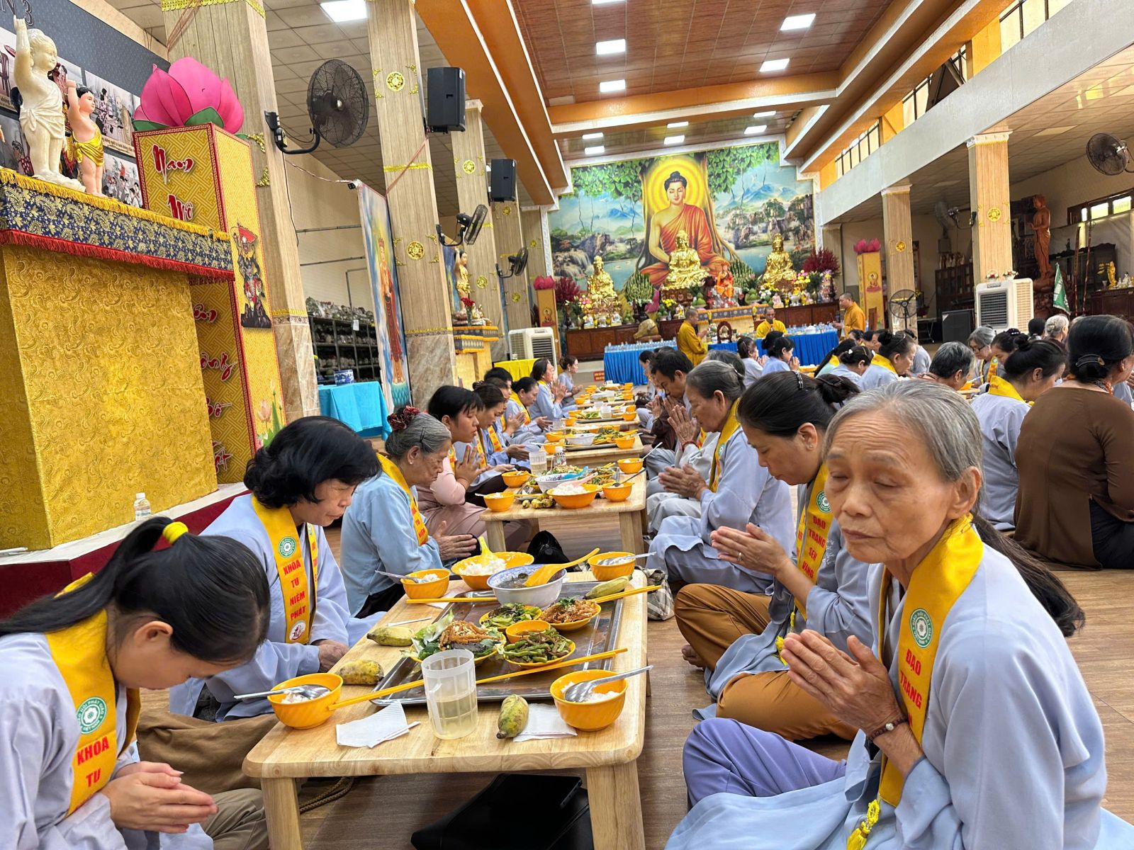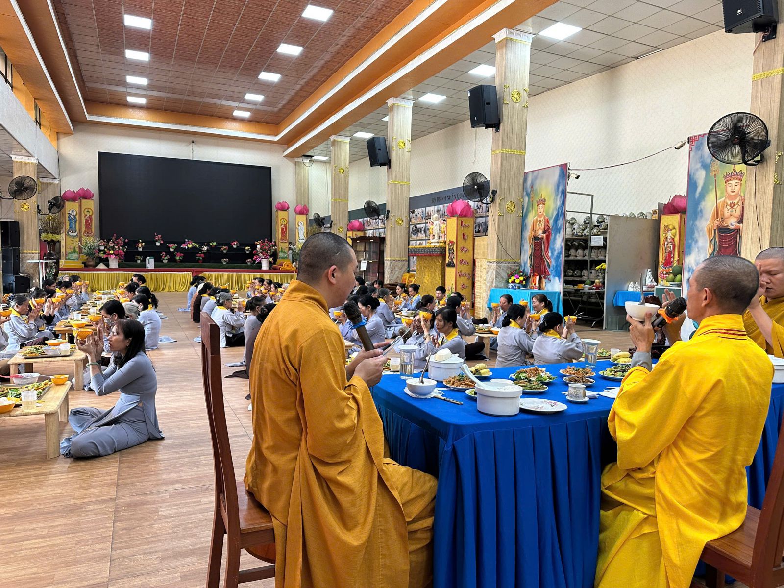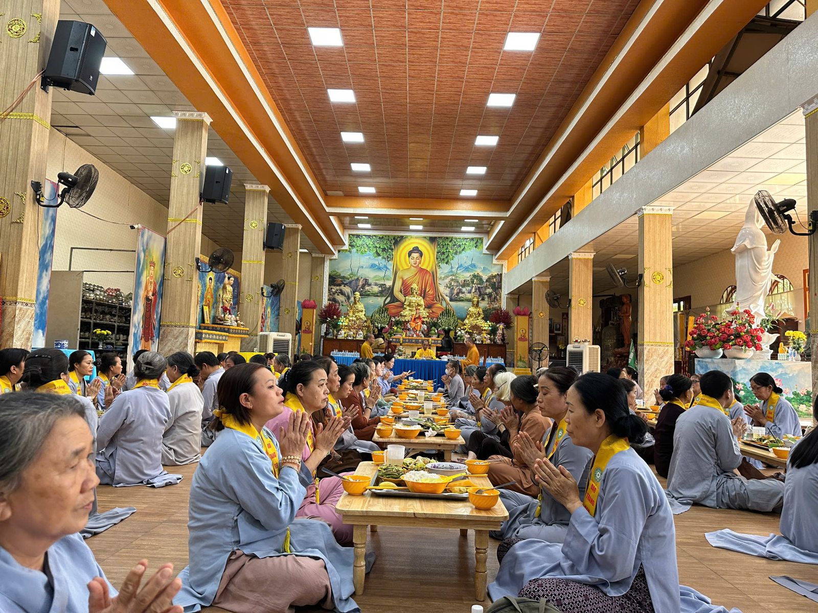 Đạo tràng trang nghiêm cung thỉnh chư tôn đức quang lâm niêm hương, Đại Đức Thích Minh Hiếu niêm hương bạch Phật và truyền Bát Quan Trai Giới.