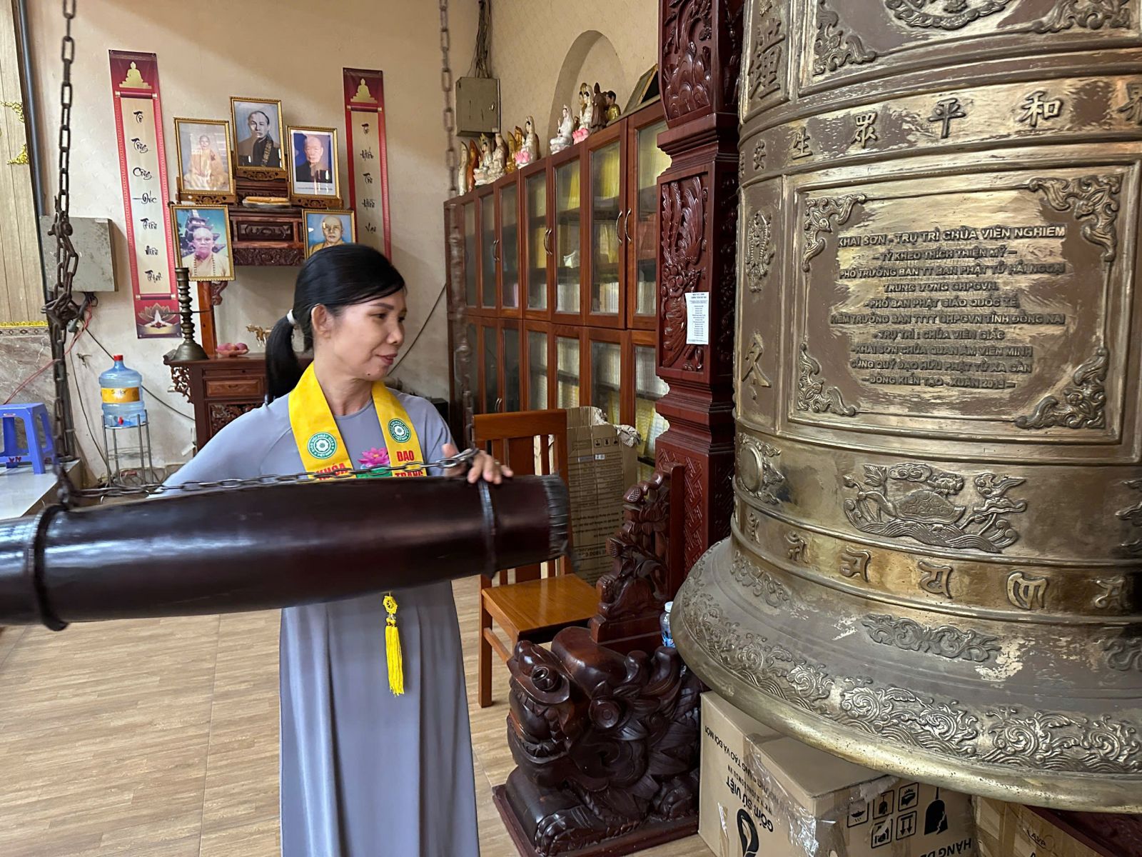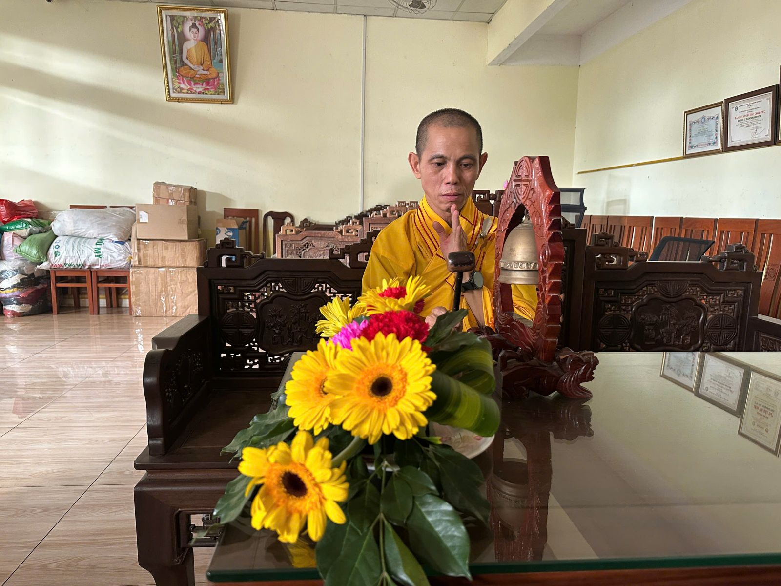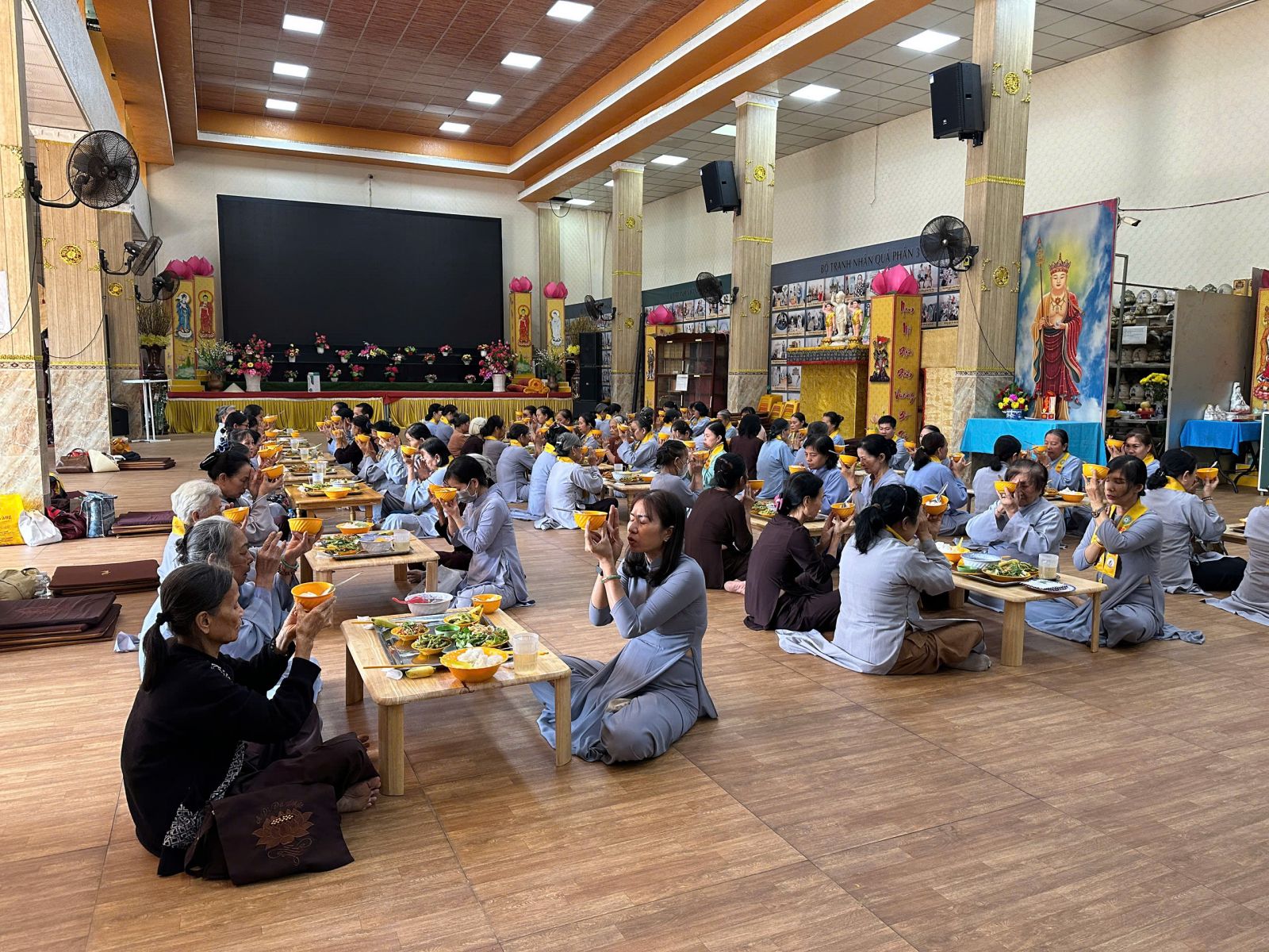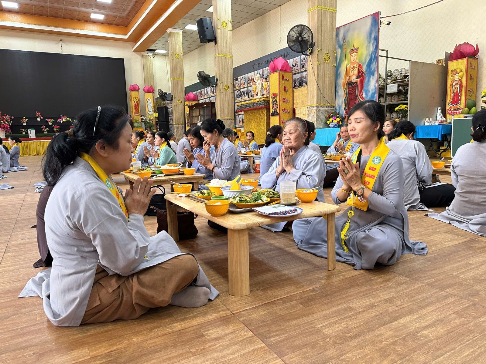 Đạo tràng trang nghiêm cung thỉnh chư tôn đức quang lâm niêm hương, Đại Đức Thích Minh Hiếu niêm hương bạch Phật và truyền Bát Quan Trai Giới.