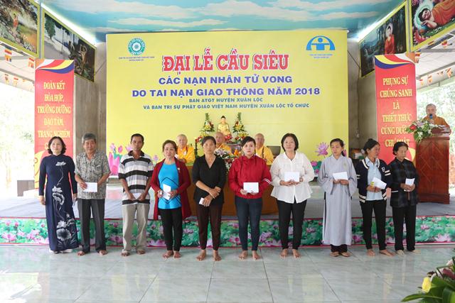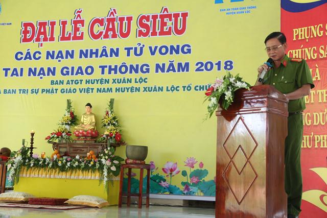 Thay mặt Ban Trị sự GHPGVN huyện Xuân Lộc, Thượng tọa Thích Tâm Minh phát biểu khai mạc, hoạt động tưởng niệm các nạn nhân tử vong vì tai nạn giao thông mà ngày thế giới và Việt Nam tổ chức là dịp mà chúng ta tưởng nhớ và bày tỏ niềm thương cảm xót xa vì người xấu số khi tham gia giao thông và để cùng chia sẻ nỗi đau của sự mất mất vì người thân của họ. Đây cũng là một cơ hội của mỗi chúng ta nhắc nhở chính mình, người thân và bạn bè về tầm quan trọng của việc tham gia giao thông, góp phần tạo ra một môi trường an toàn khi tham gia giao thông cho chính mình và cộng đồng xã hội. Mỗi người trong chúng ta phải biết nghiêm trì và chấp hành luật giao thông, giúp đỡ nhau khi tham gia giao thông, mỗi gia đình và nhà trường phải hướng dẫn con em từ khi còn bé về ý thức trách nhiệm bản thân khi tham gia giao thông.
