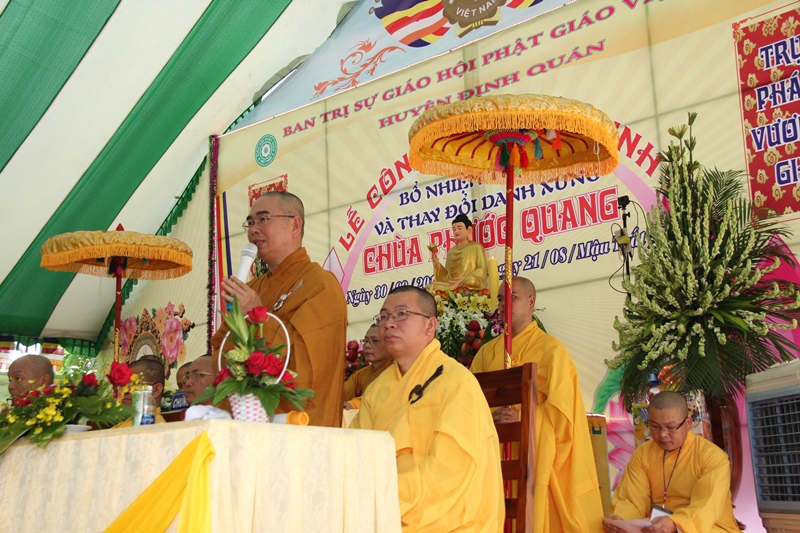 Quang lâm chứng minh và tham dự lễ có HT Thích Liêm Chính – UV Ban Hoằng Pháp GHPGVN, Phó Ban Trị sự, Trưởng ban Hoằng pháp GHPGVN T. Đồng Nai: TT Thích Chơn Trí – Phó BTS, Trưởng ban Pháp chế GHPGVN Tỉnh; HT Thích Tịnh Hải – Trụ trì Thiền viện Thái Hư T. Bà Rịa Vũng Tàu; ĐĐ Thích Quảng Hiền Phó BTS GHPGVN T. Đắc Nông: TT Thích Đồng Ngạn – Trưởng BTS GHPGVN H. Định Quán, Trưởng BTC Lễ: ĐĐ Thích Thiện Trí, Phó Thư ký BTS GHPGVN Tỉnh; TT Thích Nhựt Nhã – Cố vấn BTS GHPGVN H. Thống Nhất cùng Chư tôn đức Tăng, Ni các tự viện trong và ngoài Huyện.