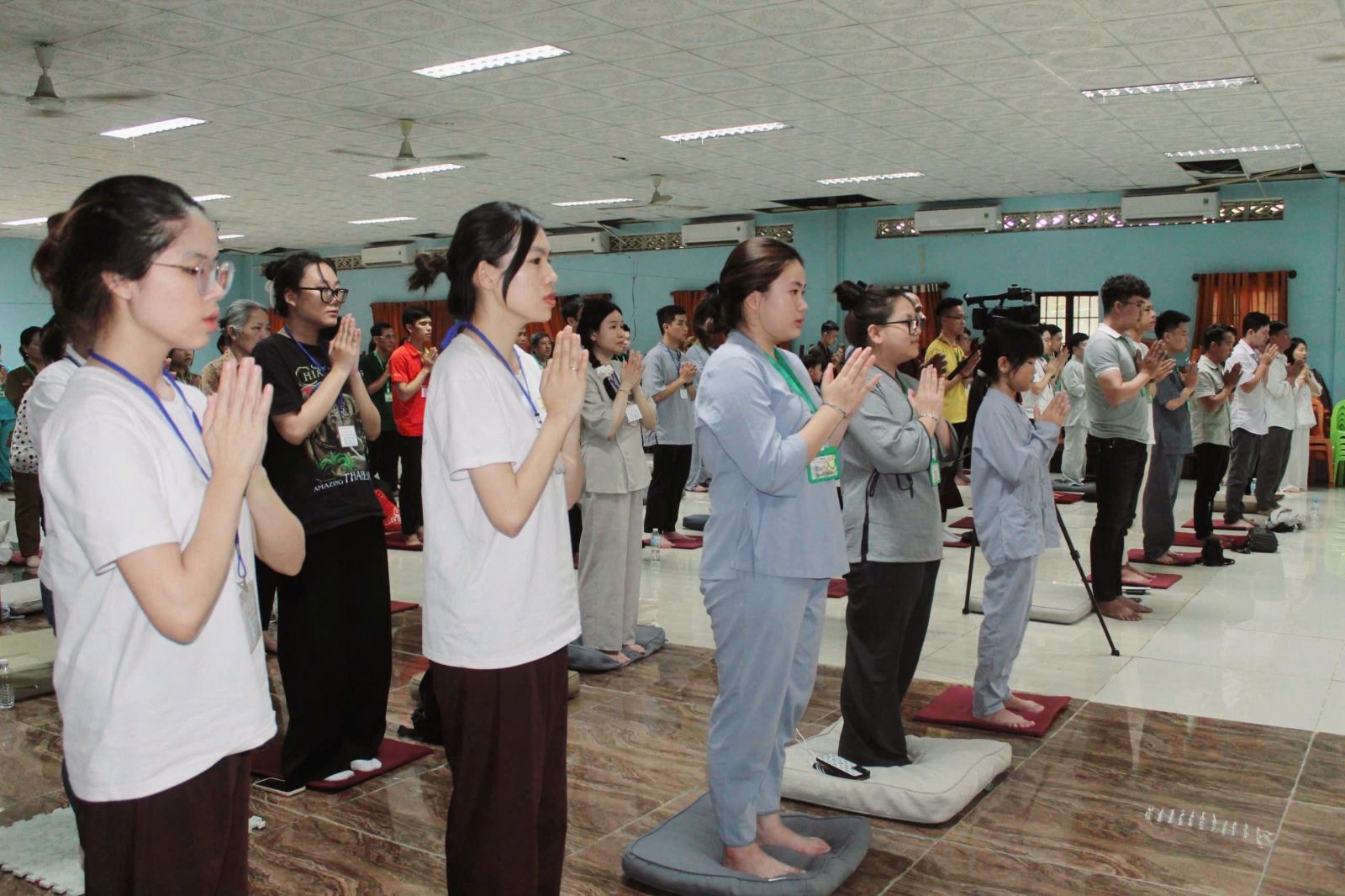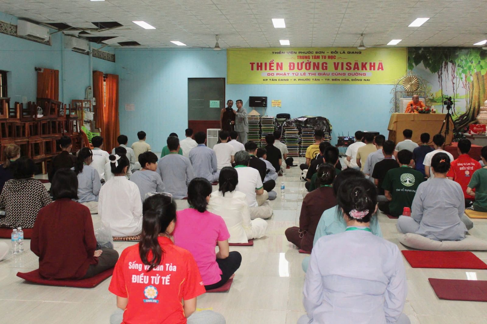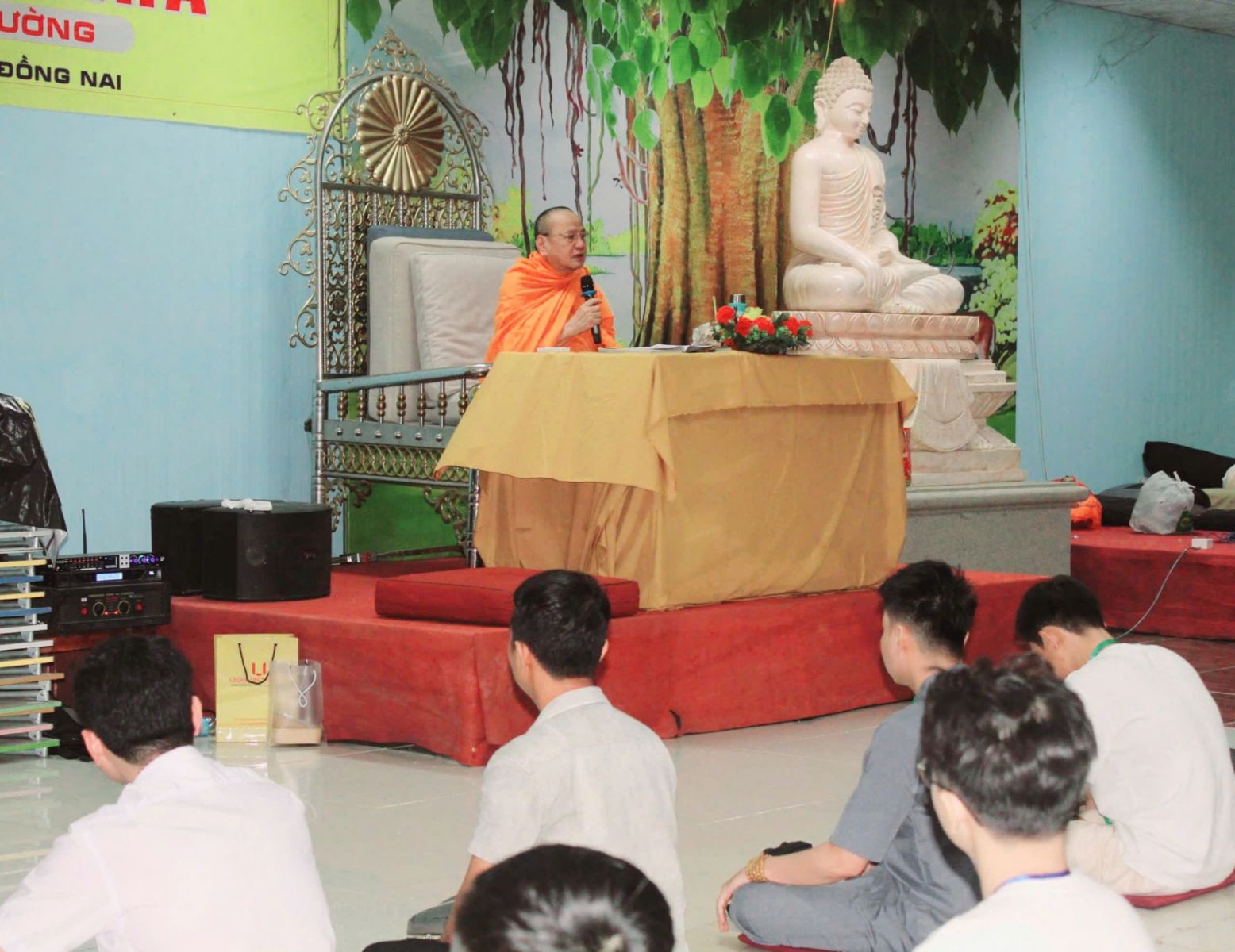 Hòa thượng chào mừng tân khóa sinh tham dự khóa tu. Ngài chia sẻ sâu sắc, xét về mặt thực tế, ai cũng có mong cầu hạnh phúc cho dù là nhỏ bé nhất hoặc rộng lớn. Được đi đến chùa là có phước, tìm đúng chùa để tu, tìm đúng pháp để học là hạnh phúc. Cuộc sống vô vàn nỗi khổ niềm đau, trong khi hạnh phúc đối nghịch, chỉ có chính bản thân mình nỗ lực thực hành để có bình an hạnh phúc ngay trong hiện tại.