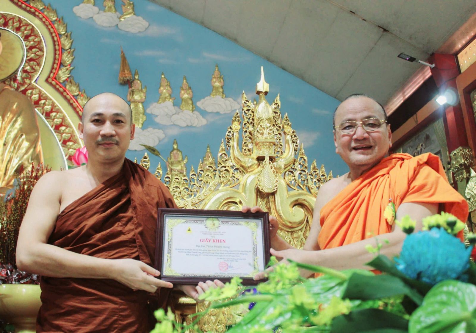 10h30: Chánh điện: Đại diện chính quyền phường Phước Tân đến chúc mừng đại lễ Vu Lan - PL 2568. Nhân dịp này, hòa thượng trao tặng bằng khen tới 4 vị Tăng đạt giải nhất nhì ba khuyến khích tham dự hội thi diễn giảng Phật pháp trong mùa an cư kiết hạ.