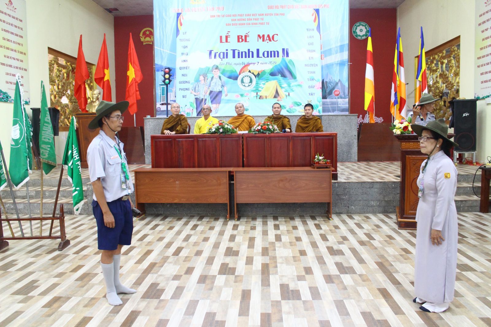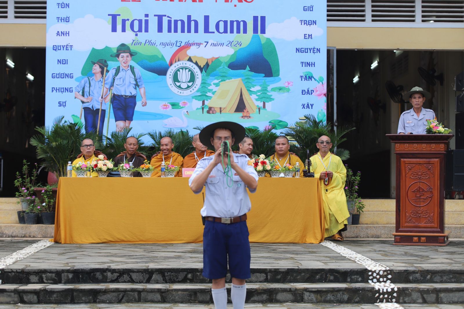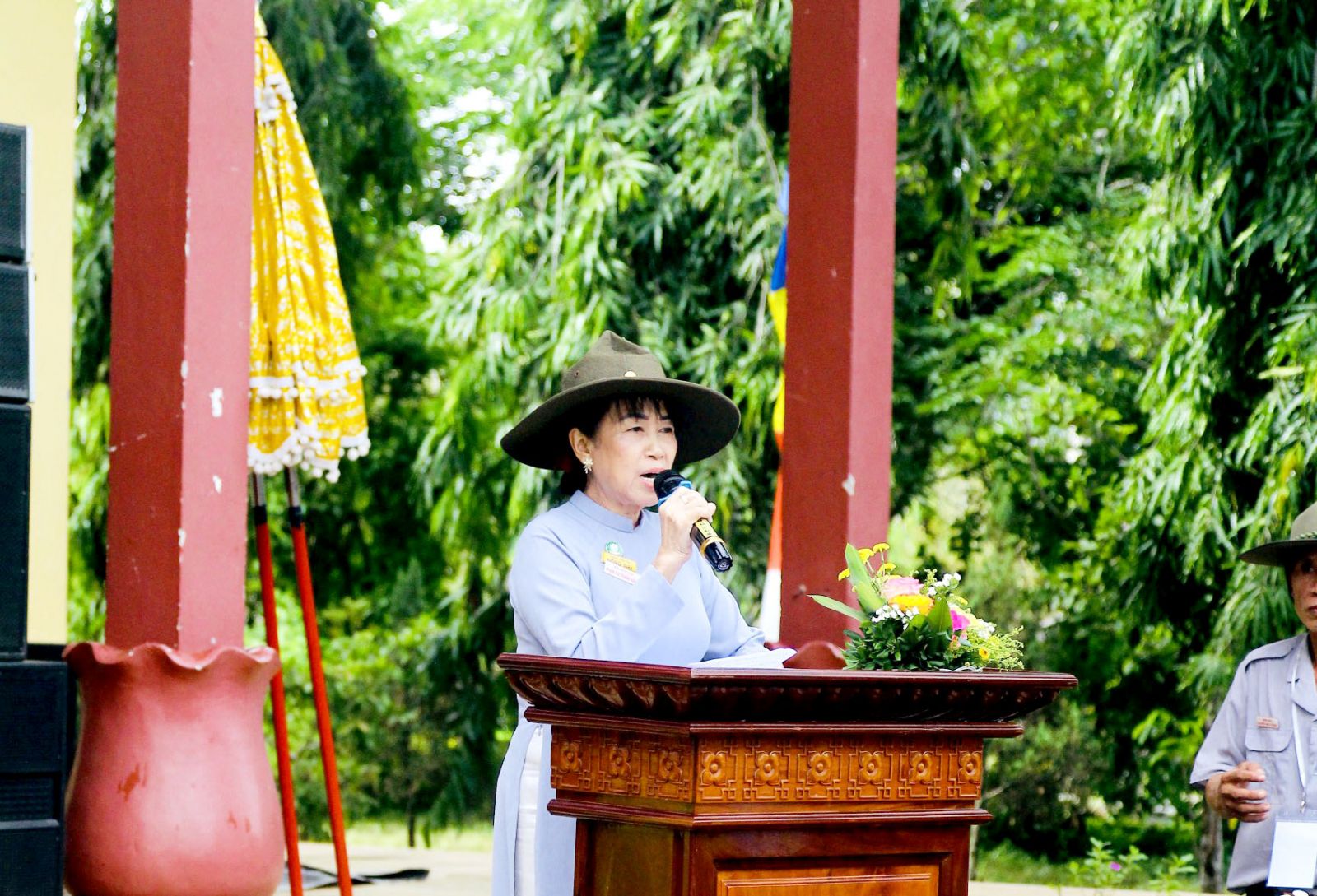 Phát biểu tại buổi khai mạc trại, Huynh trưởng cấp Tấn Nguyên Tâm Phạm Thị Thanh Hằng – Trưởng Phân ban Gia đình Phật tử tỉnh Đồng Nai luôn tin tưởng và mong muốn các đơn vị Gia đình Phật tử huyện Tân Phú, cùng toàn thể Huynh trưởng, Đoàn sinh trong toàn huyện đoàn kết, nỗ lực không ngừng, luôn tìm tòi, đổi mới trong sinh hoạt và tu học, đặc biệt là ngày càng thu nhận thêm nhiều đoàn sinh mới, các đơn vị không những phát triển về số lượng mà còn nâng cao chất lượng sinh hoạt và tu học trong thời gian tới.
