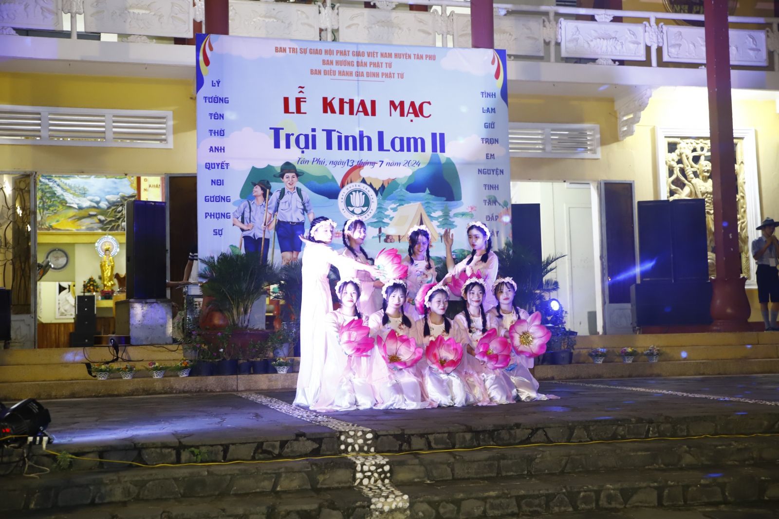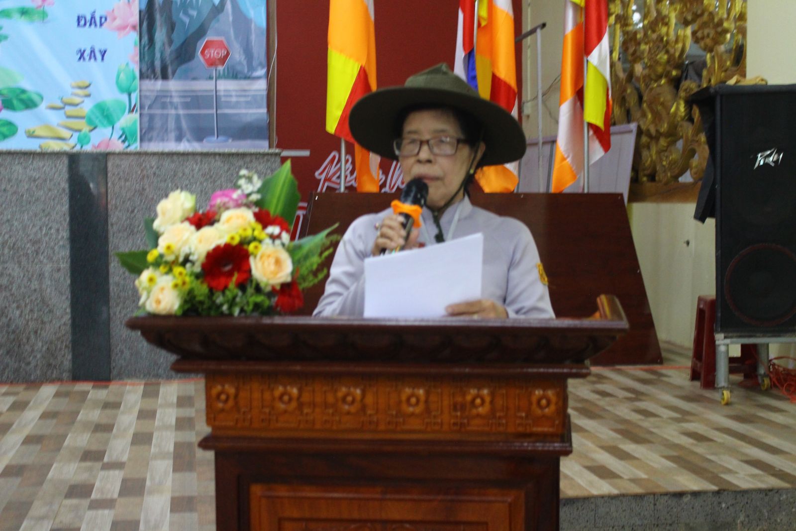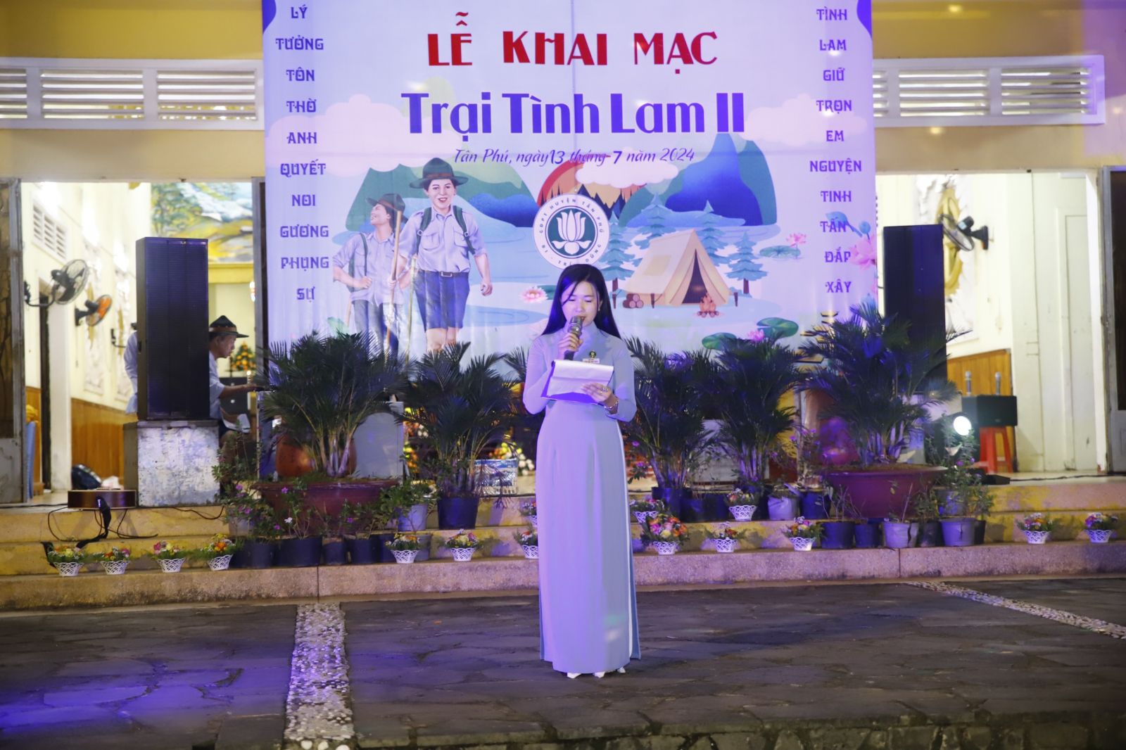 Phát biểu tại buổi khai mạc trại, Huynh trưởng cấp Tấn Nguyên Tâm Phạm Thị Thanh Hằng – Trưởng Phân ban Gia đình Phật tử tỉnh Đồng Nai luôn tin tưởng và mong muốn các đơn vị Gia đình Phật tử huyện Tân Phú, cùng toàn thể Huynh trưởng, Đoàn sinh trong toàn huyện đoàn kết, nỗ lực không ngừng, luôn tìm tòi, đổi mới trong sinh hoạt và tu học, đặc biệt là ngày càng thu nhận thêm nhiều đoàn sinh mới, các đơn vị không những phát triển về số lượng mà còn nâng cao chất lượng sinh hoạt và tu học trong thời gian tới.