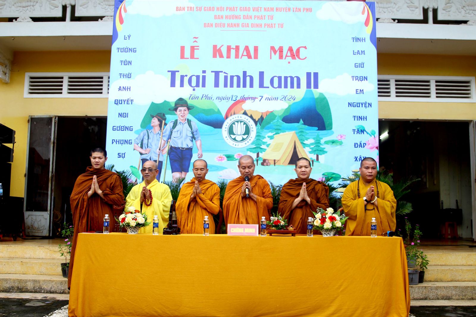 Quang lâm chứng minh và ban đạo từ có Hòa thượng Đạo hiệu thích Pháp Cần - Ủy viên Ban Trị sự GHPGVN tỉnh Đồng Nai, Trưởng ban Trị sự huyện Tân Phú, Trụ trì chùa Linh Phú; Đại đức Thích Pháp Lợi - Ủy viên Ban Trị sự GHPGVN tỉnh Đồng Nai, Phó trưởng Ban Trị sự kiêm chánh thư ký Ban Trị sự huyện Tân Phú; Thượng tọa Thích Quảng Giải - Ủy viên Ban Hướng dẫn Phật tử tỉnh Đồng Nai, Trưởng Ban Hướng dẫn Phật tử huyện Tân Phú; Đại đức Thích Nguyên Trung – Phó trưởng Ban Trị sự, Trưởng ban Nghi lễ huyện Tân Phú; Đại đức Thích Minh Thủy – Phó Thư ký, phó văn phòng Ban Trị sự huyện Tân Phú; Đại đức Thích Pháp Vinh – Trưởng Ban Thông tin – Truyền thông GHPGVN huyện Tân Phú.