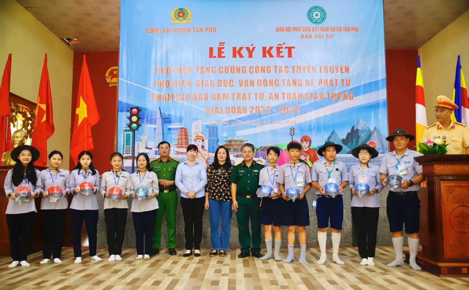 Cũng trong kỳ trại này Ban Trị sự Giáo hội Phật giáo Việt Nam huyện Tân Phú đã phối hợp với Công an huyện Tân Phú tổ chức tuyên truyền hướng dẫn Phật tử tham gia bảo đảm trật tự an toàn giao thông và tặng nón bảo hiểm cho các em có hoàn cảnh khó khăn.