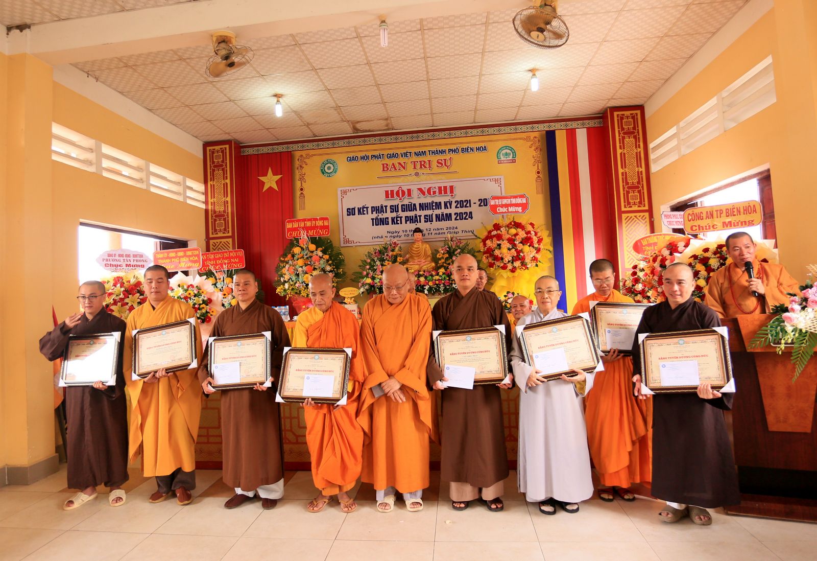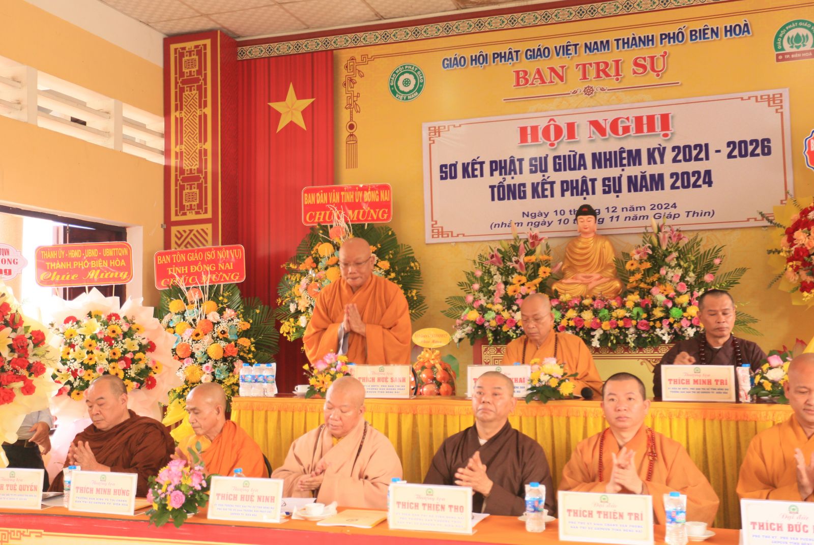 Phát biểu khai mạc hội nghị, Thượng tọa Thích Minh Trí – Trưởng ban Ban Trị sự GHPGVN thành phố Biên Hòa đã nêu bật một số thành tựu Phật giáo Biên Hòa đạt được trong nữa đầu nhiệm kỳ. Qua đó, được sự lãnh đạo của Ban Trị sự tỉnh, sự quan tâm hỗ trợ của chính quyền các cấp, Ban Trị sự GHPGVN thành phố Biên Hòa đã đạt được những kết quả nhất định, trong đó công tác vận động tịnh tài tịnh của hỗ trợ cho những hoàn cảnh khó khăn vì thiên tai bão lũ, những gia đình khó khăn đang sinh sống tại thành phố Biên Hòa. Nổi bật nhất là nhận sự bàn giao và xây dựng Chùa Đức Quang trở thành trụ sở độc lập chính thức của Ban Trị sự GHPGVN thành phố Biên Hòa.