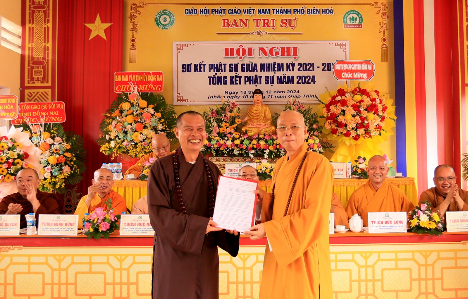 Quang lâm tham dự hội nghị và chứng minh có Hòa thượng Thích Phước Tú – Chứng minh Ban Trị sự GHPGVN tỉnh Đồng Nai và thành phố Biên Hòa; Thượng tọa Thích Huệ Khai - Ủy viên thường trực Hội đồng Trị sự, Trưởng ban Ban Trị sự GHPGVN tỉnh; Thượng tọa Thích Huệ Sanh - Ủy viên Hội đồng Trị sự, Phó Ban Trị sự kiêm Trưởng ban Hoằng pháp tỉnh; Đại đức Thích Thiện Trí – Phó Thư ký kiêm Chánh Văn phòng Ban Trị sự tỉnh, Đại đức Thích Đạt Ma Đức Long – Trưởng ban Văn hóa kiêm Phó Thư ký, Phó Văn phòng Ban Trị sự tỉnh.