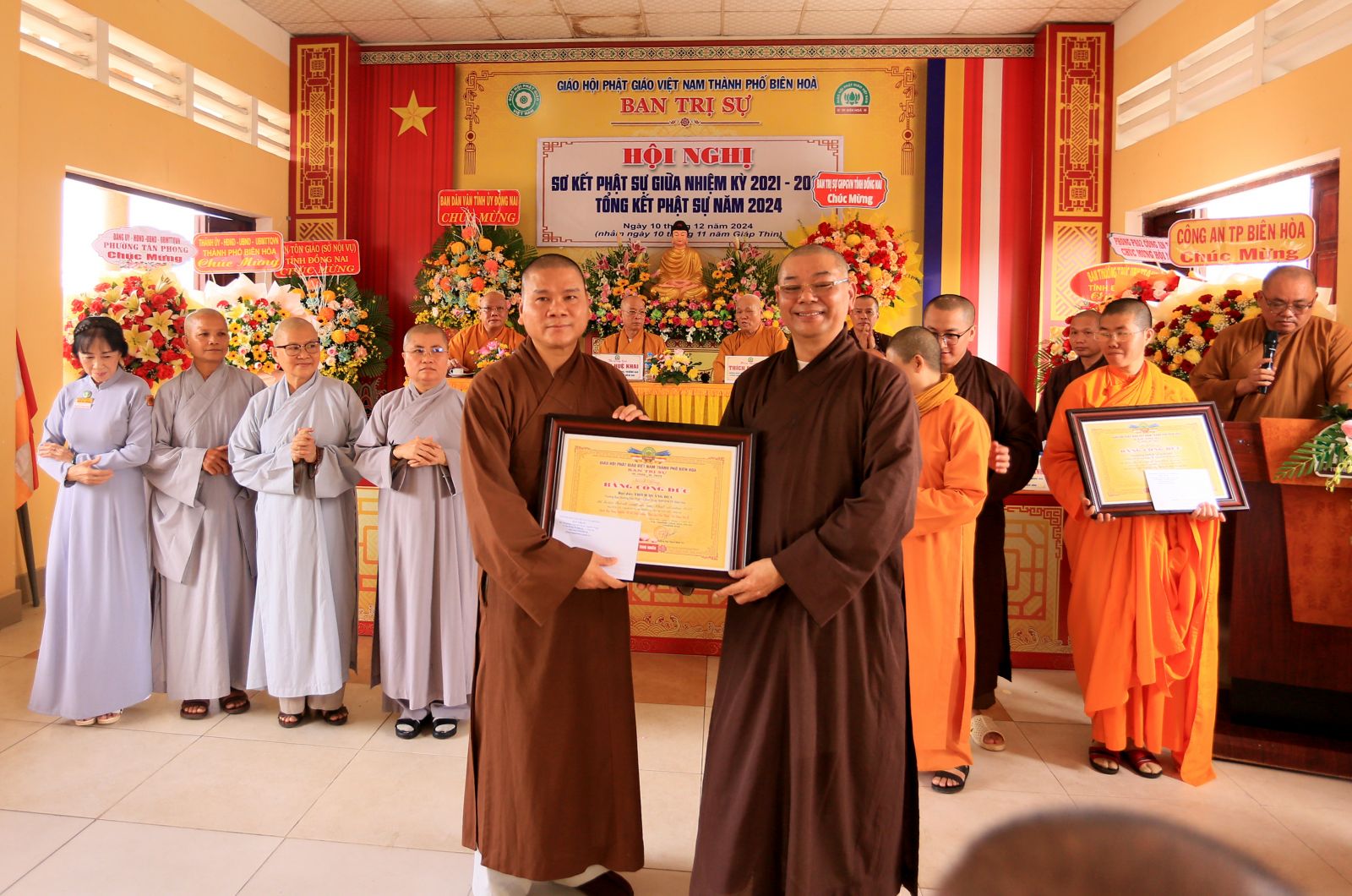 Về phía Ban Trị sự GHPGVN thành phố Biên Hòa có Thượng tọa Thích Minh Trí - Ủy viên dự khuyết Hội đồng Trị sự, Phó Trưởng ban Trị sự tỉnh, Trưởng Ban Trị sự thành phố Biên Hòa; Thượng tọa Thích Thiện Thọ - Ủy viên Ban Trị sự tỉnh, Phó ban Thường trực Ban Trị sự thành phố; Thượng tọa Thích Huệ Ninh - Ủy viên Thường trực Ban Trị sự tỉnh, Phó ban Trị sự kiêm Trưởng ban Pháp chế thành phố; Thượng tọa Thích Tuệ Quyền - Trưởng ban Phật giáo Quốc tế tỉnh, Phó ban Trị sự thành phố; Thượng tọa Thích Quảng Thành - Ủy viên Ban Trị sự tỉnh, Chánh Thư ký Ban Trị sự GHPGVN Thành phố Biên Hòa; Thượng tọa Thích Minh Hưng – Trưởng Ban Kinh tế - Tài chính Ban Trị sự thành phố; Đại đức Thích Quảng Duy – Trưởng Ban Hướng dẫn Phật tử Ban Trị sự thành phố; Ni trưởng Thích nữ Như Dung - Phó Ban Trị sự kiêm Trưởng phân Ban Ni giới tỉnh, Phó ban Trị sự kiêm Trưởng phân Ban Ni giới thành phố, chư tôn đức trưởng các ban chuyên trách, ủy viên Ban Trị sự và chư tôn đức viện chủ, trụ trì các tự viện trực thuộc.
