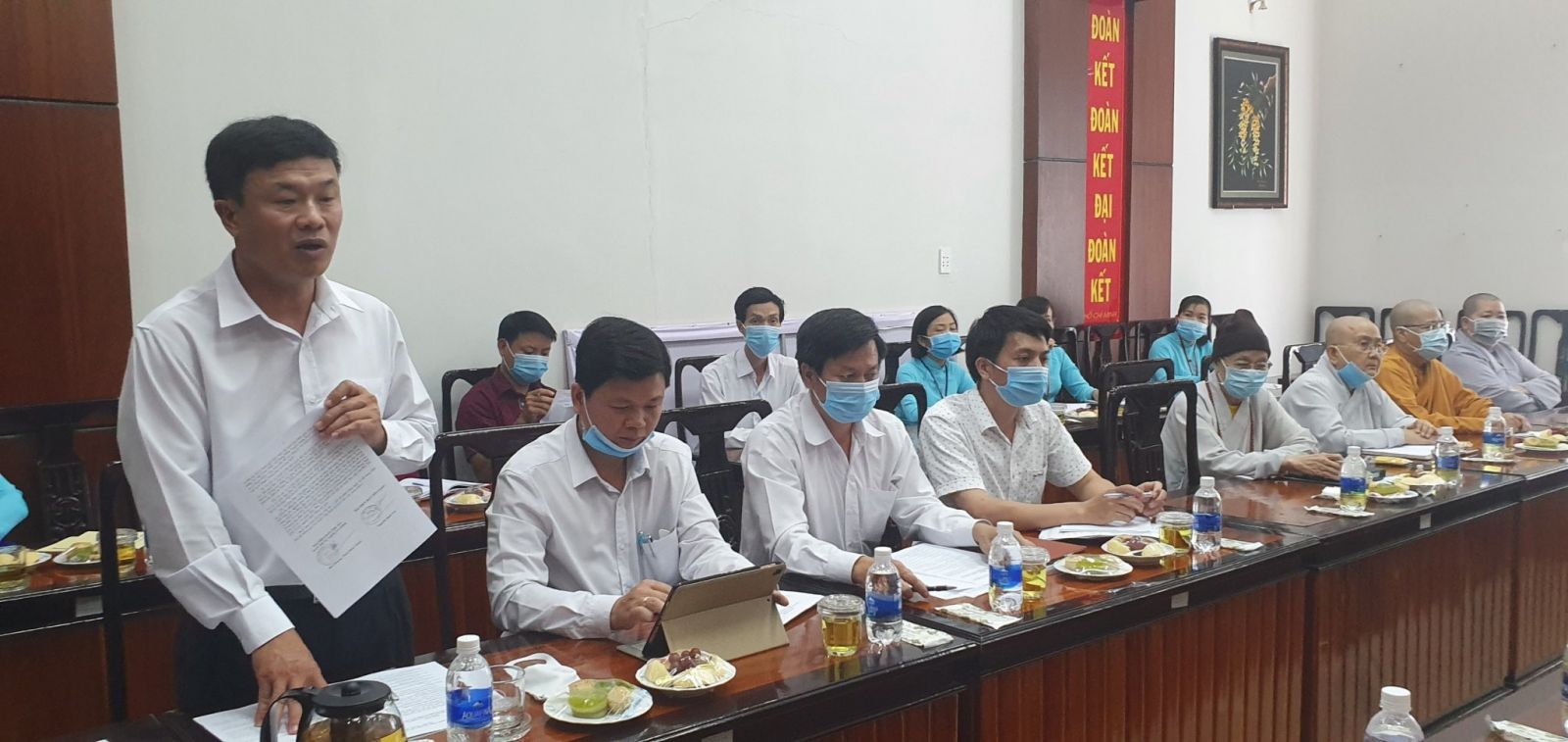 Tại buổi làm việc, ông Nguyễn Quốc Vũ - trưởng ban Tôn giáo Dân tộc tỉnh Đồng Nai đã thay mặt cho lãnh đạo các ban ngành trực thuộc UBND tỉnh Đồng Nai đã gửi lời chào mừng và vấn an sức khỏe đến Hòa thượng trưởng BTS cũng như chư Tăng Ni trong ban thường trực BTS GHPGVN tỉnh Đồng Nai nhân mùa An cư Kiết hạ. Đồng thời, ông đã đánh giá cao về sự đóng góp của thường trực BTS Giáo hội tỉnh nhà nói riêng và chư Tăng, Ni, Phật tử tỉnh nhà nói chung trong việc xây dựng tổ chức giáo hội vững mạnh cũng như tinh thần phòng chống dịch bệnh Covid-19 vừa qua. Qua đó, ông nêu lên một số Phật sự còn tồn đọng và kiến nghị thường trực BTS GHPGVN tỉnh Đồng Nai phối hợp với ban Tôn giáo tỉnh nhà nhanh chóng giải quyết, hoàn thiện các công tác cũng như động viên các ban ngành trực thuộc của BTS đẩy mạnh hơn nữa các các công tác Phật sự từng ngành để đẩy mạnh hiệu quả công tác Phật sự của Giáo hội.