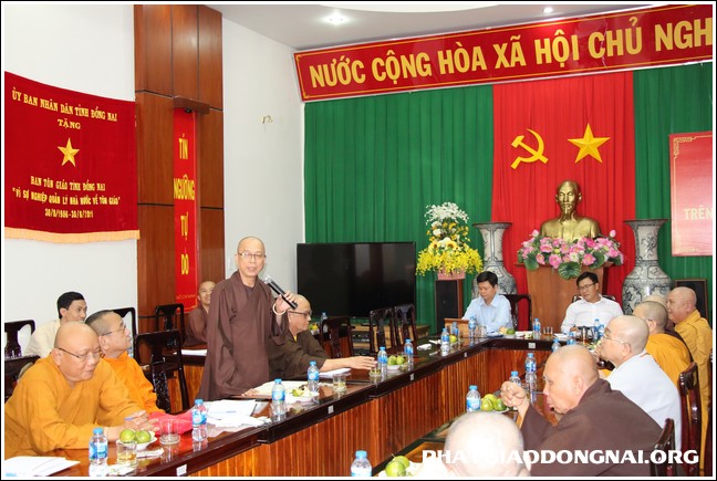 Sau lời phát biểu thăm hỏi và chia sẽ những tâm huyết của ông Trưởng Ban tôn giáo tỉnh Đồng nai là phần báo cáo những tình hình kinh tế, an ninh chính trị của tỉnh nhà do ông trưởng phòng Phật giáo báo cáo. Tiếp theo là những ý kiến đóng góp của chư tôn đức với nhứng ý kiến thẳng thắn cũng như chỉ ra những mặt khuyết mà các ban ngành lãnh đạo chưa lưu tâm xâu sát và chưa giải quyết thấu đáo đến những Phật sự của các huyện, thị, thành trong tỉnh.