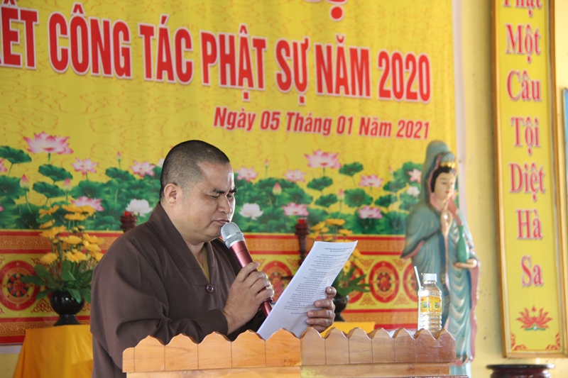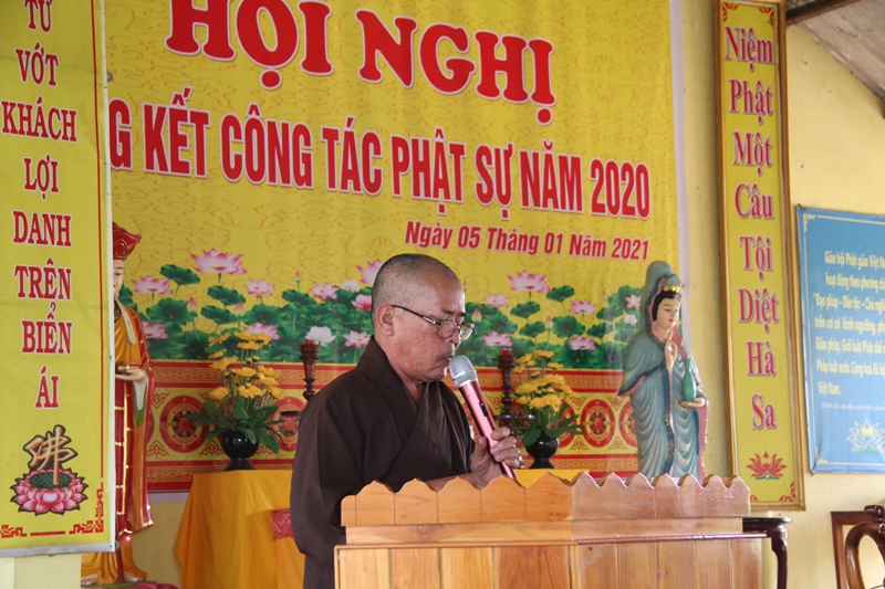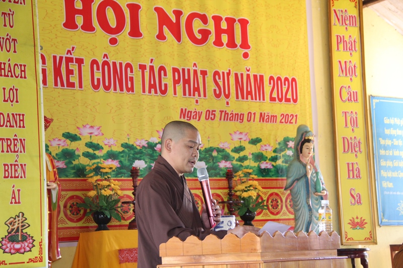 Thượng Toạ Thích Đồng Ngạn đã tổng kết hội nghị: năm 2020 có nhiều trở ngại khách quan, nhưng các cơ sở Phật giáo đã chấp hành tốt các chủ trương chính sách, đồng hành cùng xã hội vượt qua khó khăn, chung sức xây dựng nông thôn mới. Đảng và Nhà nước đã đánh giá cao những đóng góp của Phật giáo huyện nhà. Trong thời gian tới, các đơn vị tiếp tục tổ chức tu học, giáo dục đạo đức Phật tử, giúp đỡ đồng bào nghèo trong dịp Tết Nguyên Đán. Dự kiến Đại hội Phật giáo huyện sẽ được tổ chức sau khi kết thúc cuộc bầu cử Hội đồng Nhân dân các cấp.